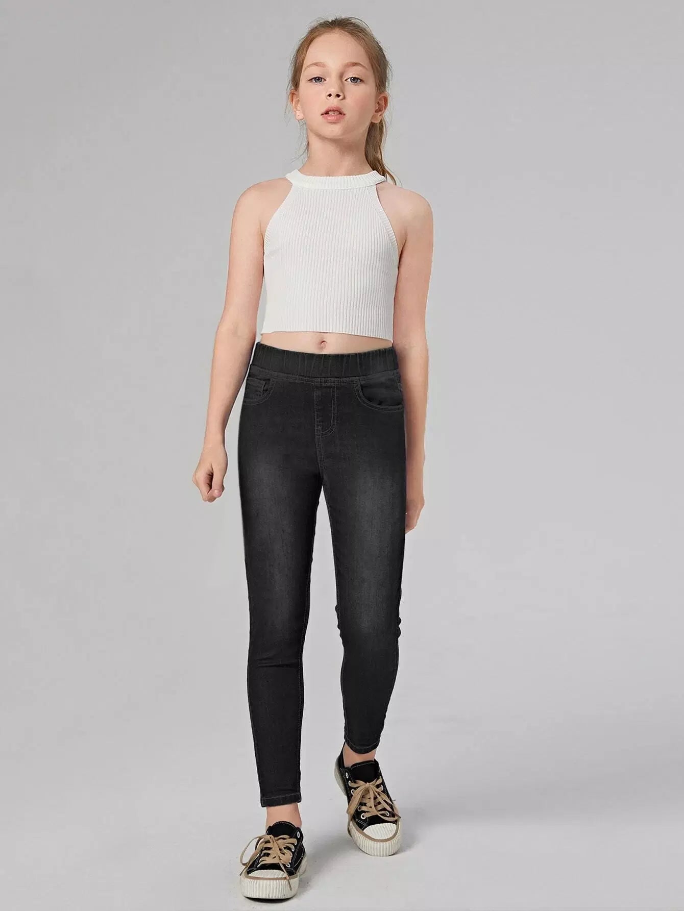 Girls Elastic Waist Skinny Jeans