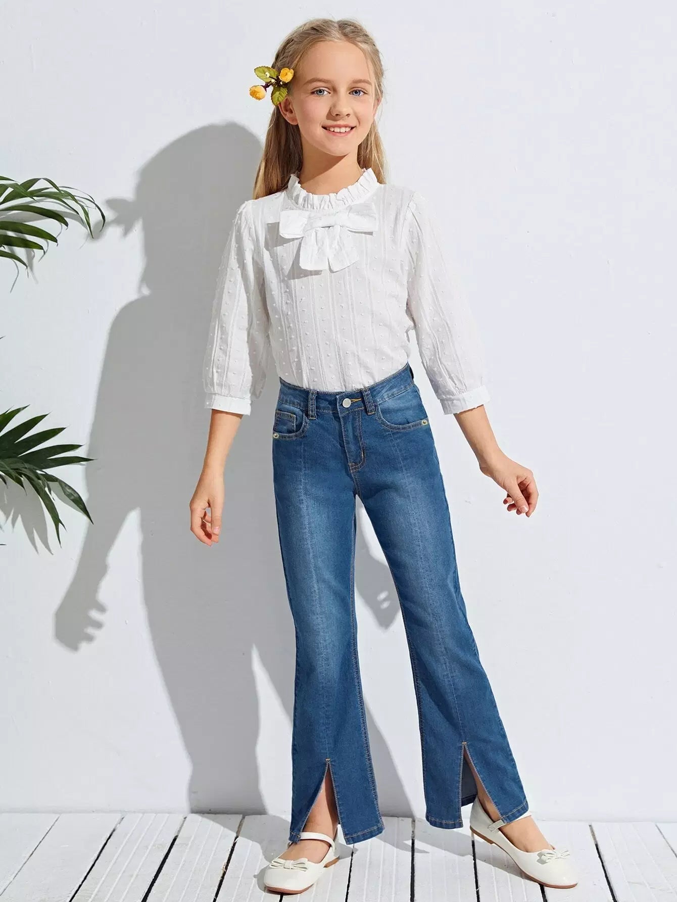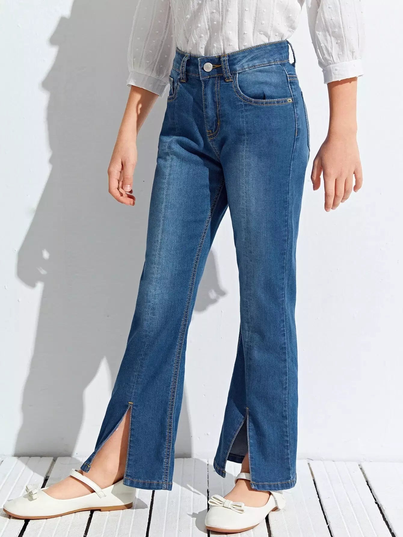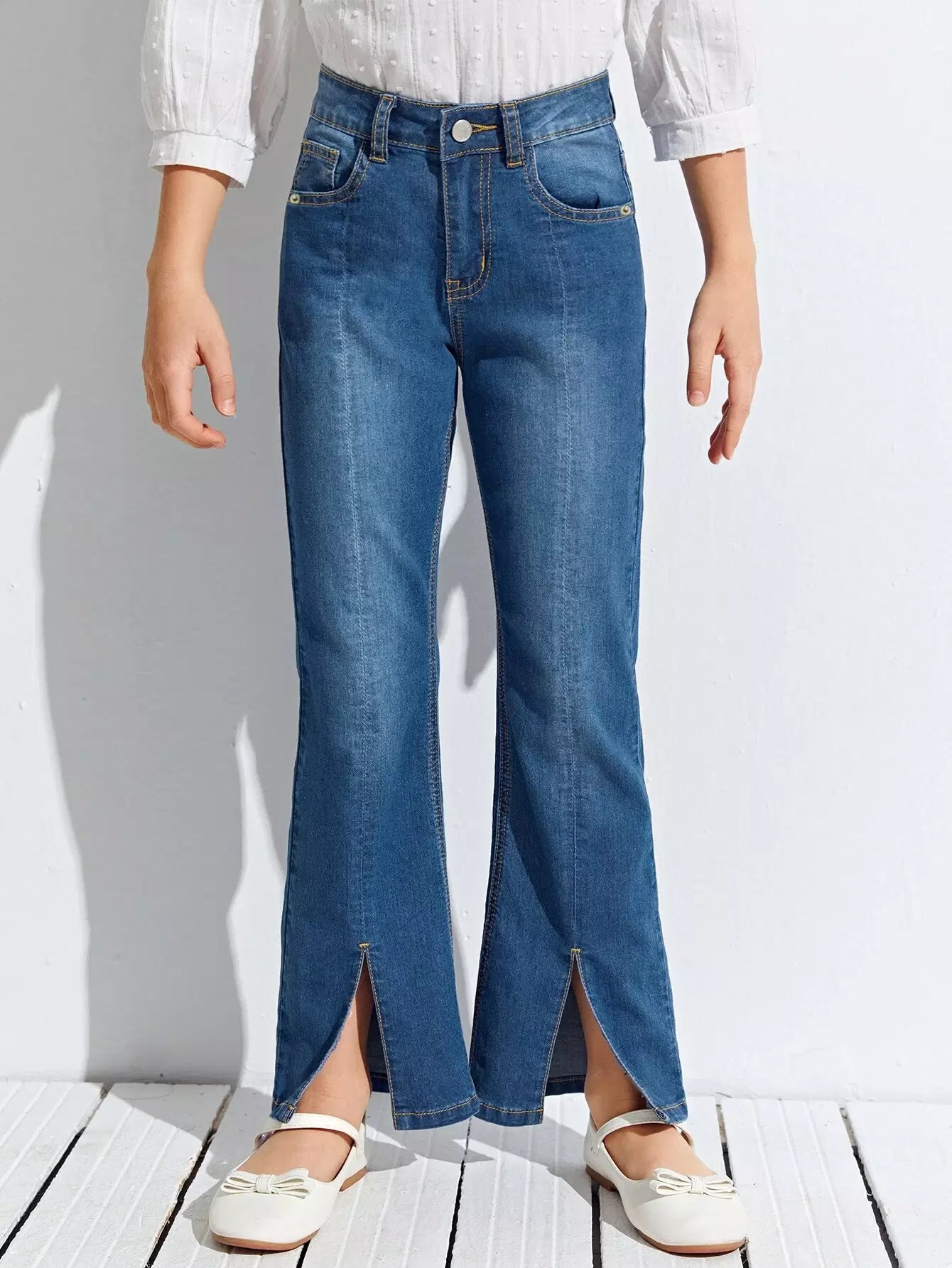 Girls High Waist Split Hem Jeans