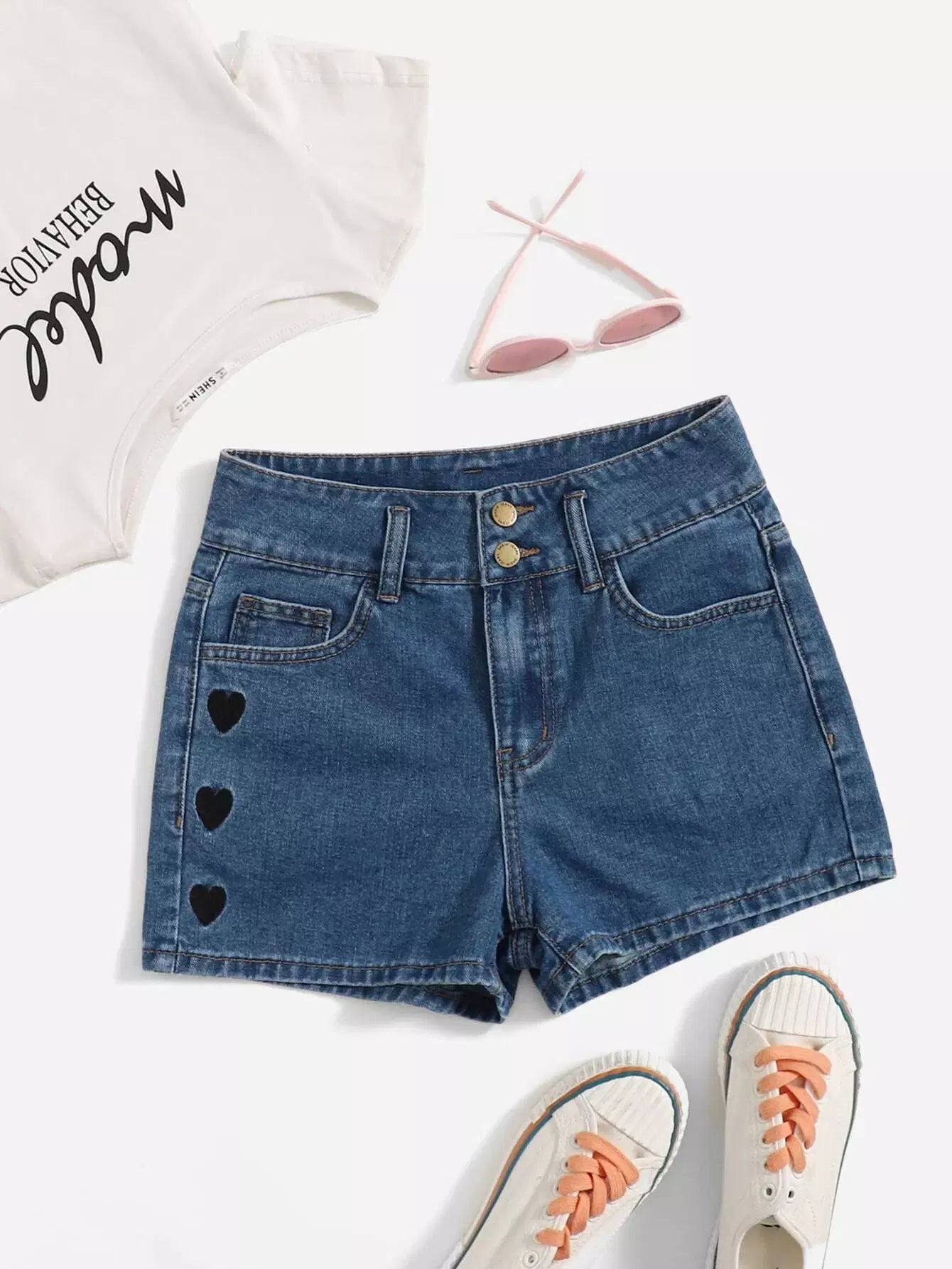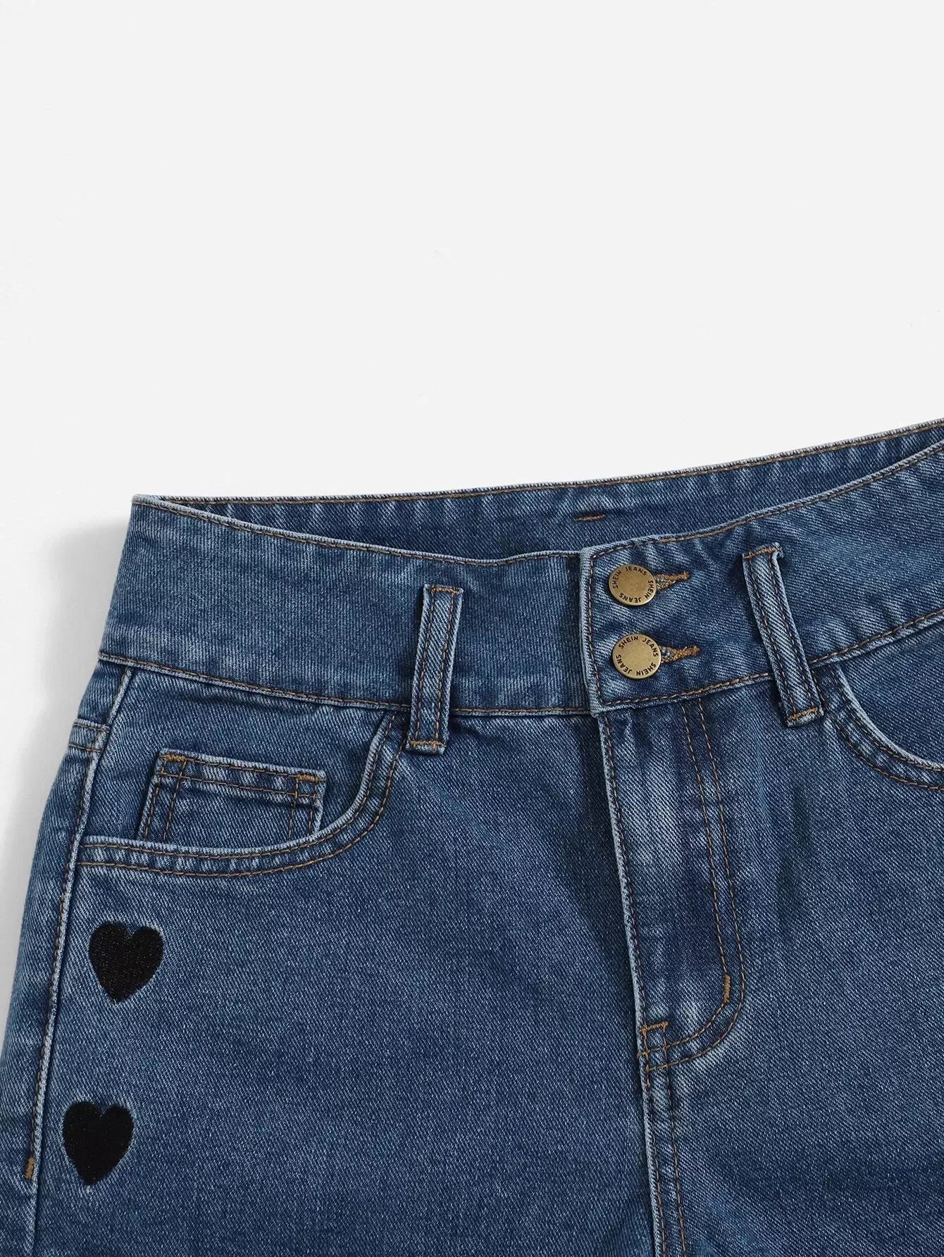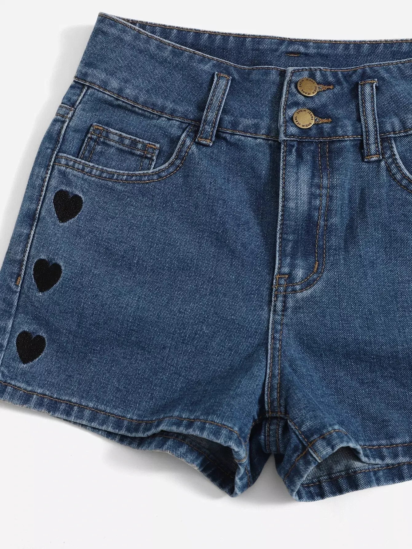 Teen Girls Heart Embroidered Denim Shorts
