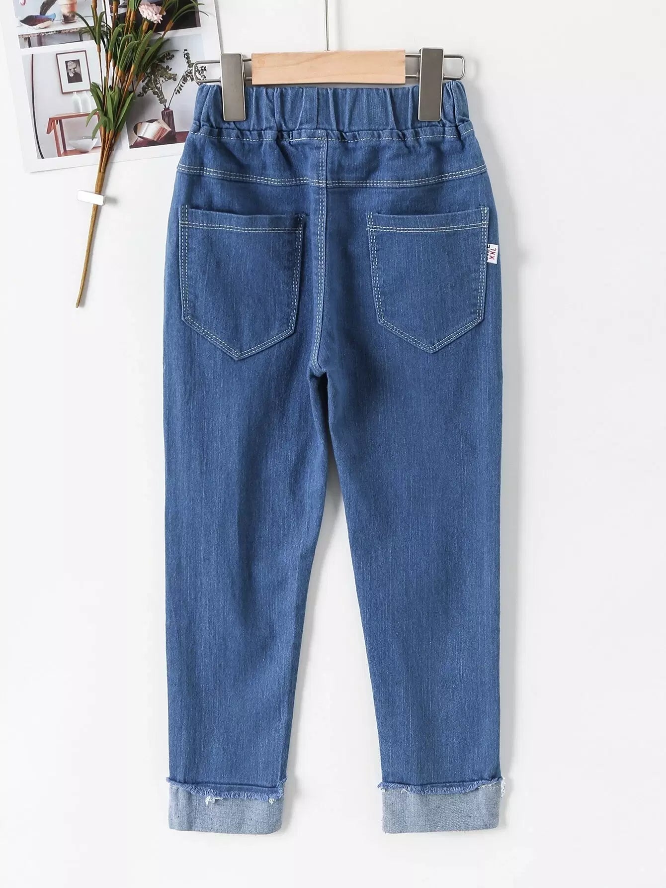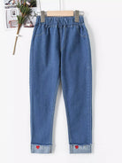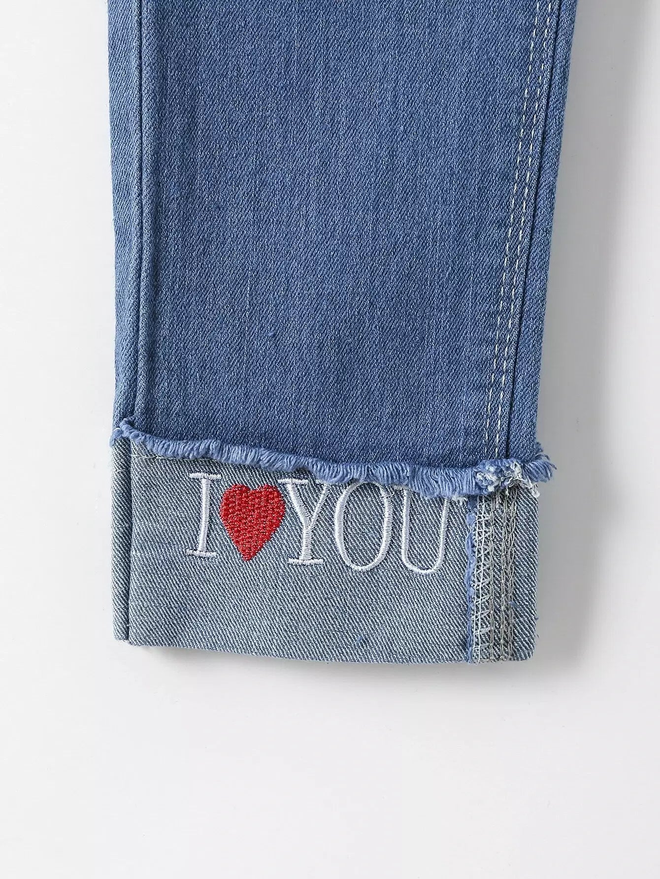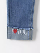 Girls Heart And Letter Embroidered Roll Up Hem Jeans