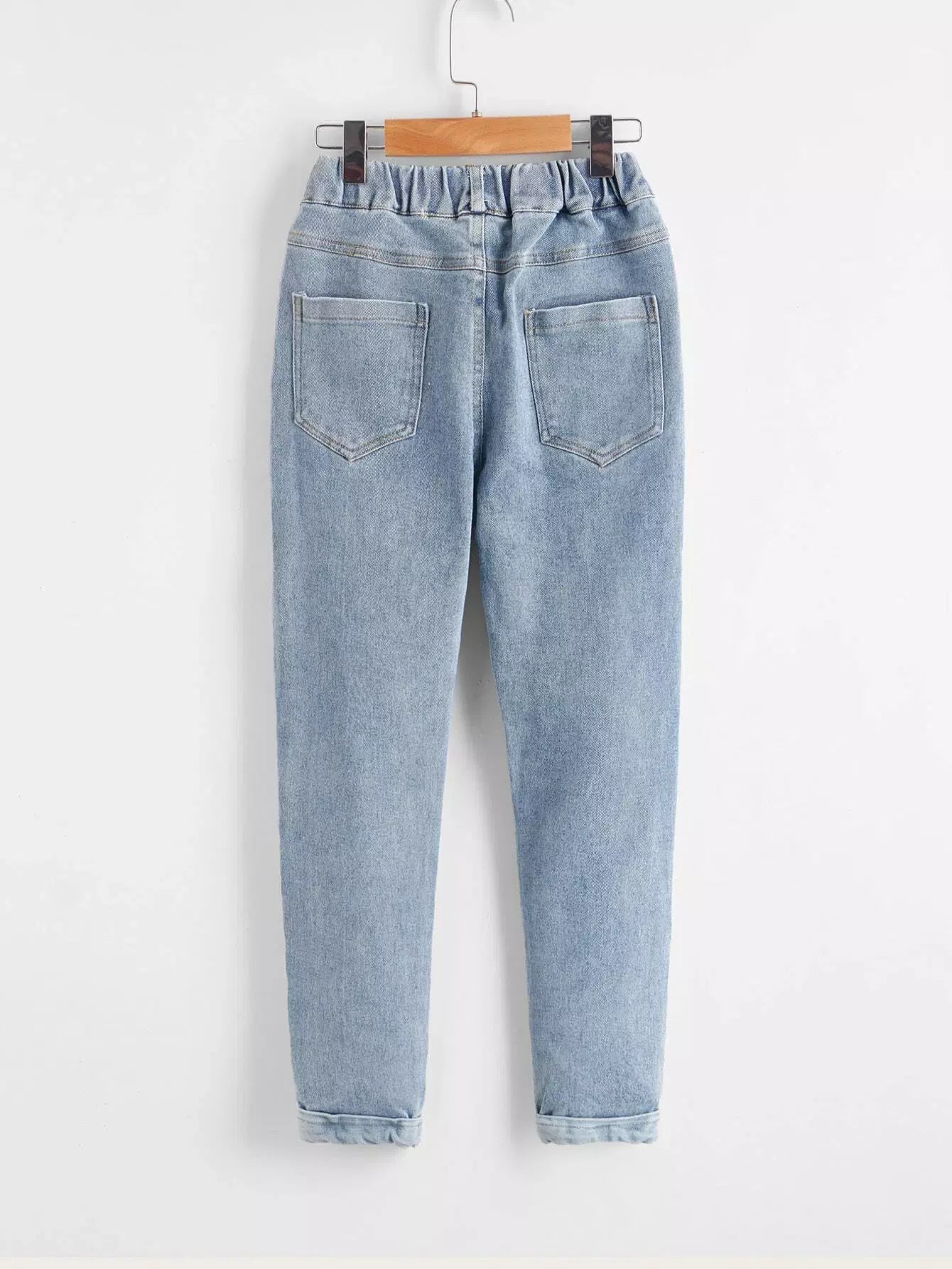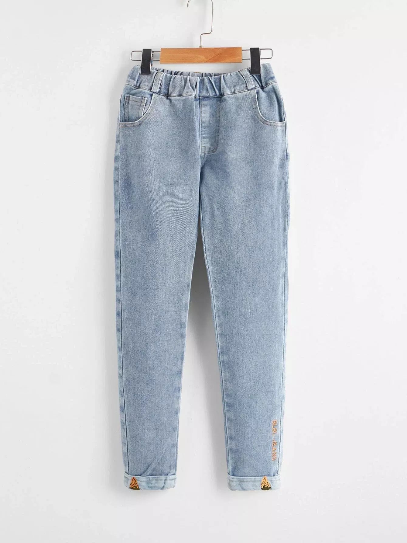 Girls Letter Embroidered Tapered Jeans