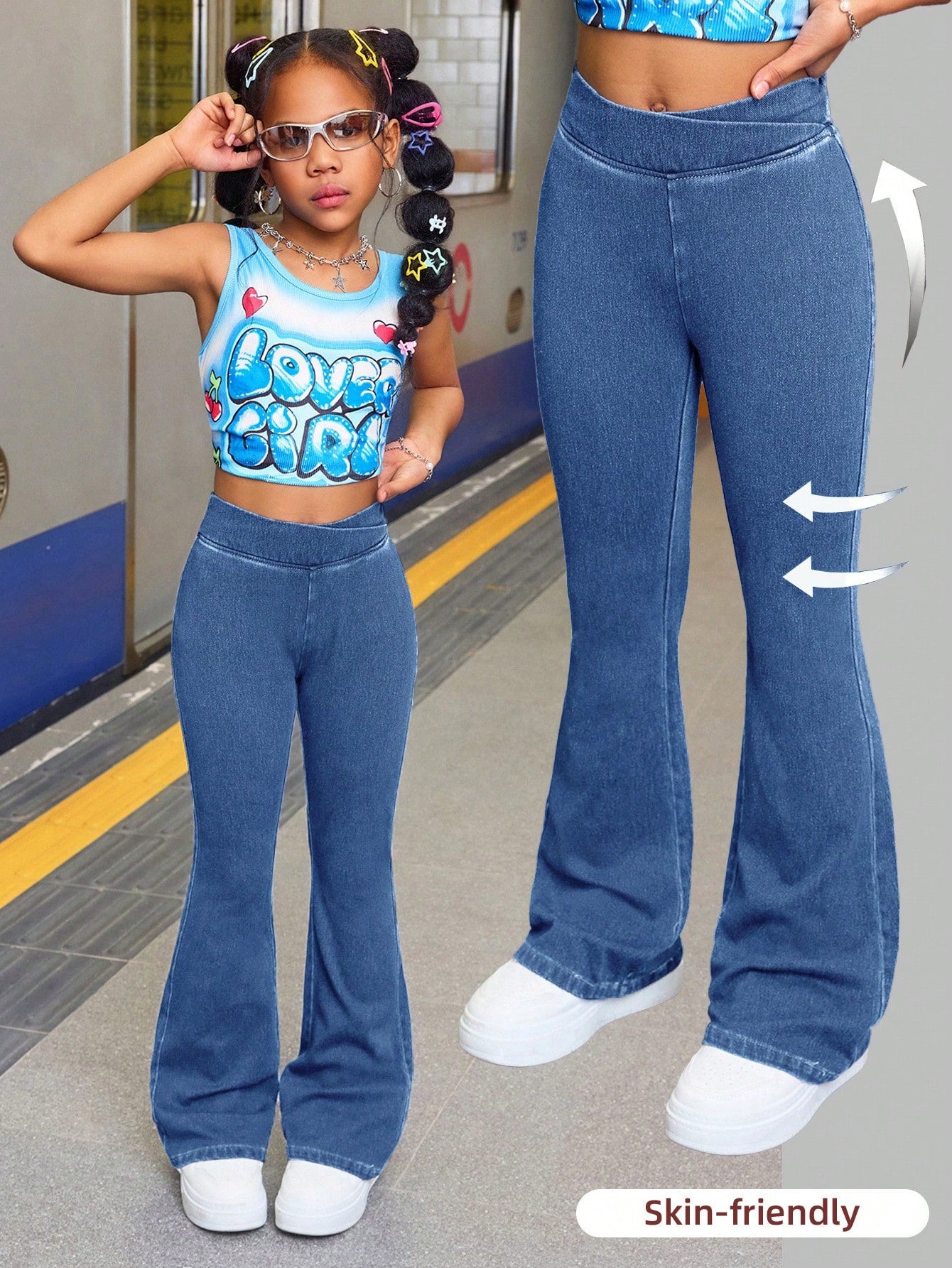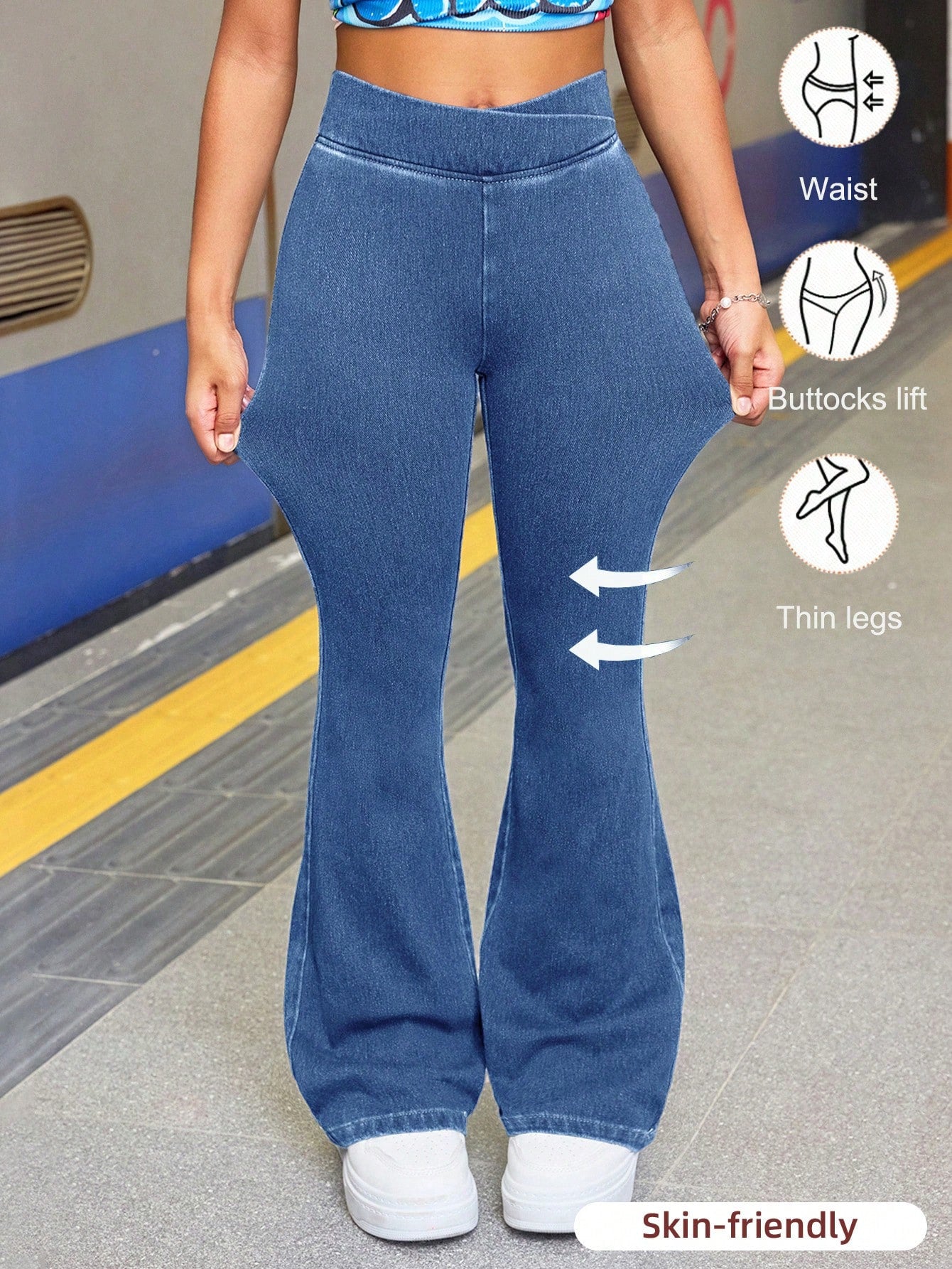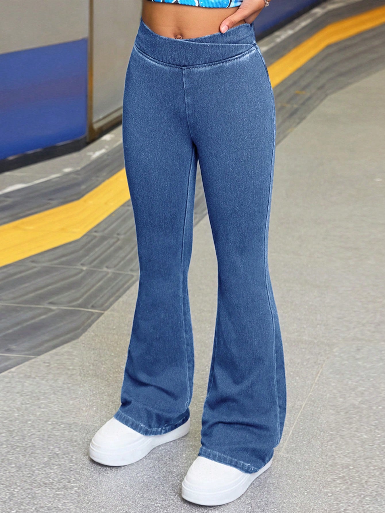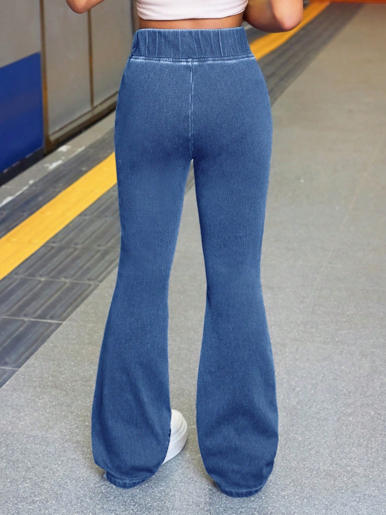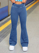 Tween Girl Fashion Casual Blue Denim Daily Exercise Basics Stretch Slim Flared Jeans For Girls