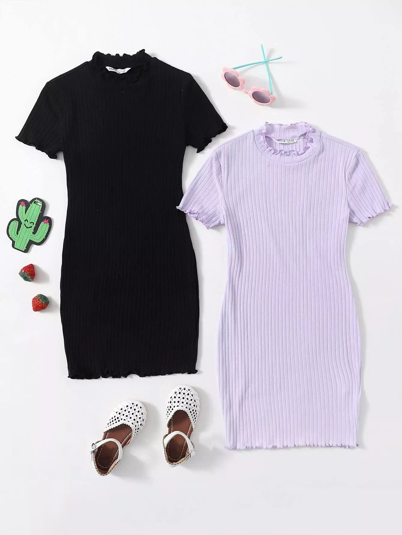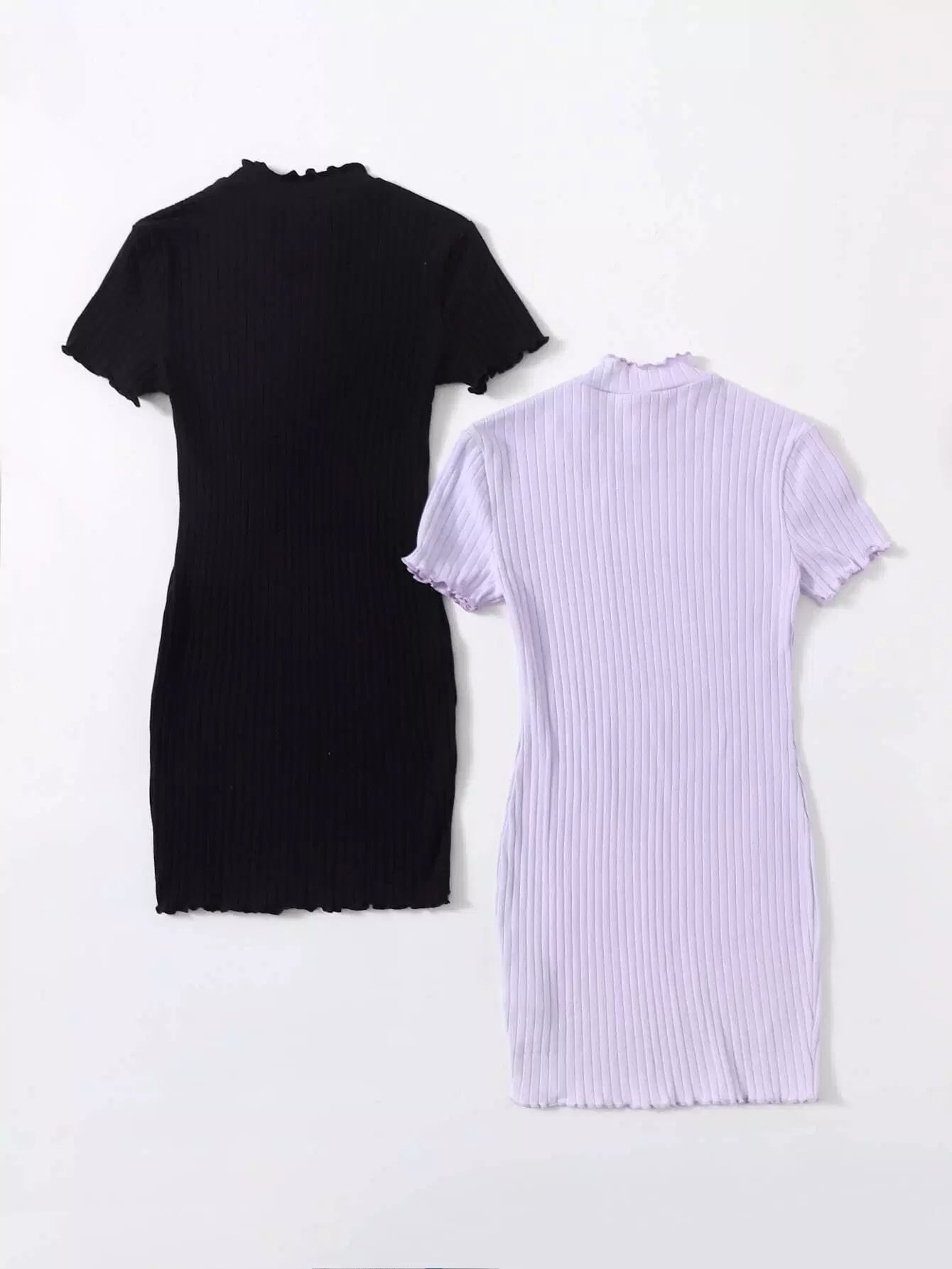 Girls 2 Pack Lettuce Trim Rib-knit Dress
