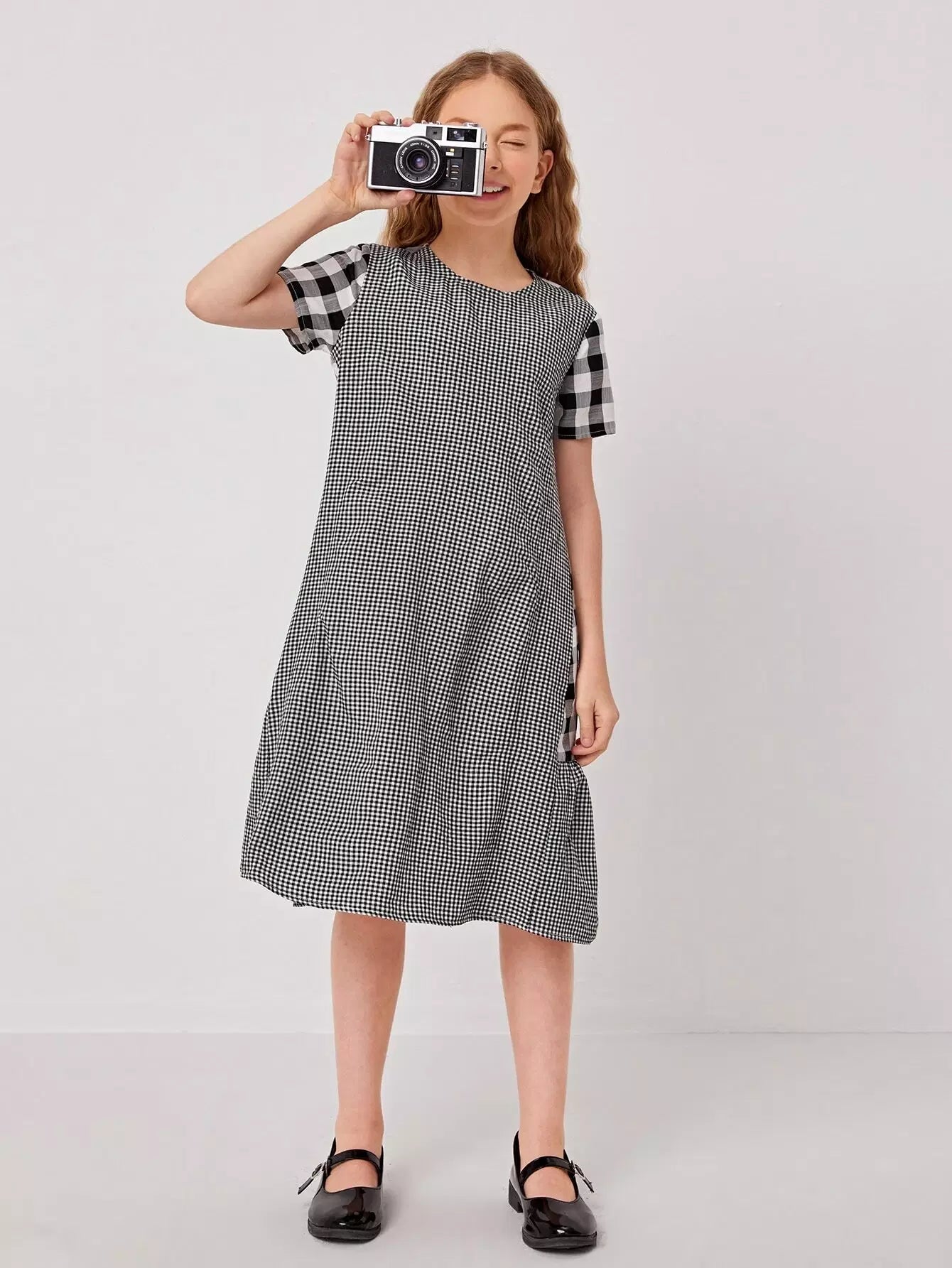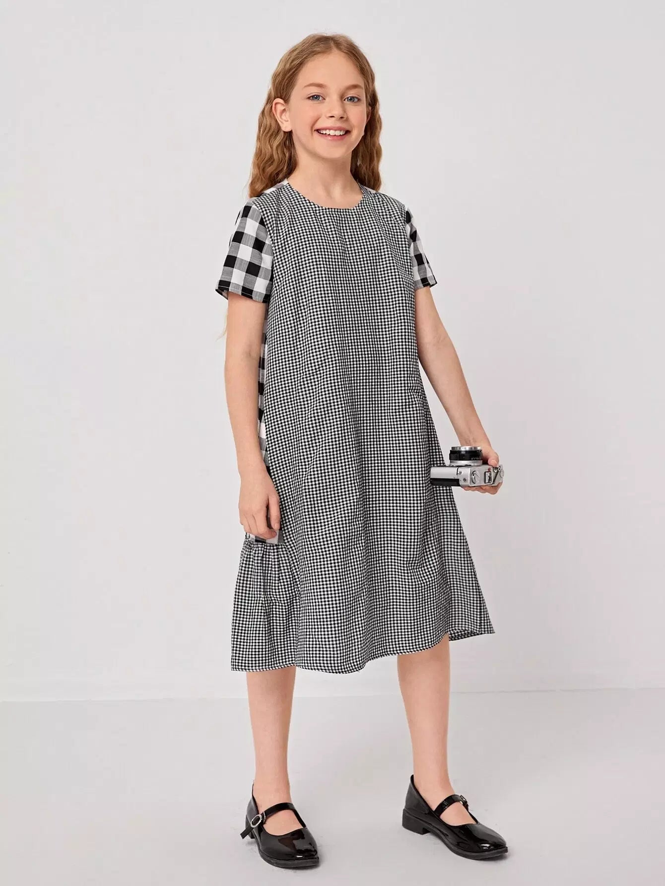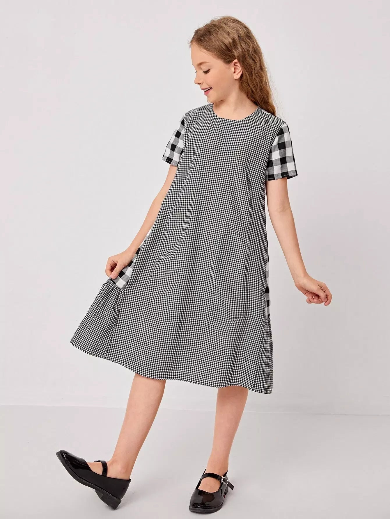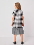 Girls Buffalo Plaid Panel Ruffle Hem Gingham Dress