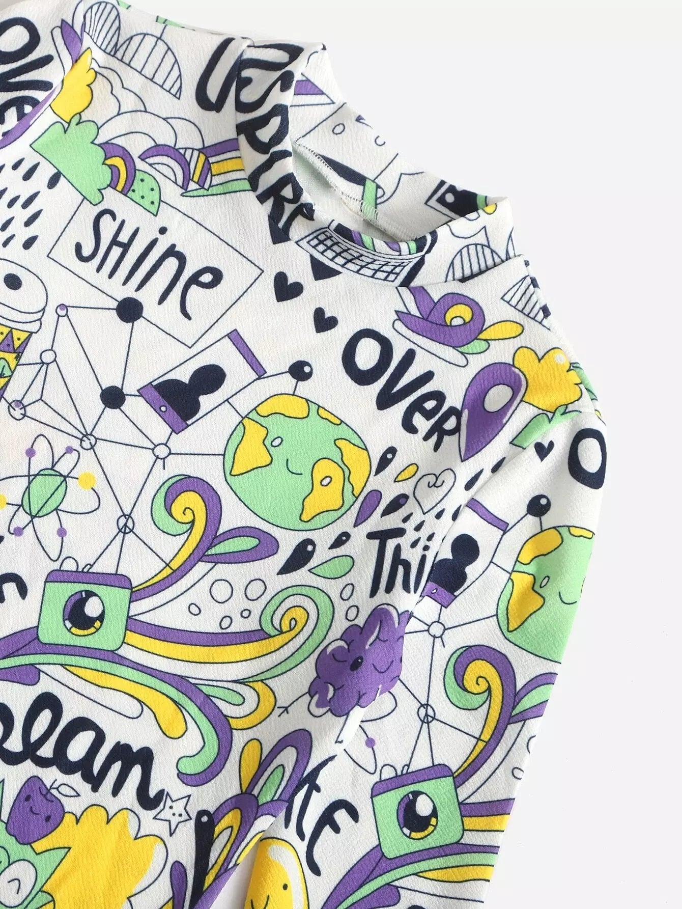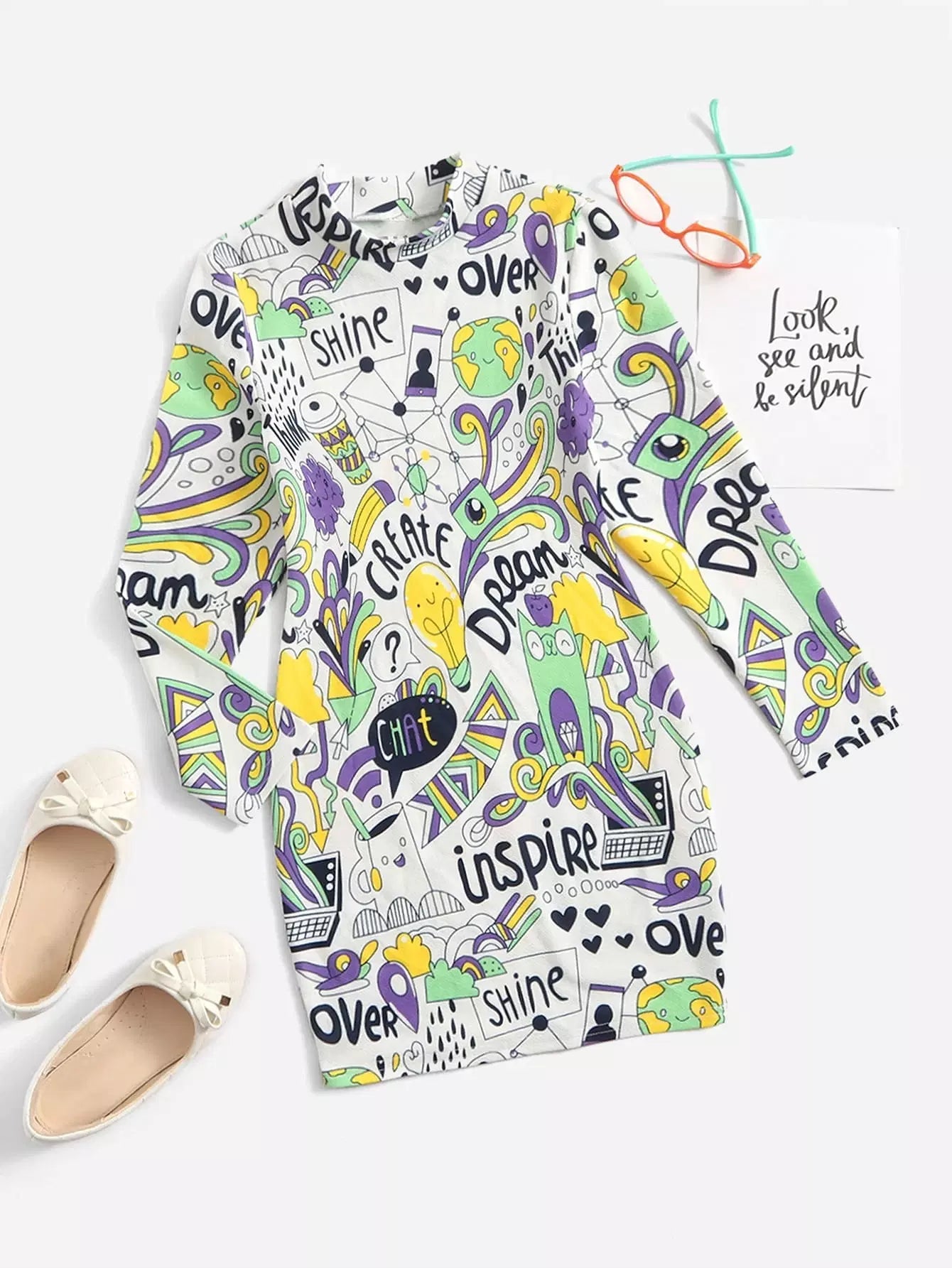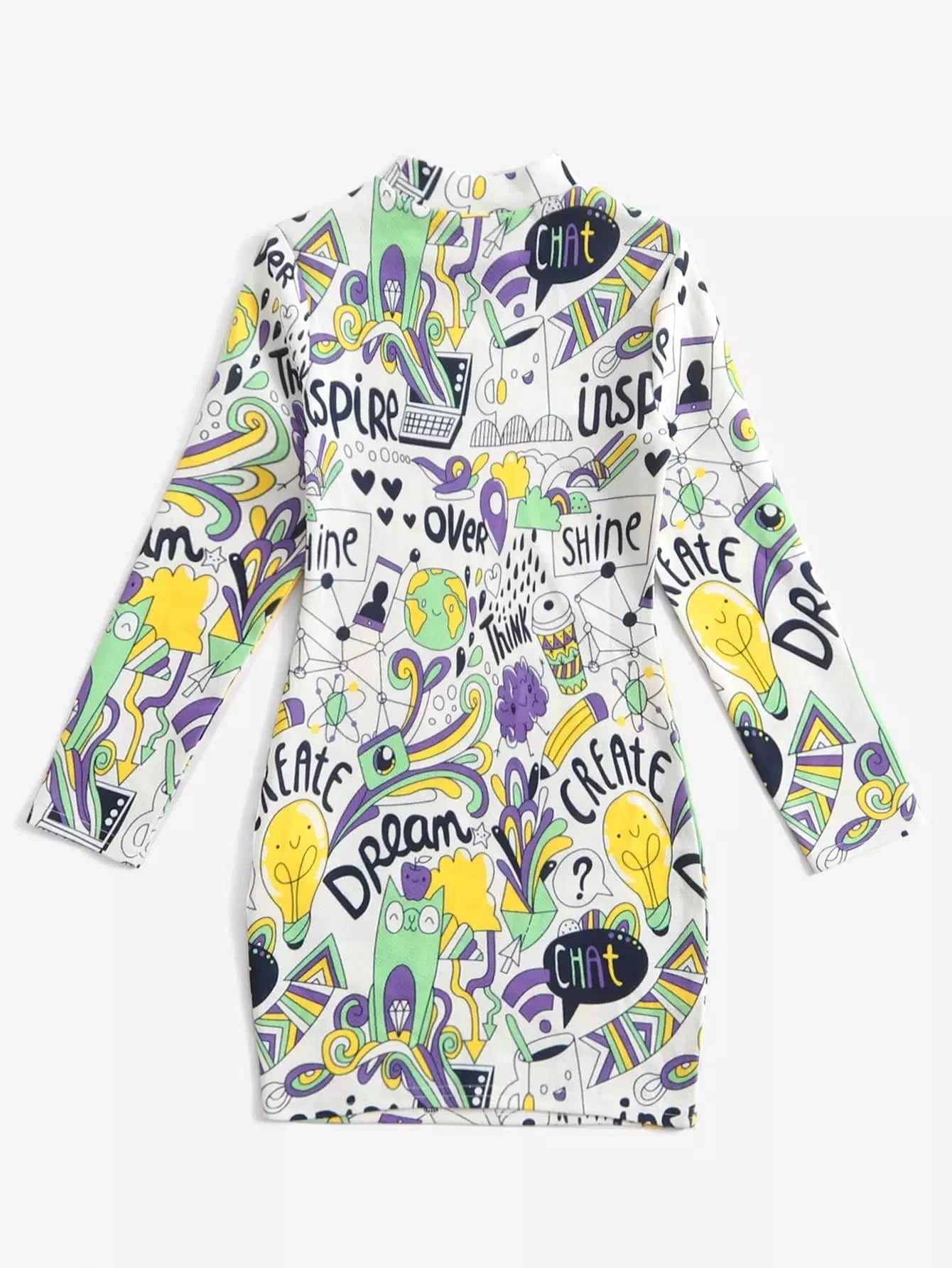 Girls Comics Print Mock Neck Dress