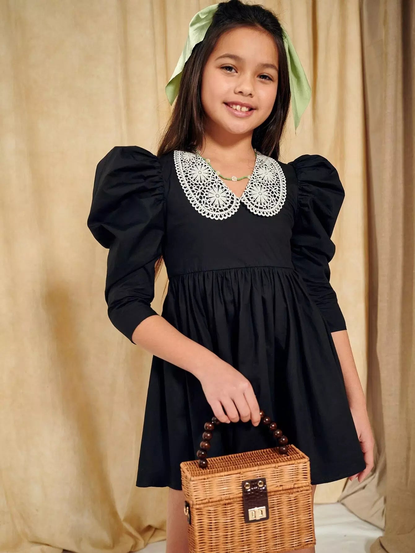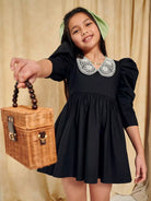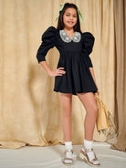 Girls Contrast Guipure Lace Collar Gigot Sleeve Dress