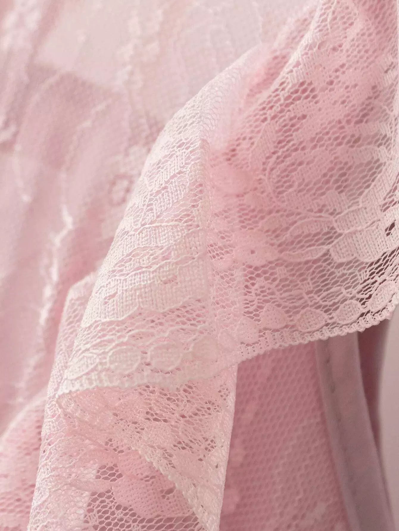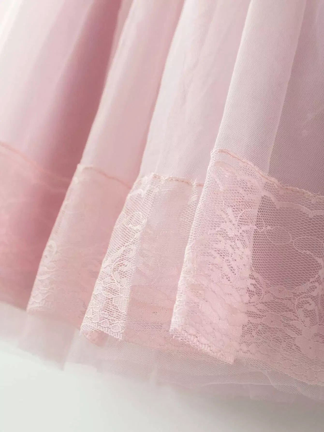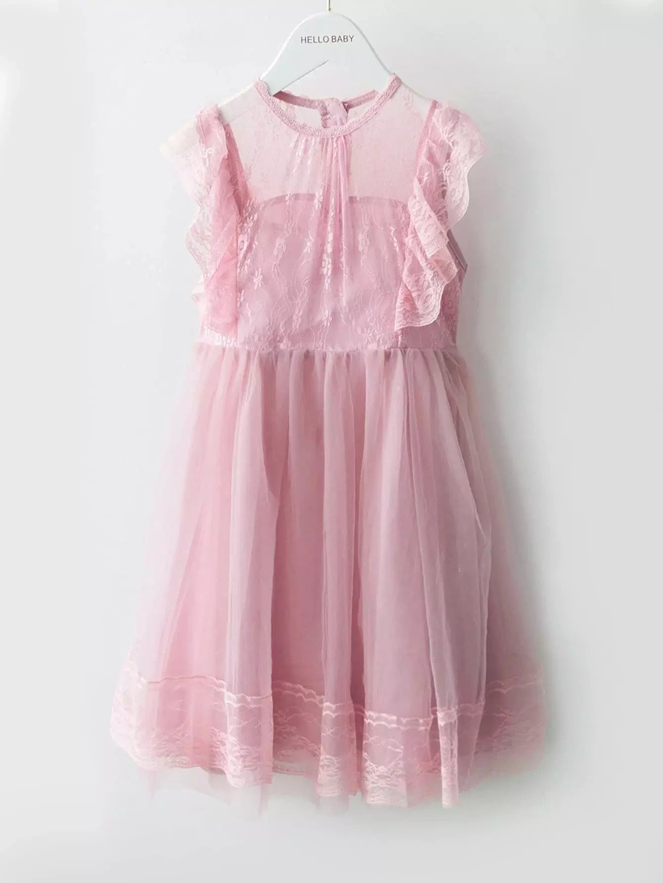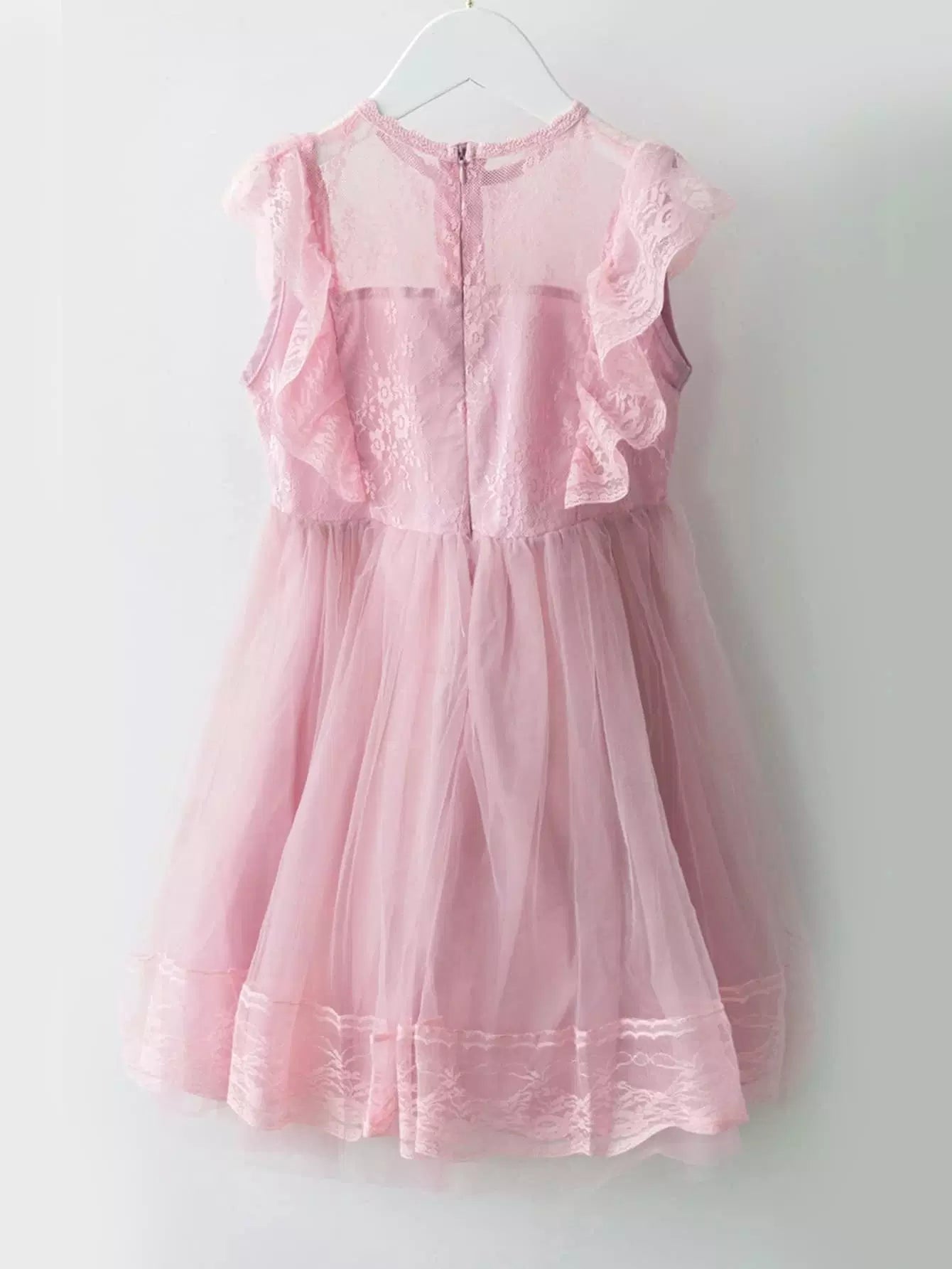 Girls Contrast Lace Ruffle Trim Zipper Back Smock Dress