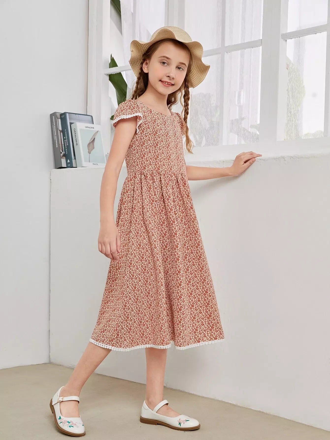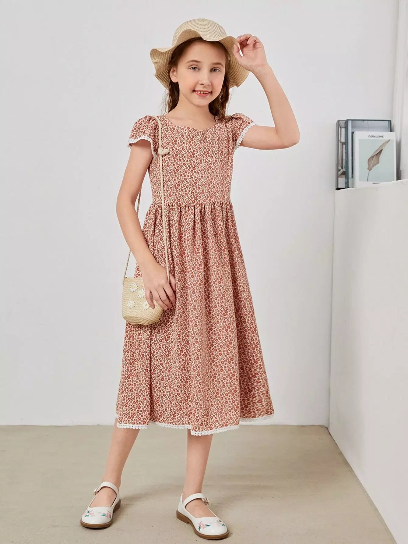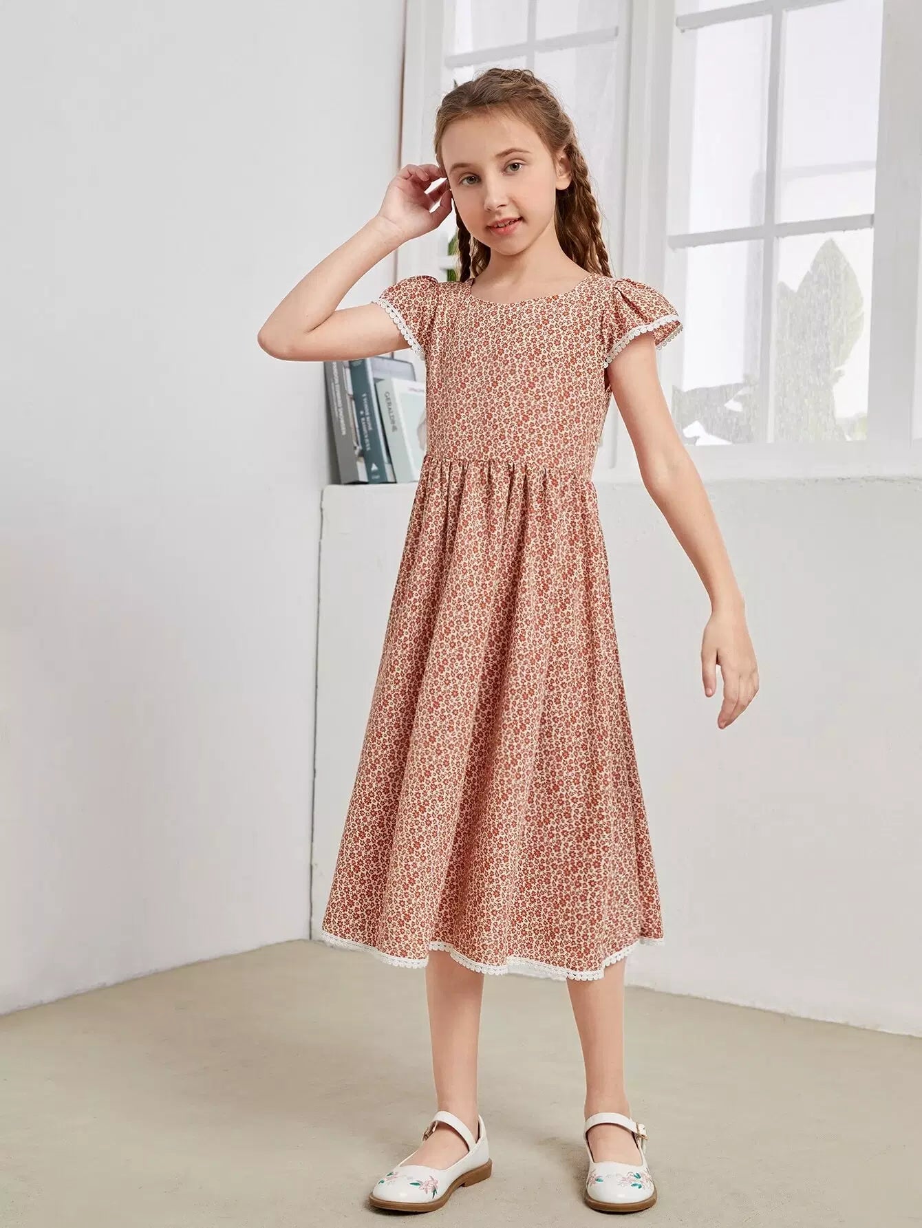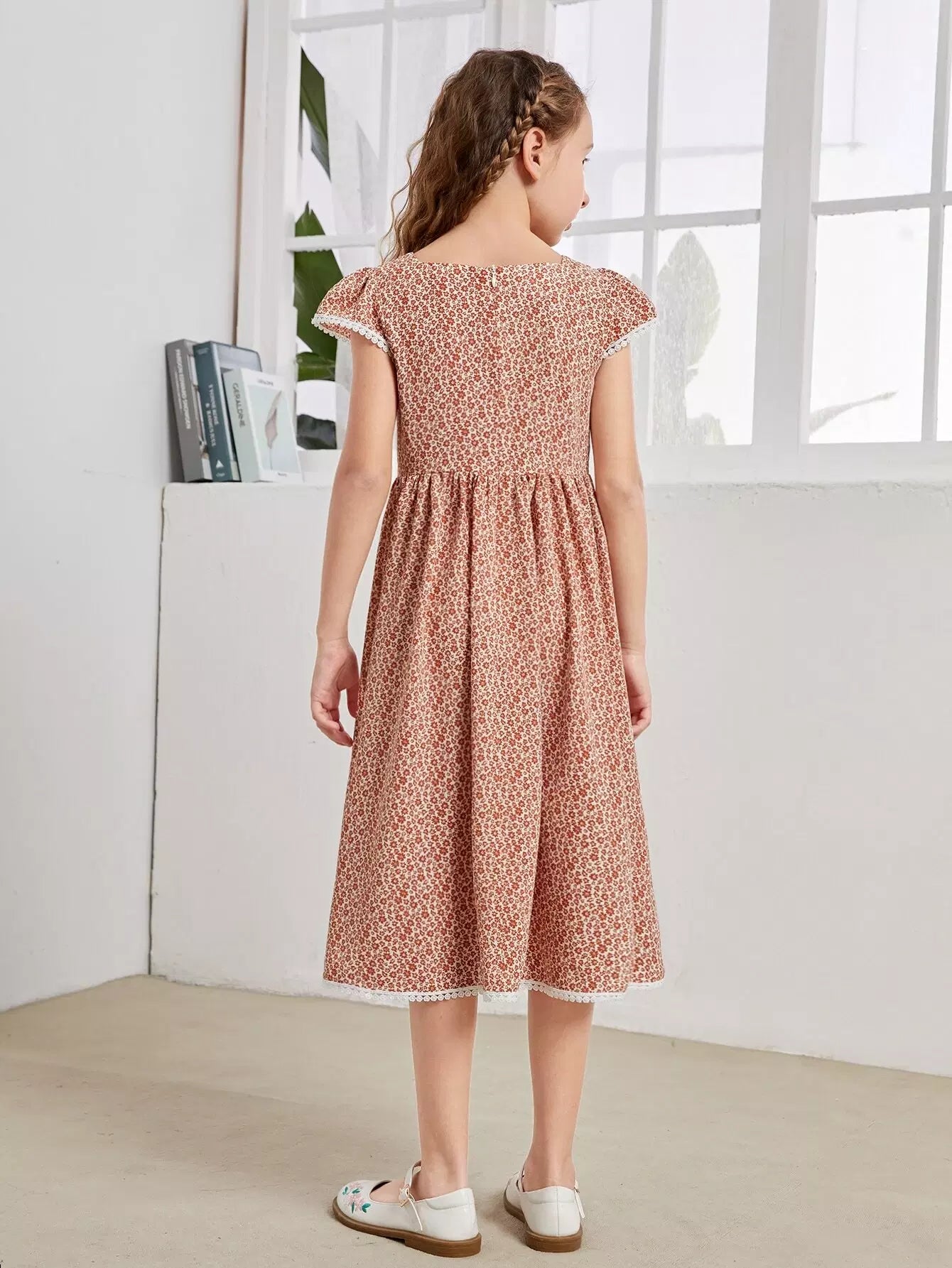 Girls Ditsy Floral Cap Sleeve Zip Back Dress