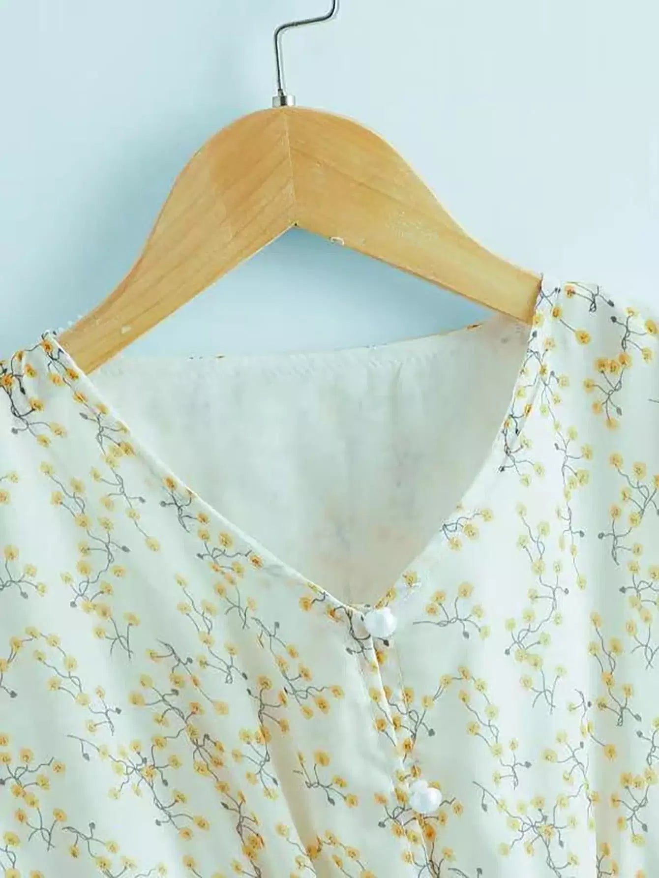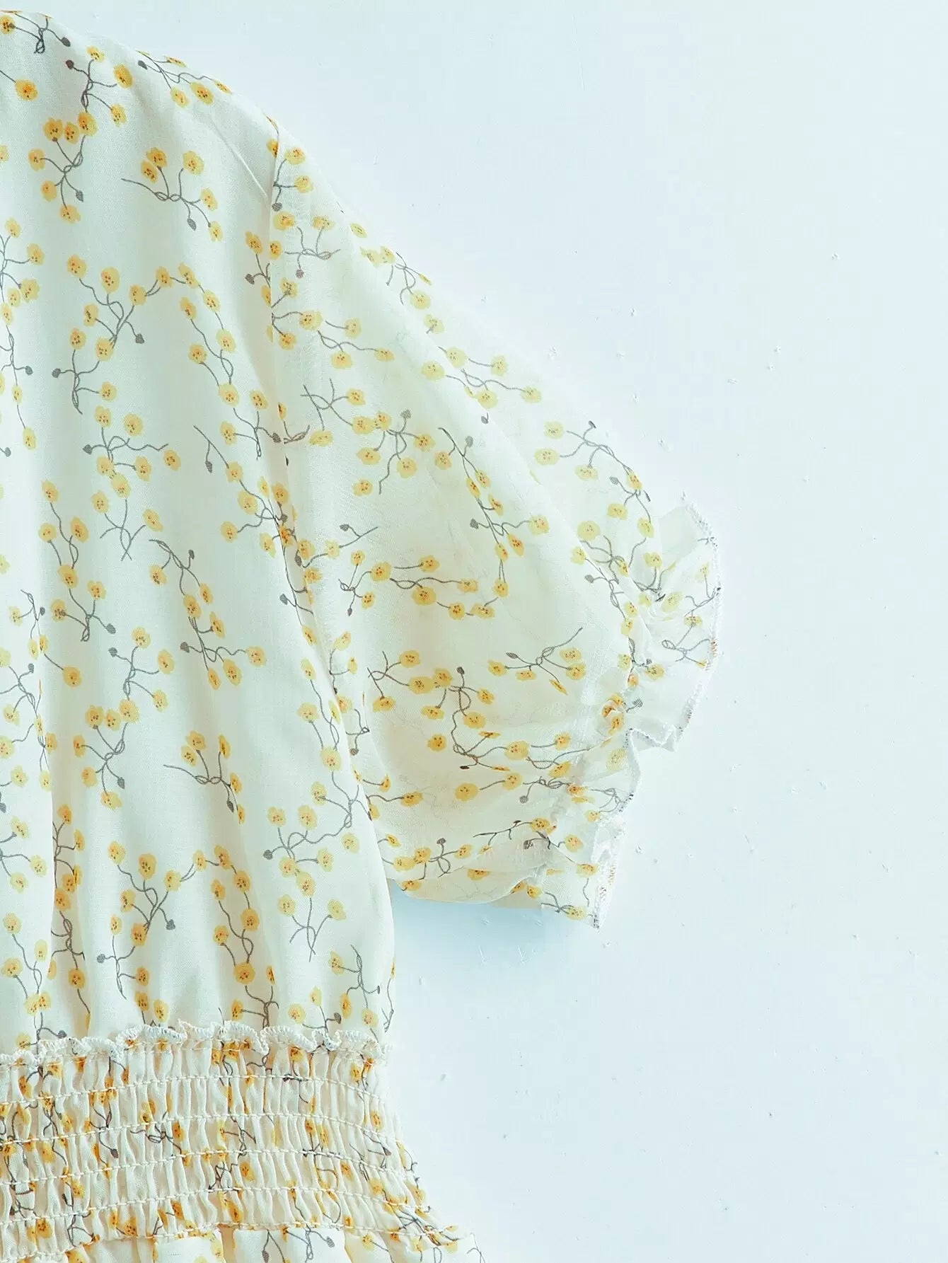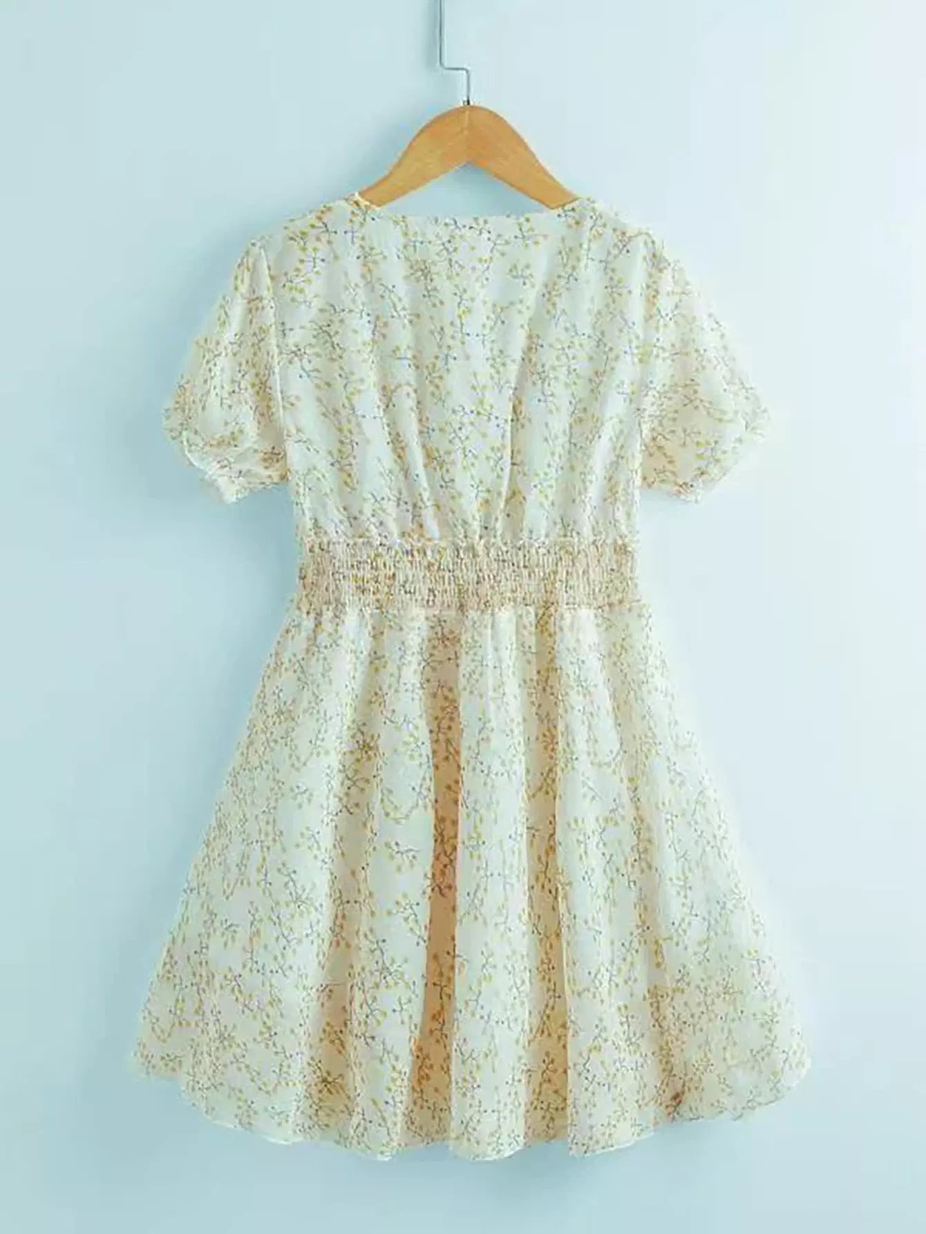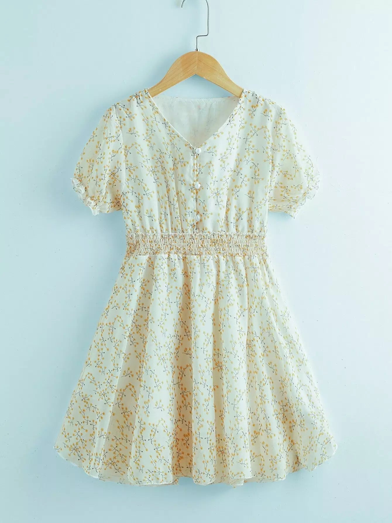Girls Ditsy Floral Print V-neck Shirred Waist Dress