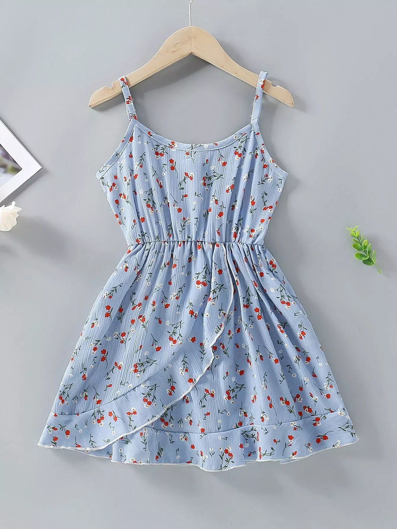 Girls Ditsy Floral Ruffle Trim Cami Dress