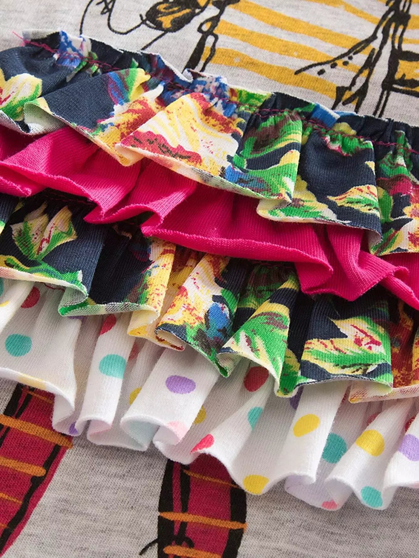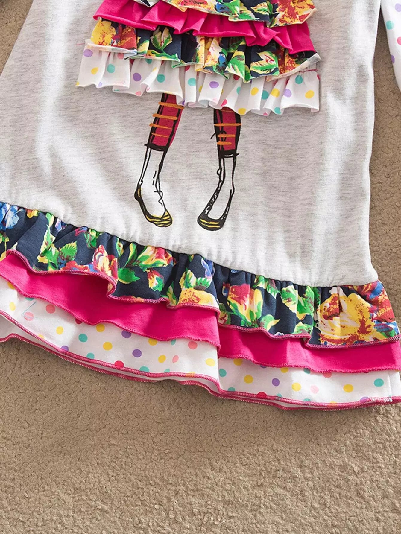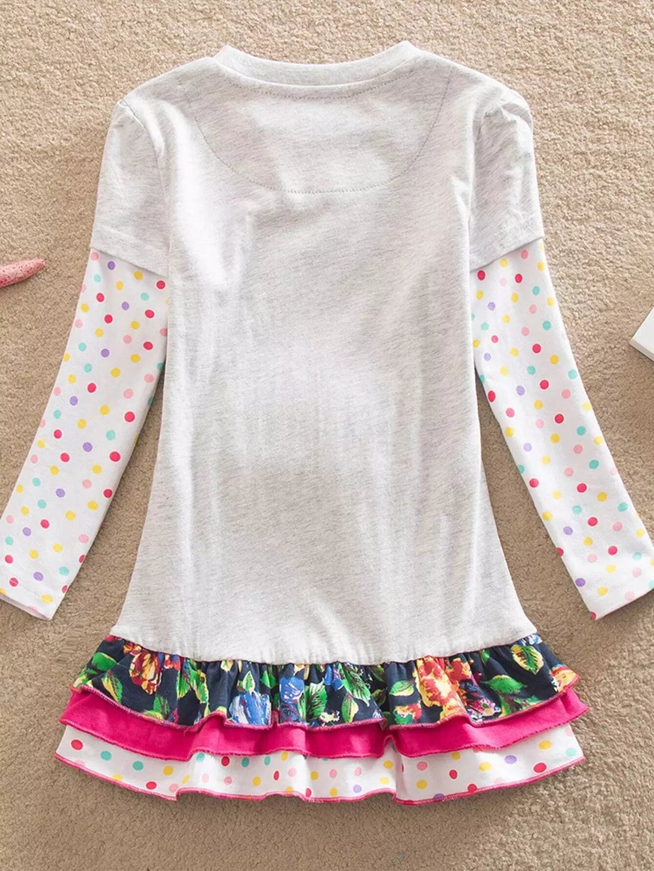 Girls Figure & Polka Dot Print Layered Hem 2 In 1 Dress