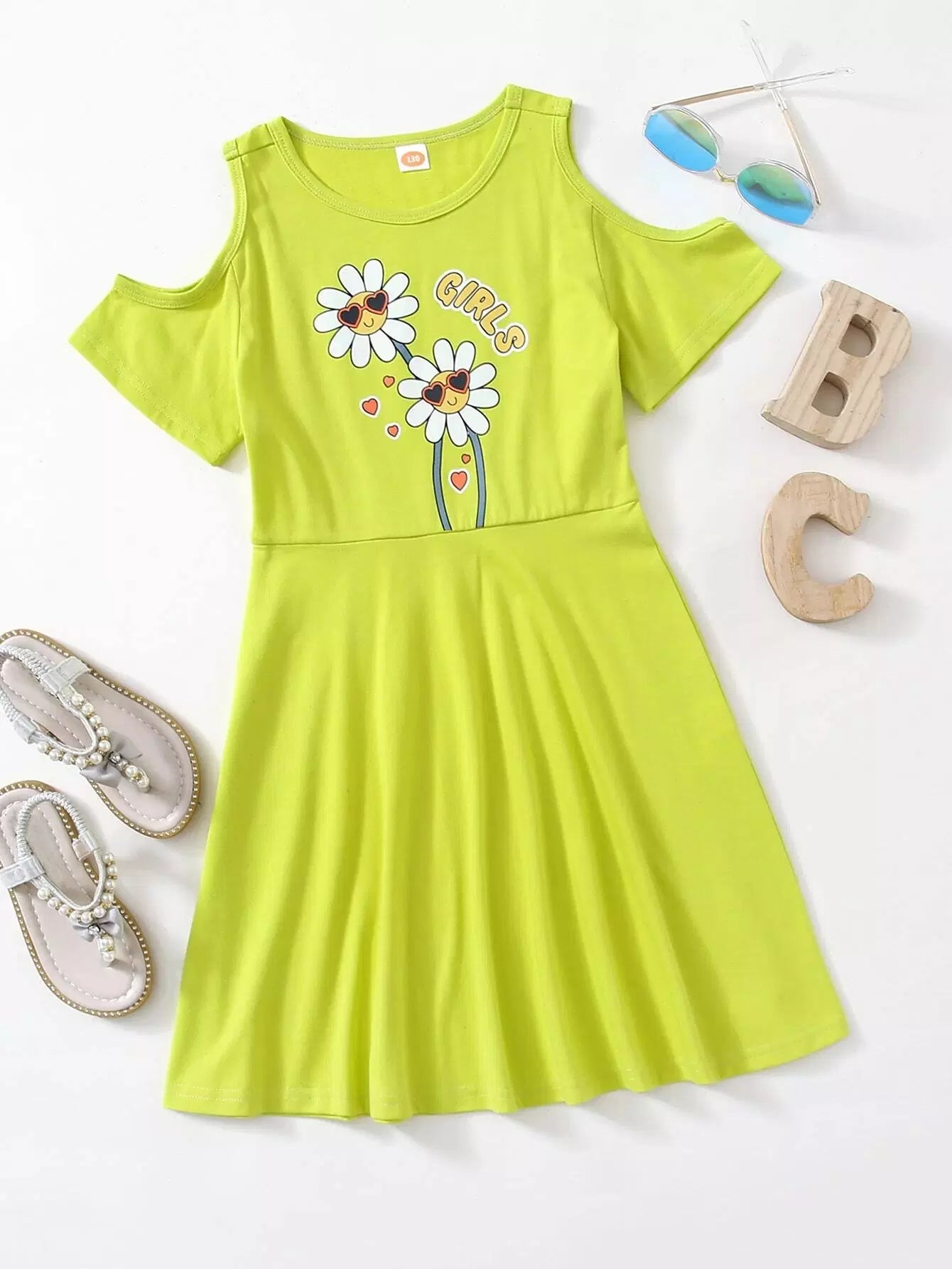 Girls Floral Print Cold Shoulder Dress