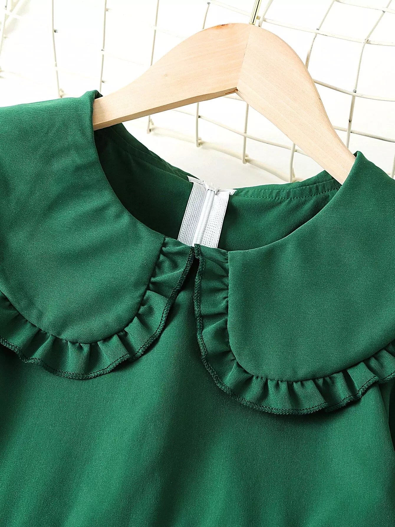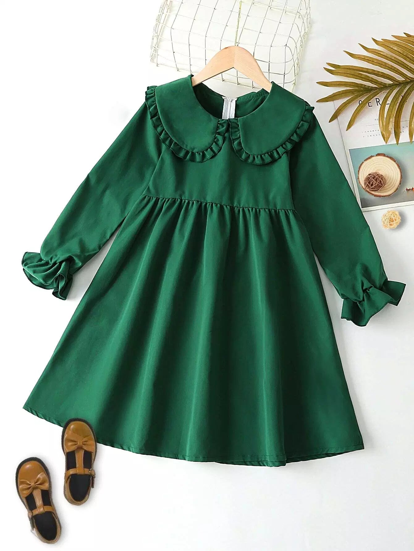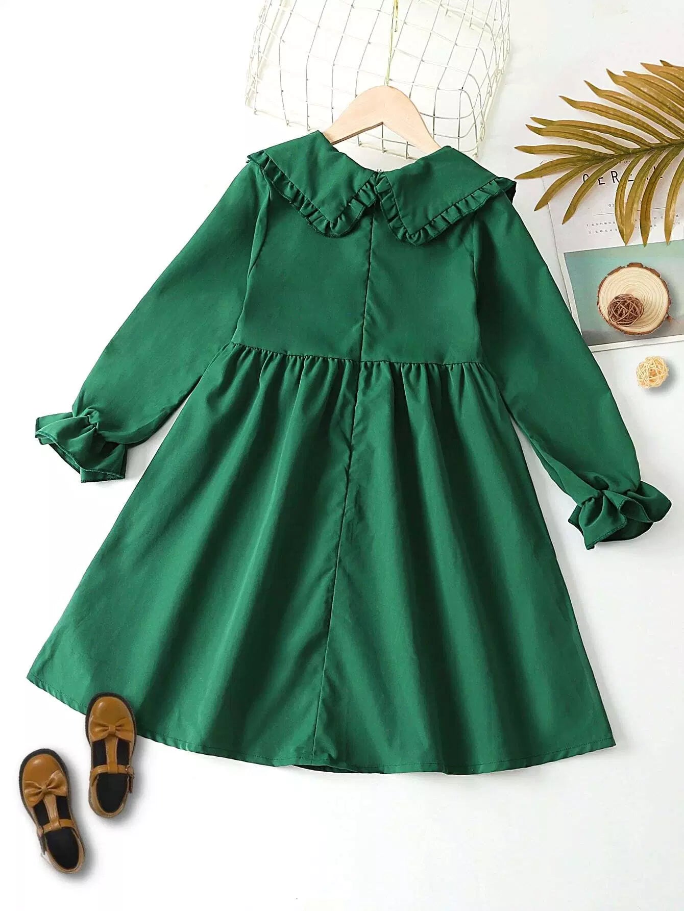 Girls Frill Trim Peter Pan Collar Flounce Sleeve Dress