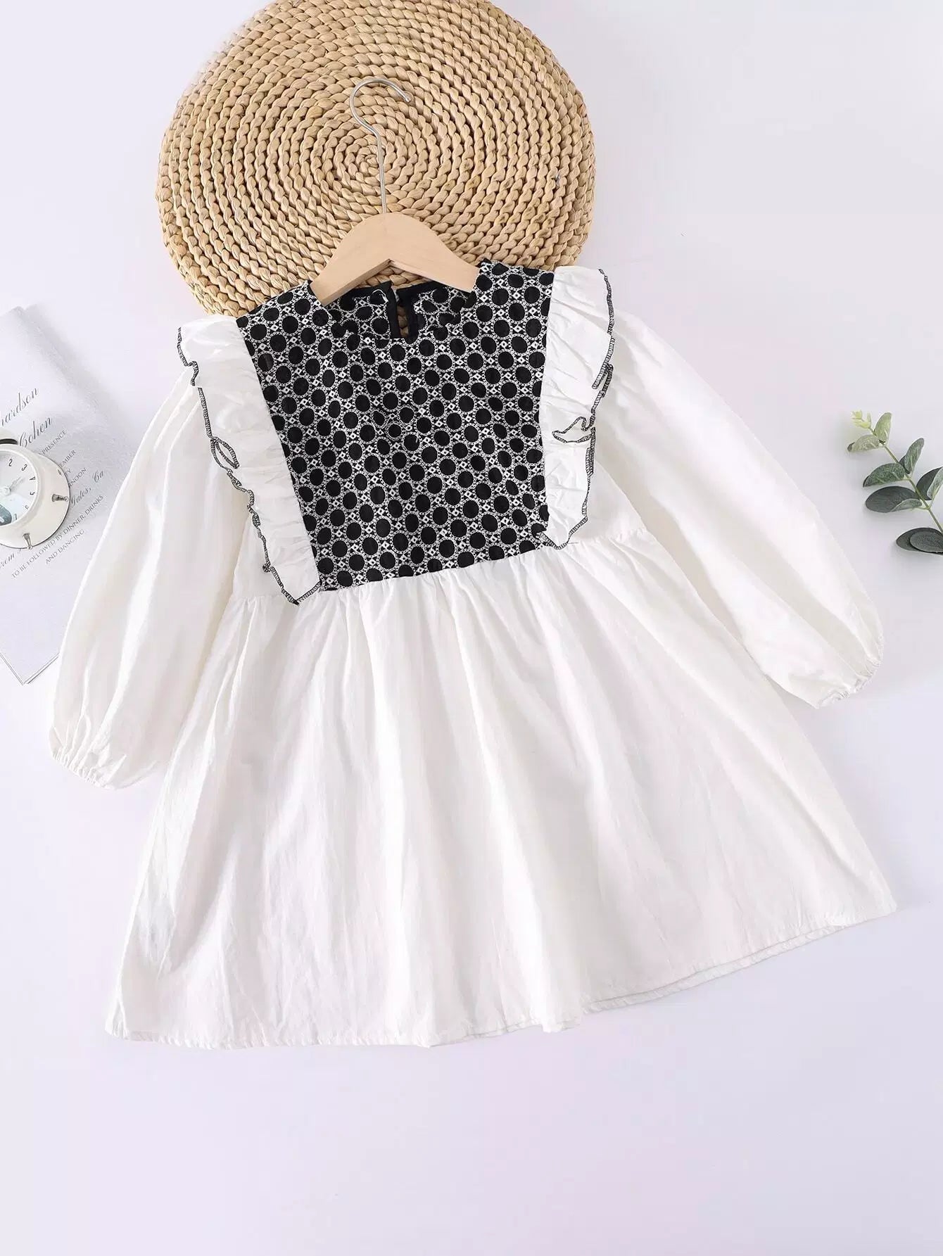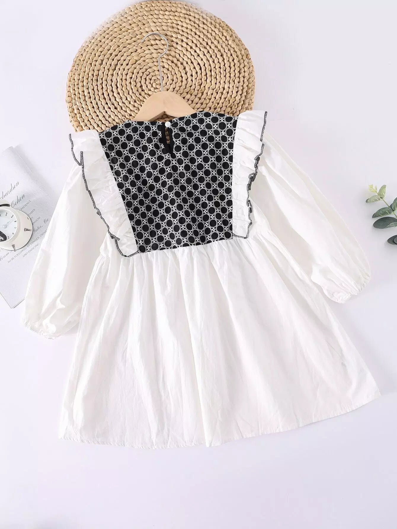 Girls Geo Print Ruffle Trim Keyhole Back Dress