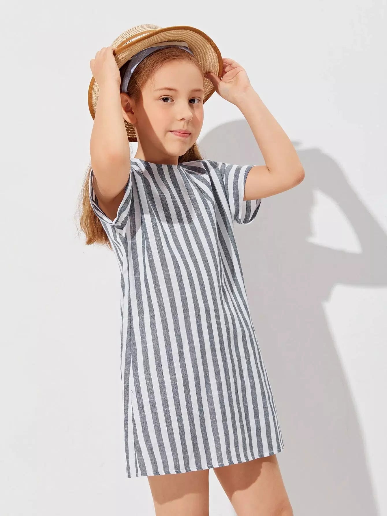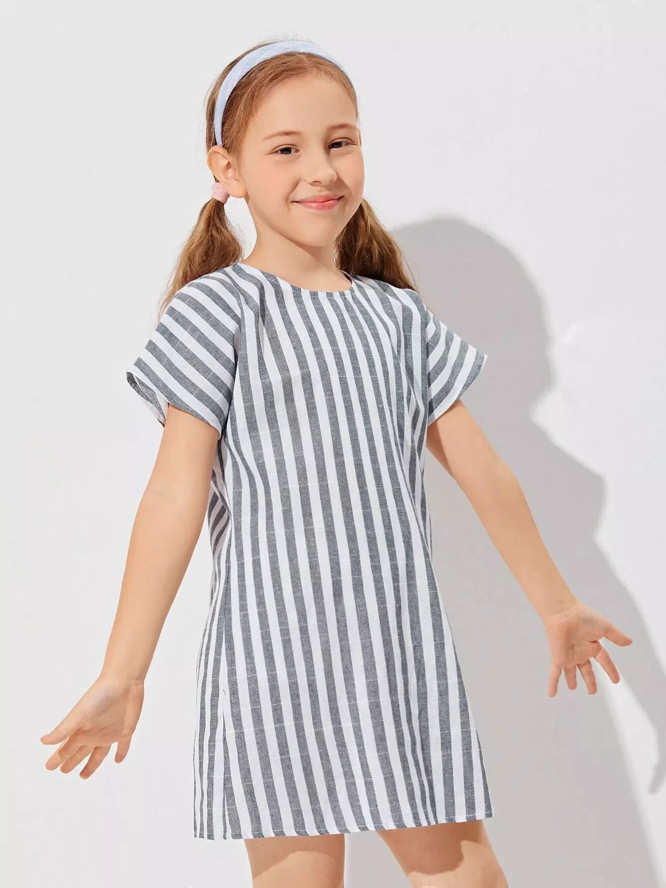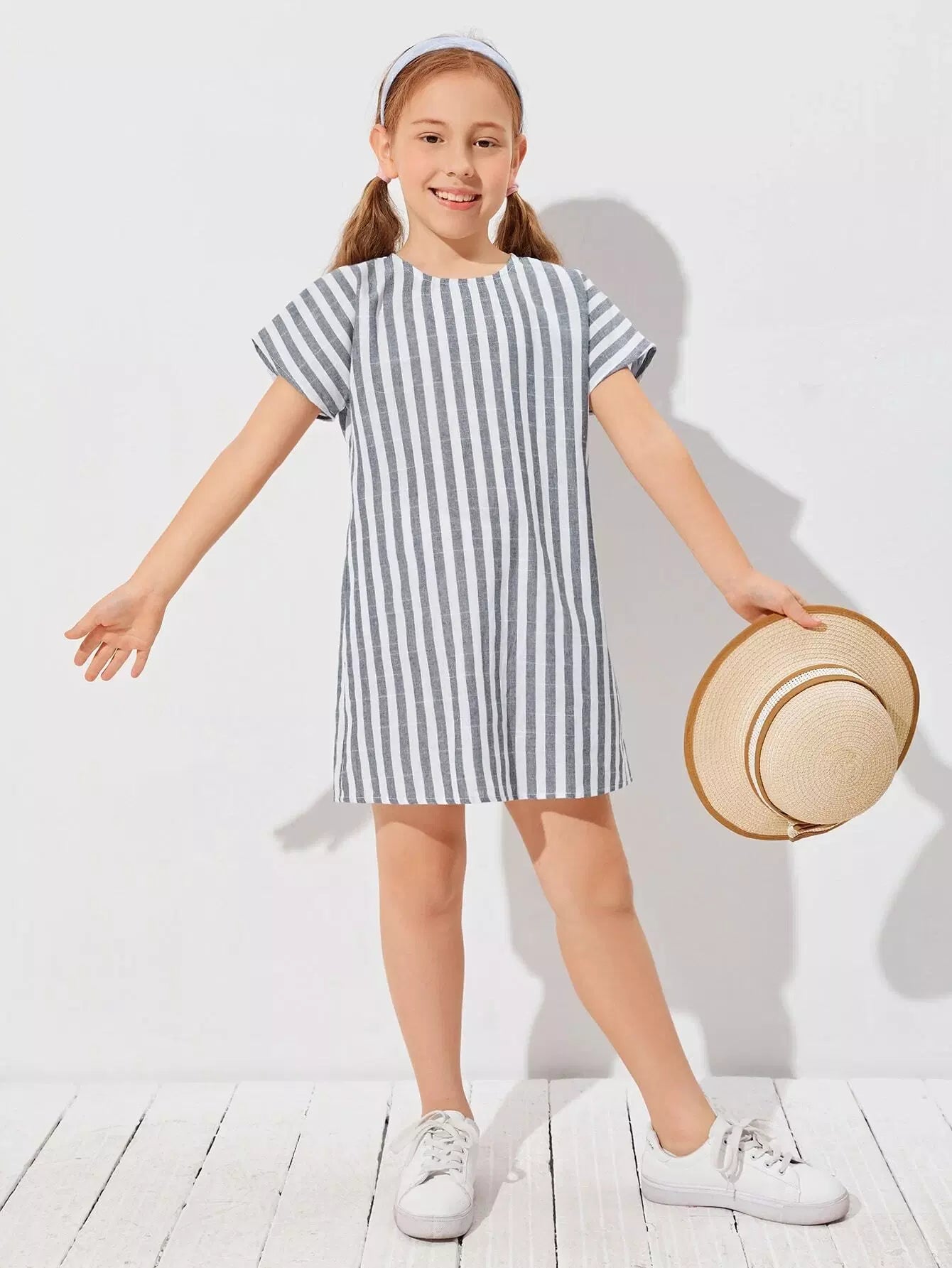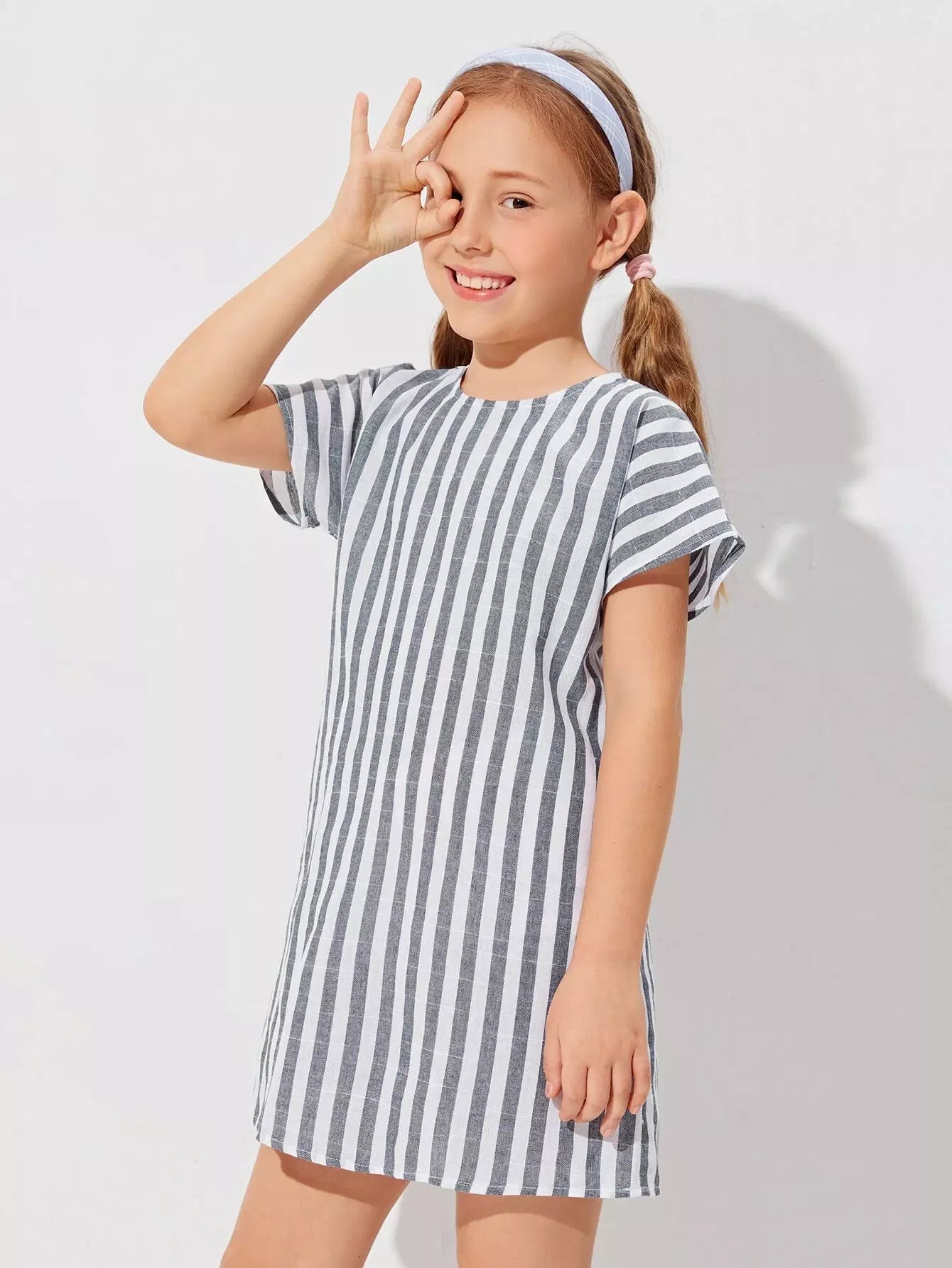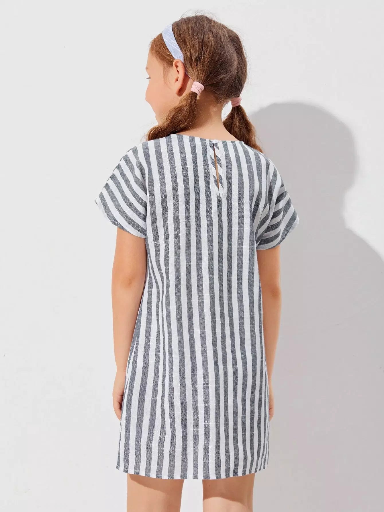 Girls Keyhole Back Two Tone Striped Tunic Dress