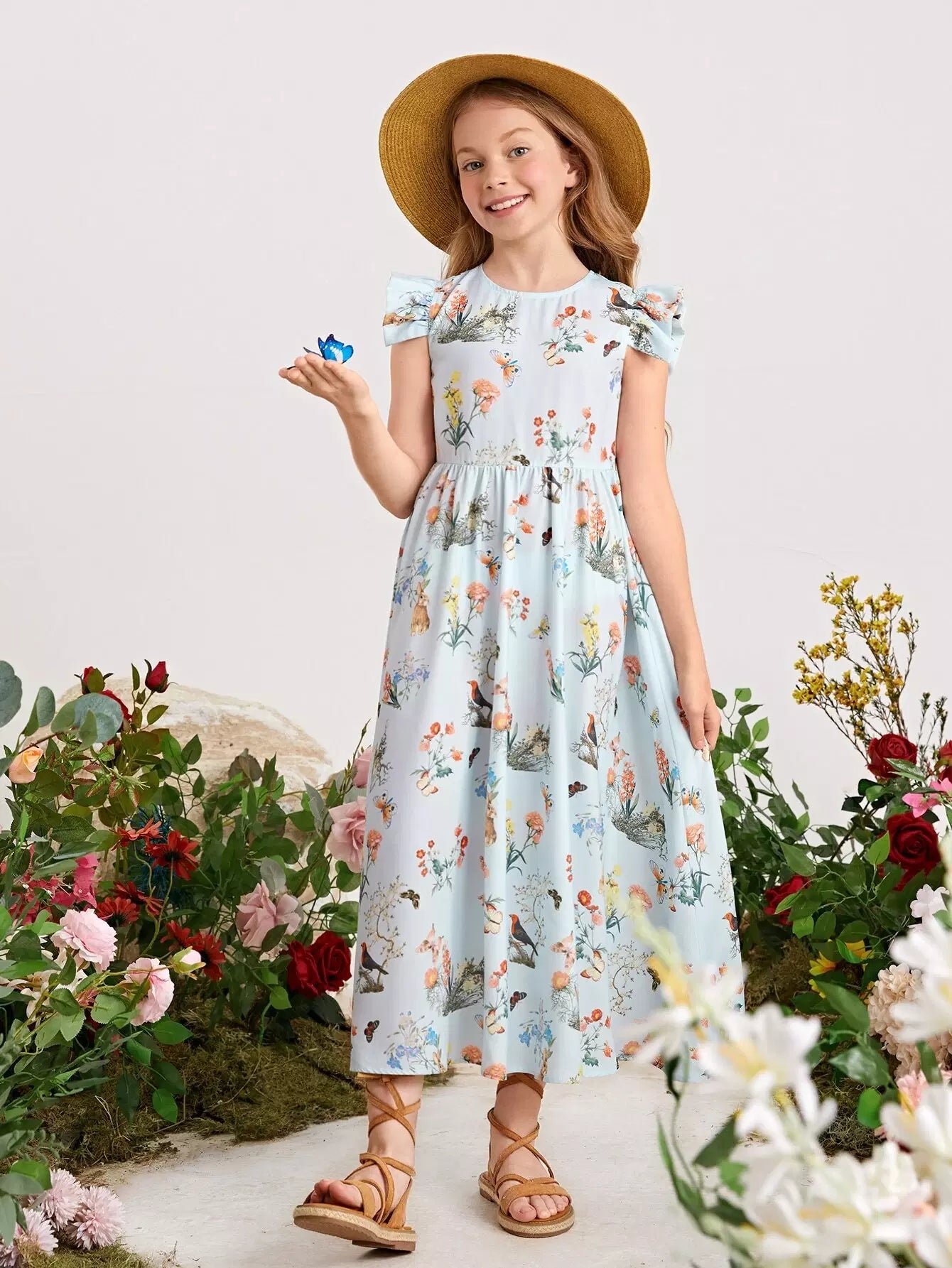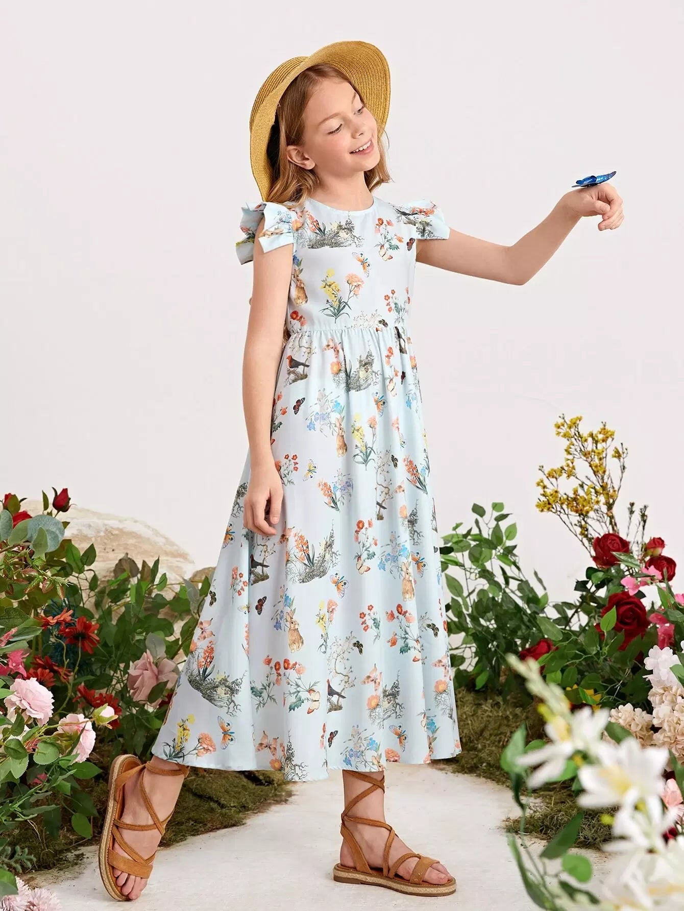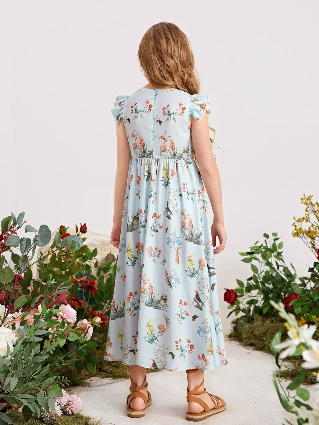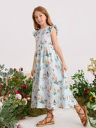 Girls Ruffle Armhole Floral Print Dress