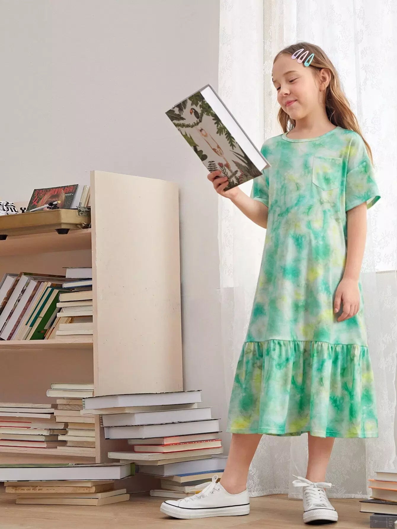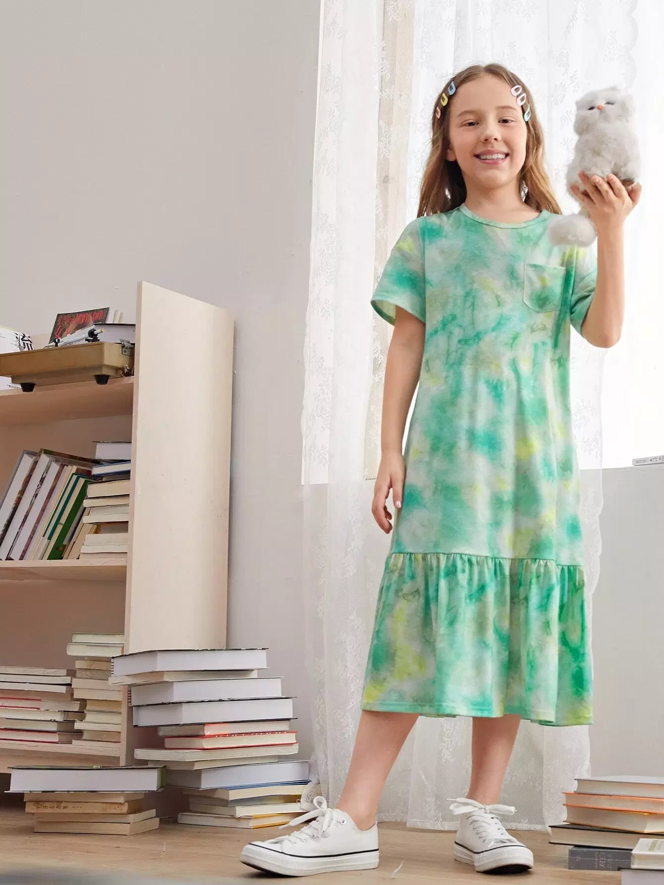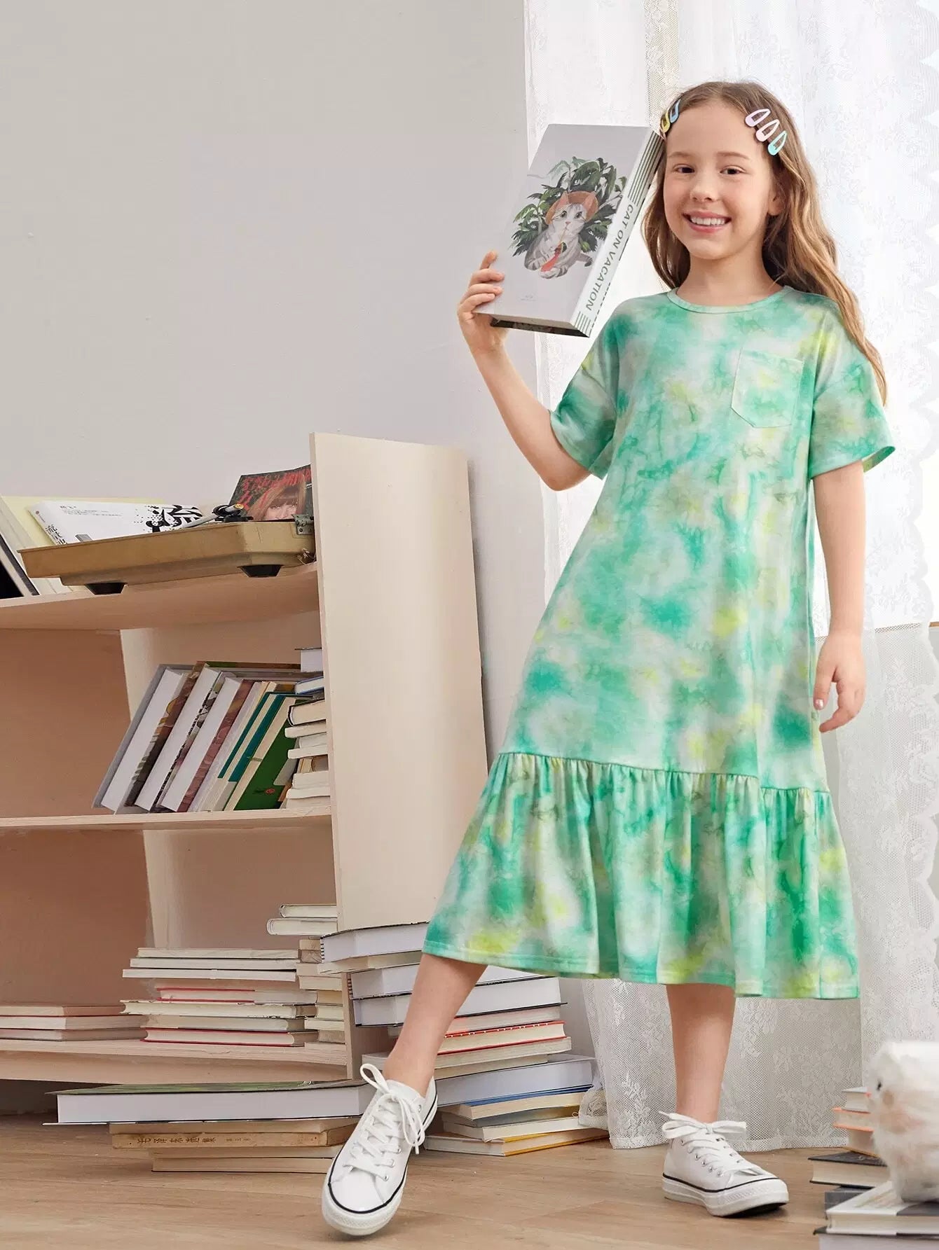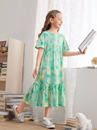 Girls Ruffle Hem Tie Dye Dress