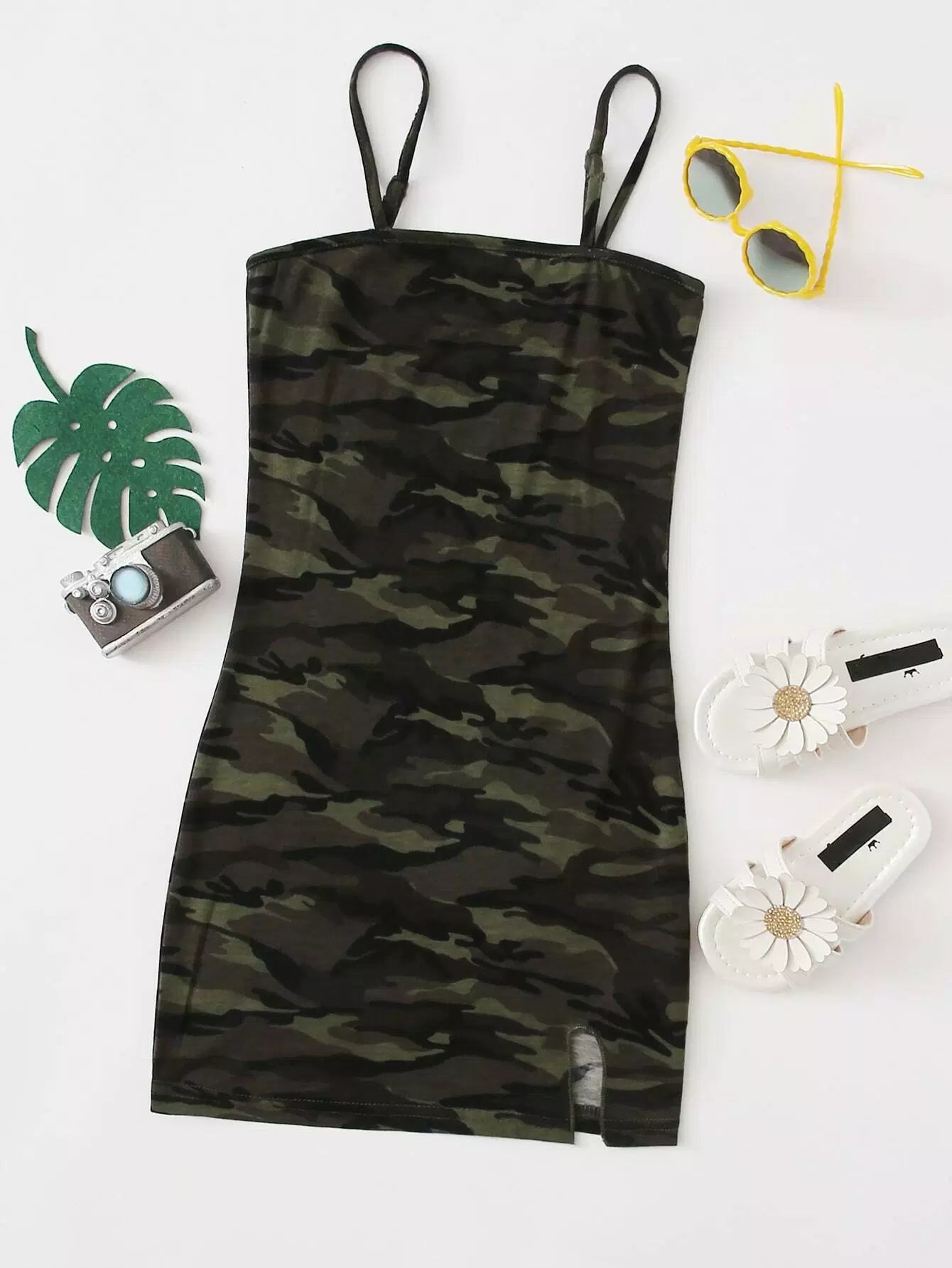 Girls Split Hem Camo Fitted Dress