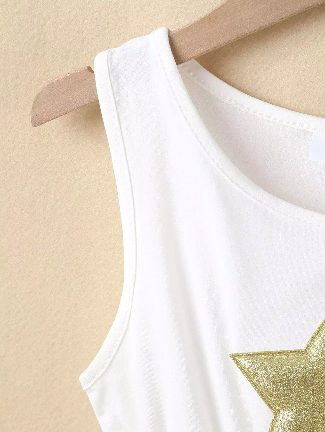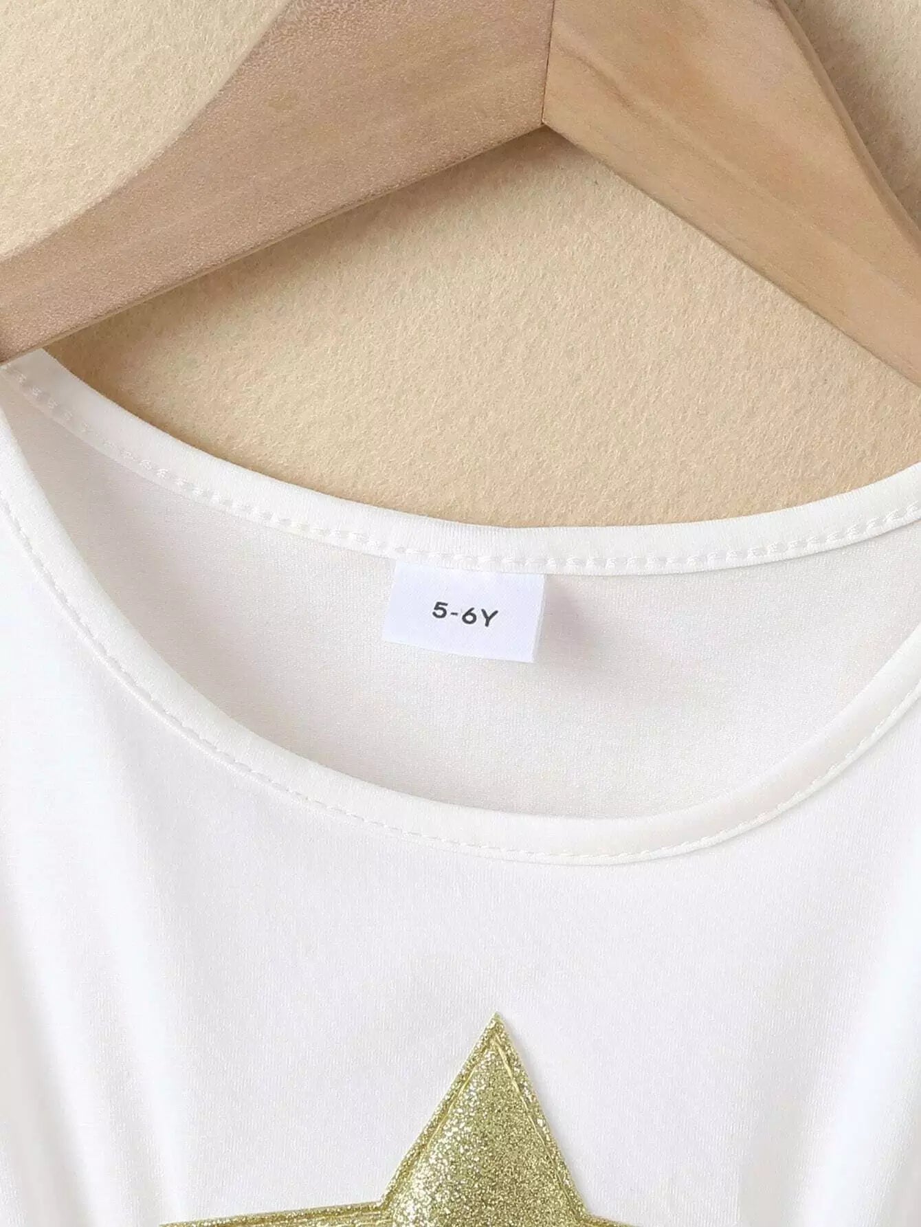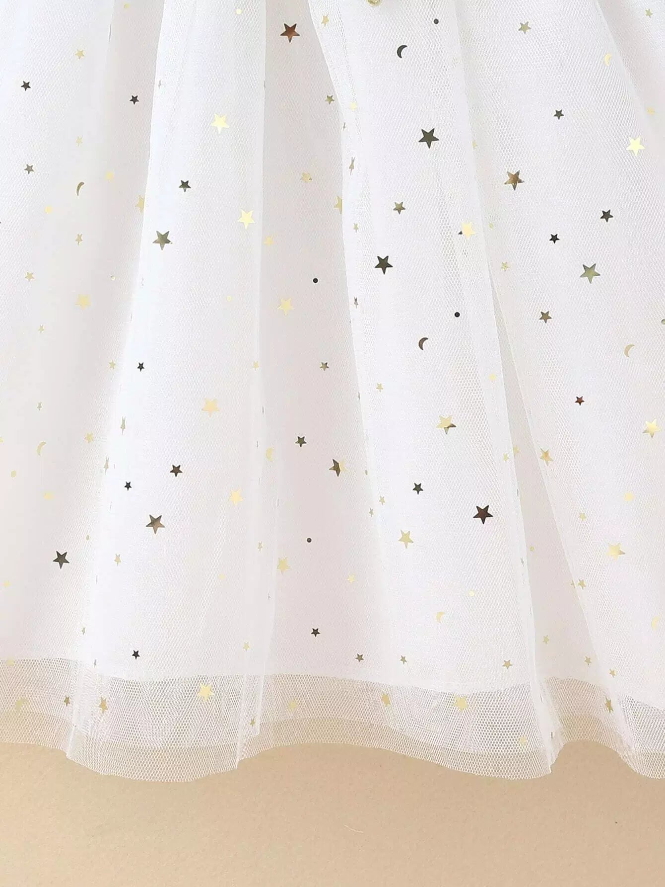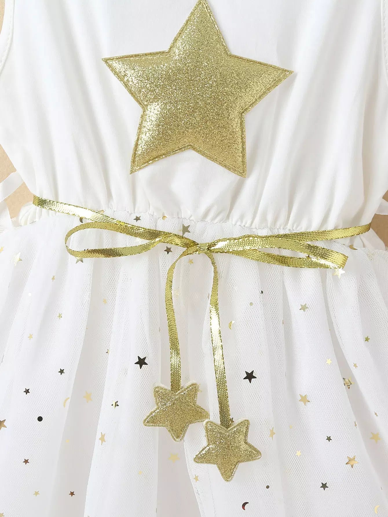 Girls Star Patched Galaxy Mesh Hem Dress Without Belt