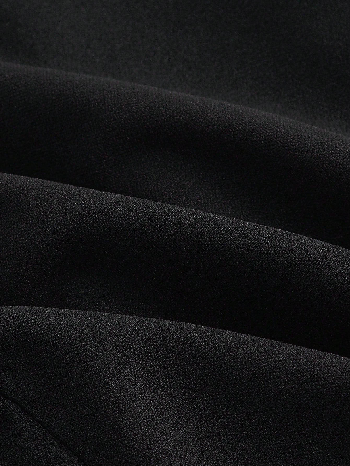 Serisse Kids Tween Girls Contrast Mesh Flare Sleeve Bow Solid Black Turtleneck Long Sleeve Back Bow A-Line