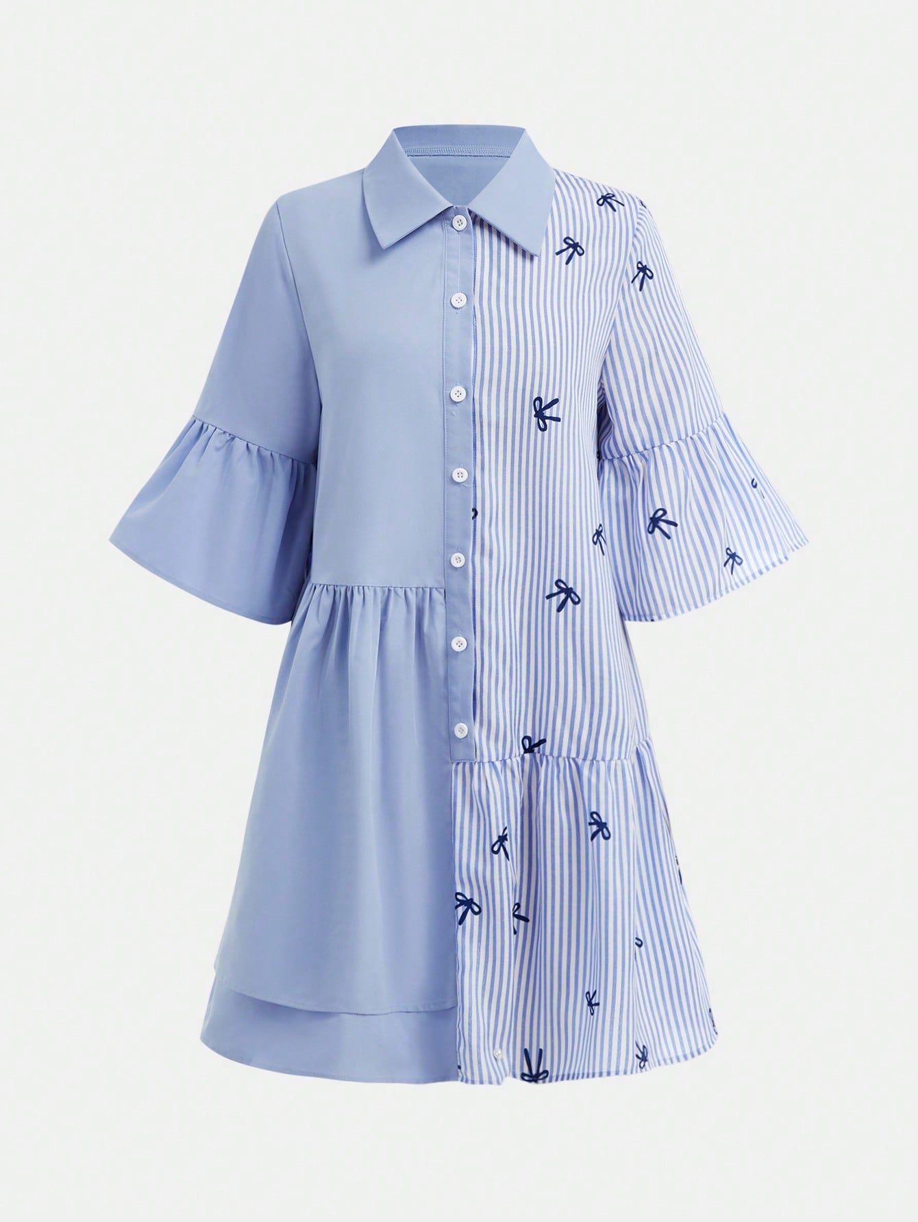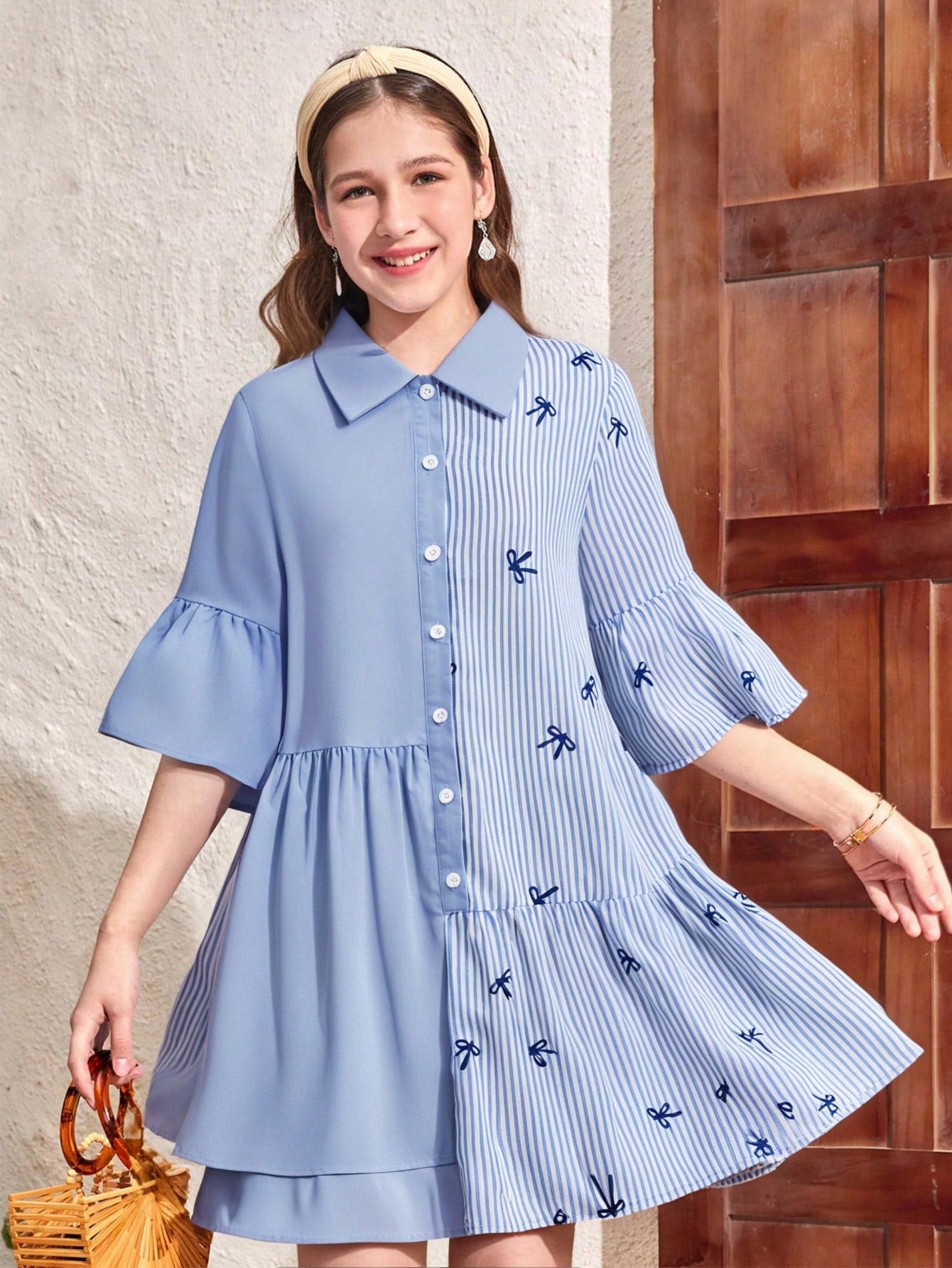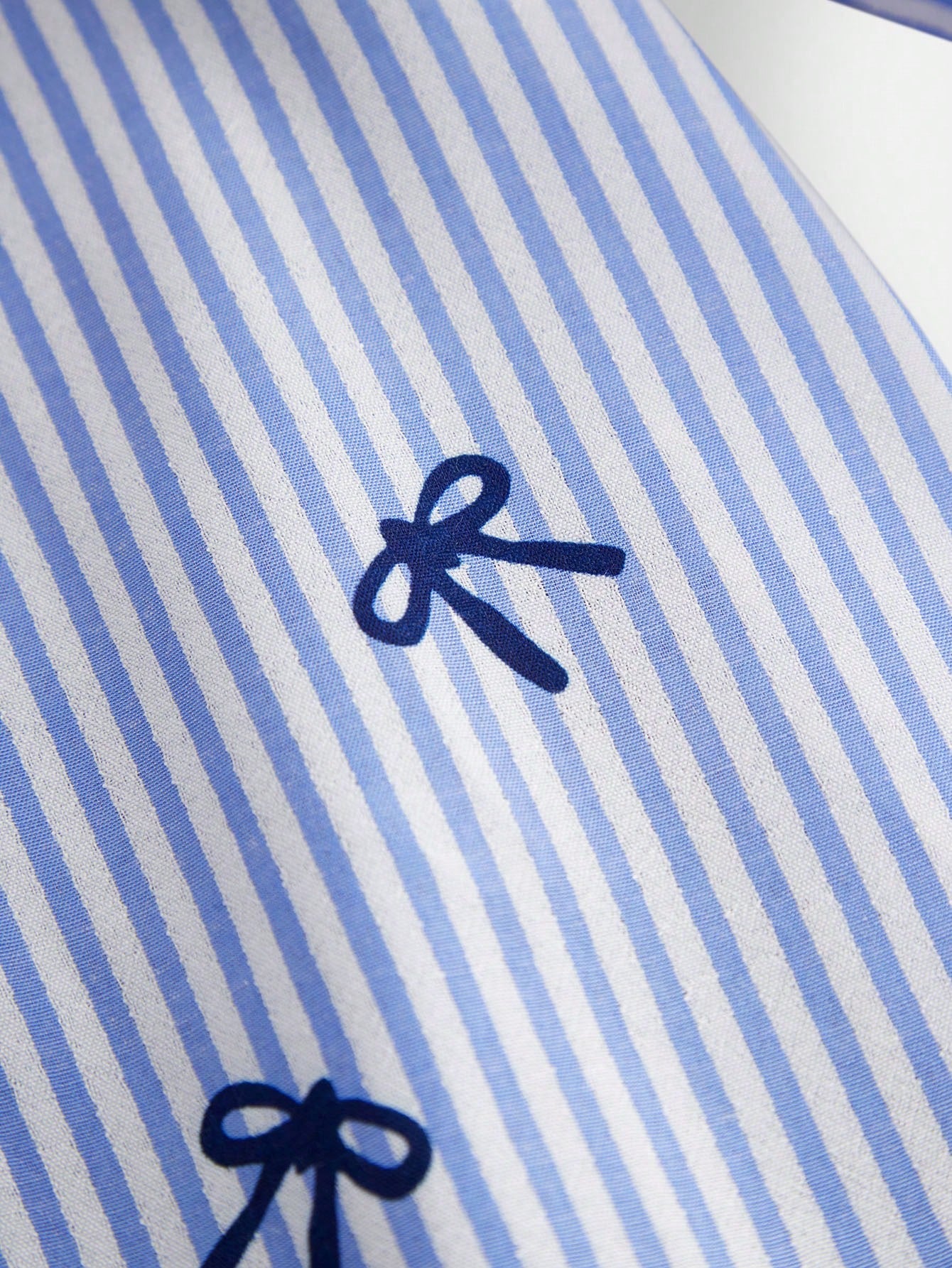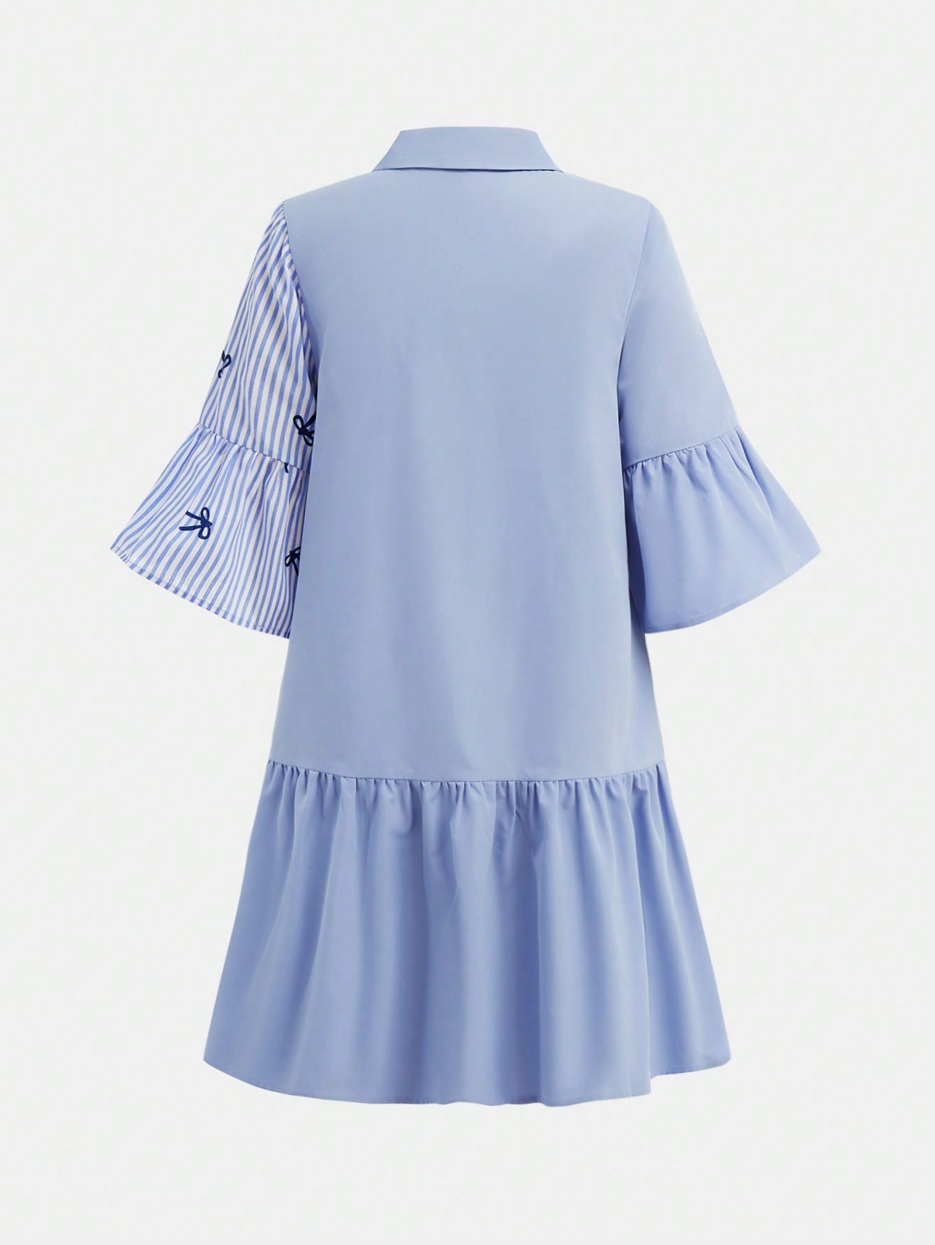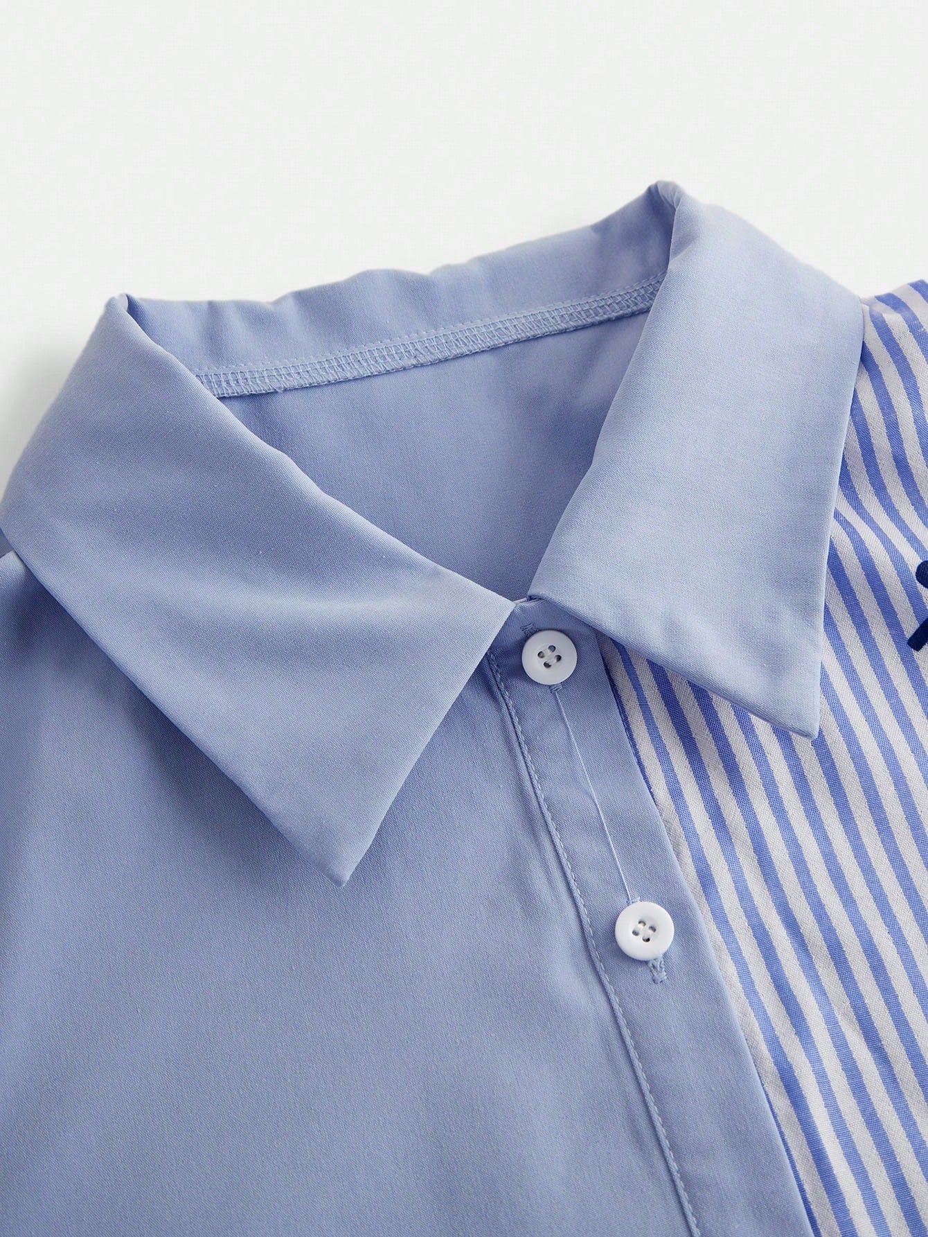 Teen Girls' Long Sleeve Striped Shirt Dress, Minimalist & Fashionable For Summer