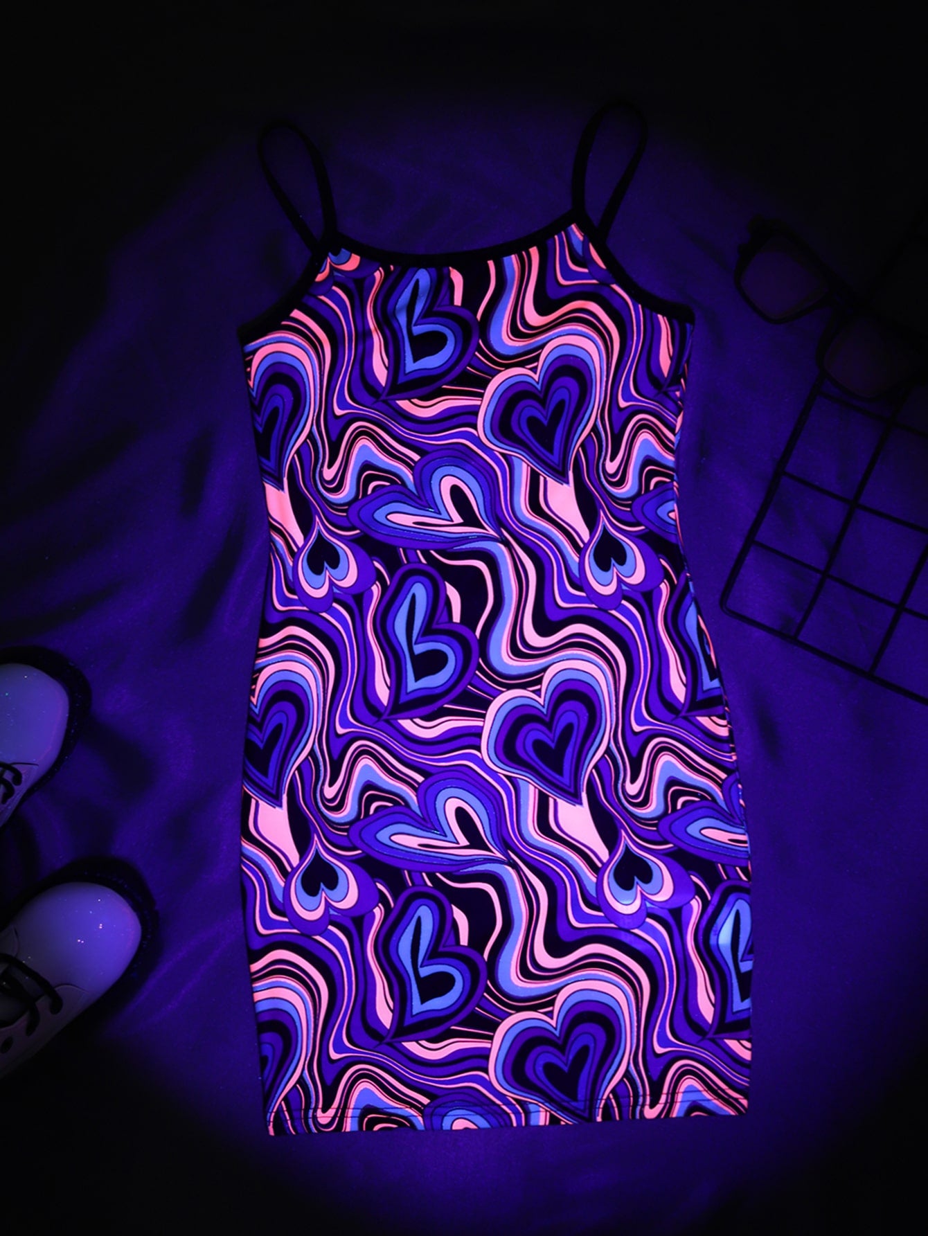 Tween Girl Contrast Binding Reflective Heart Print Cami Dress