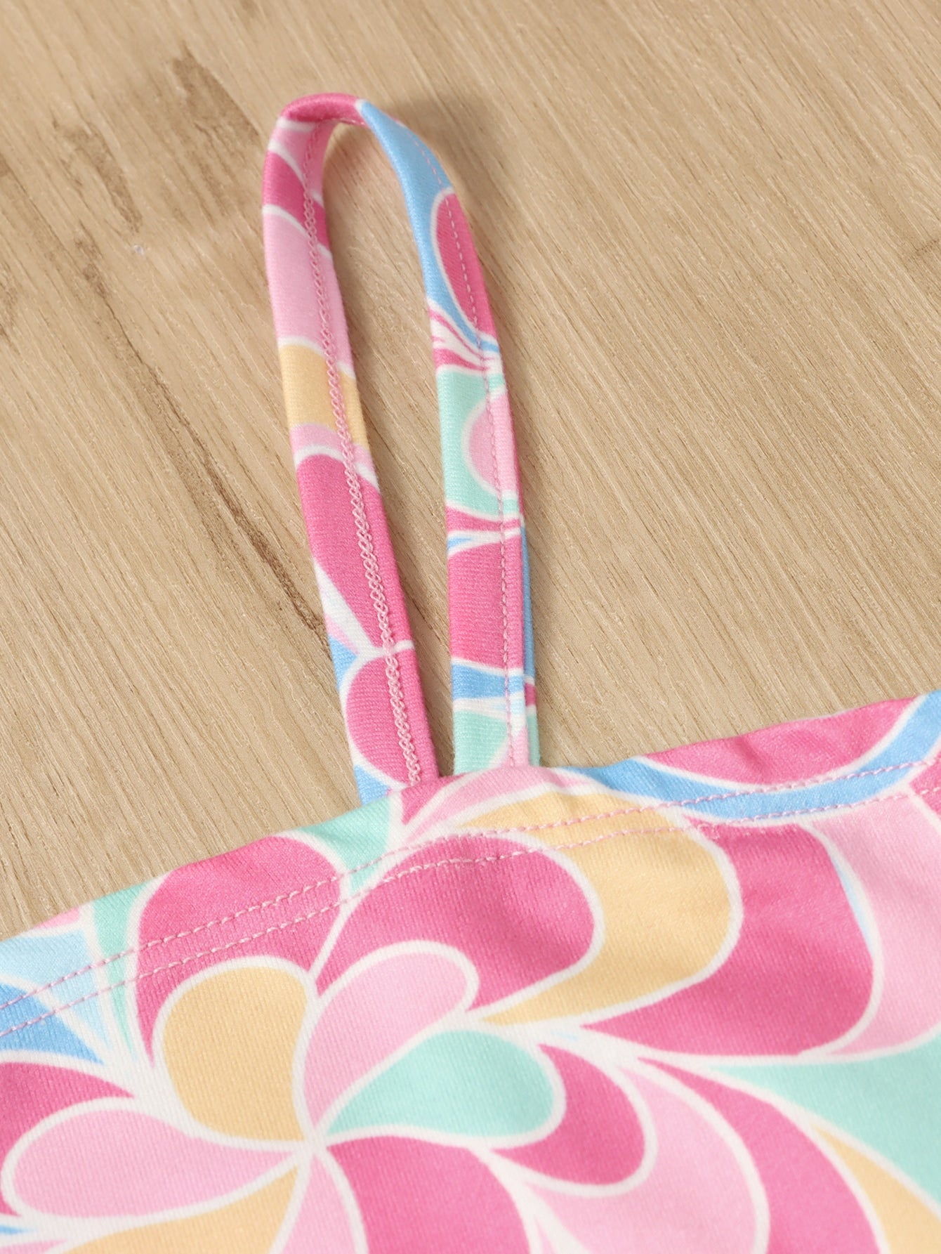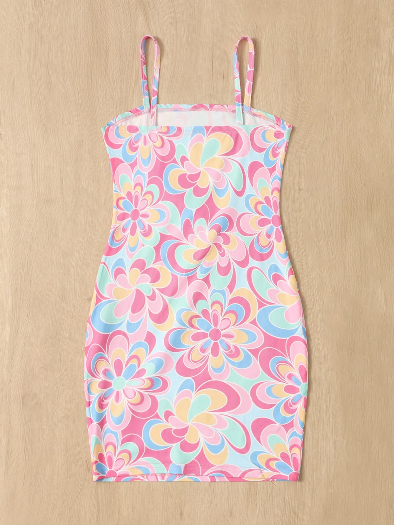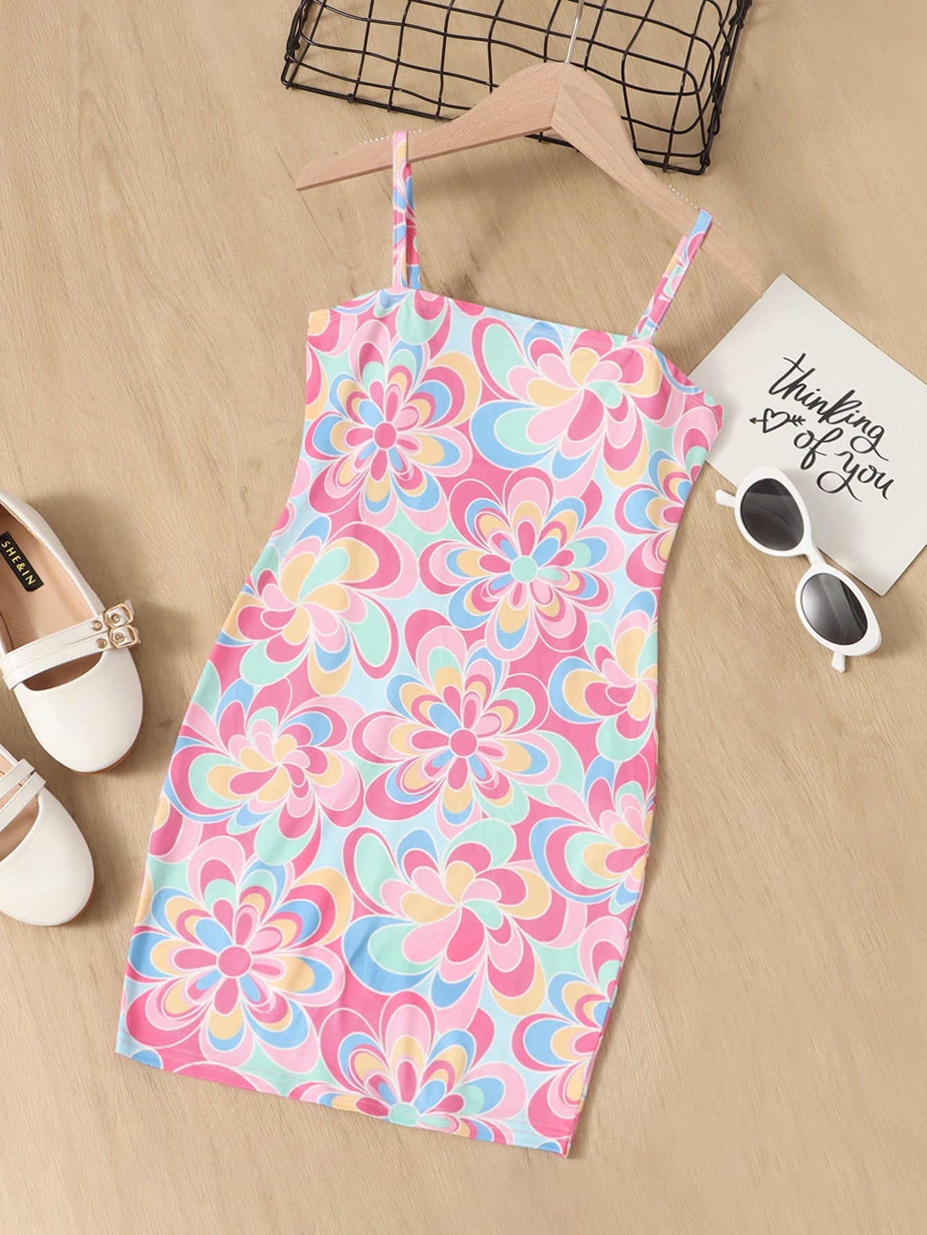 Tween Girl Floral Print Basic Casual Sleeveless Dress