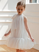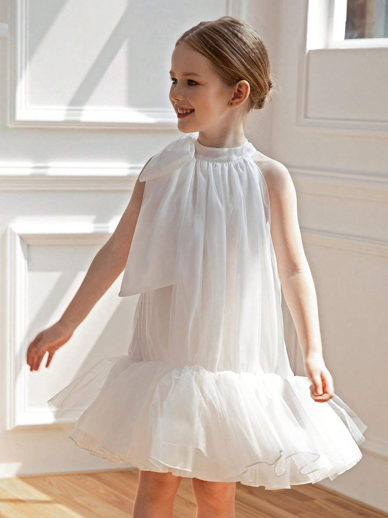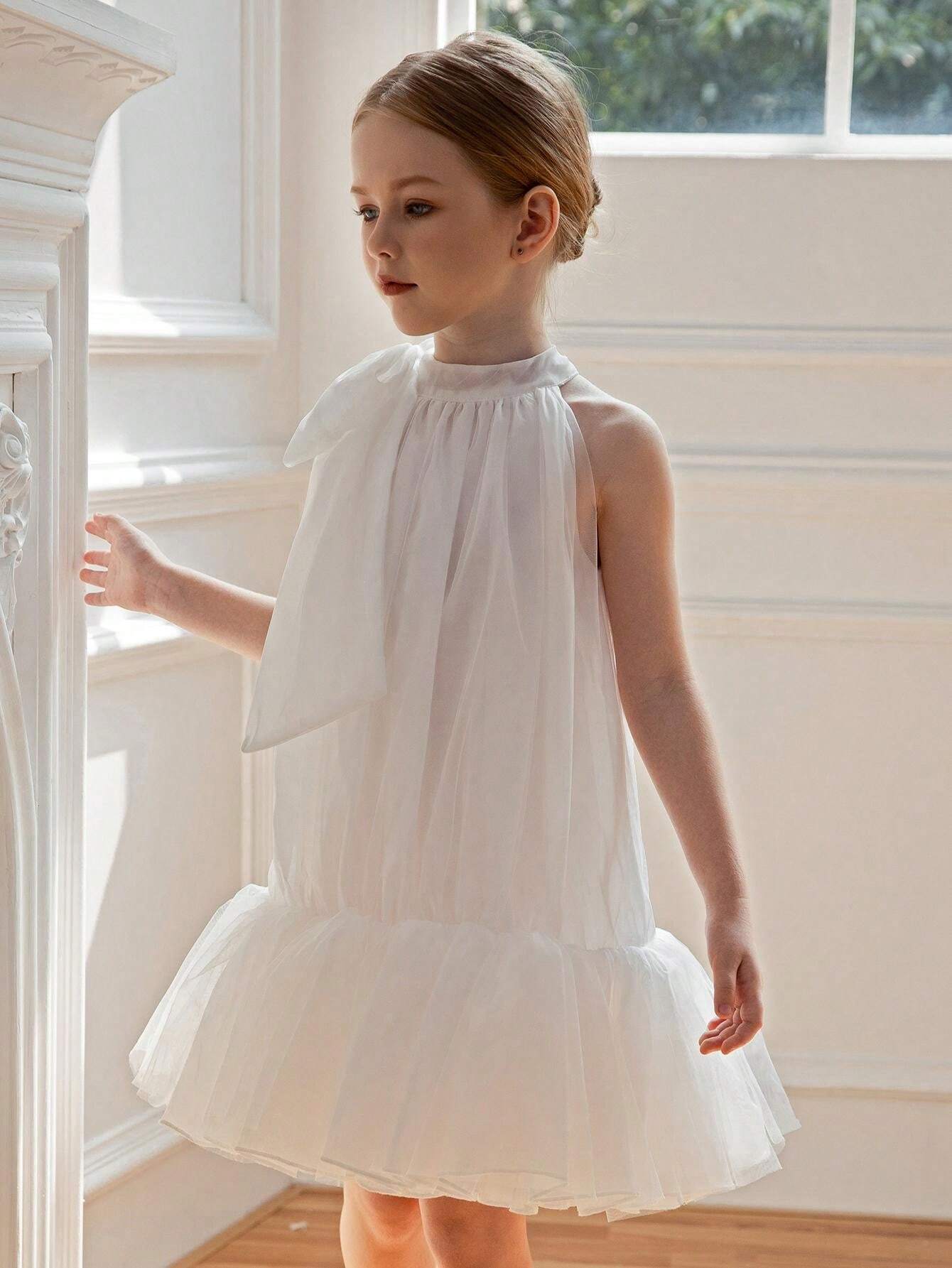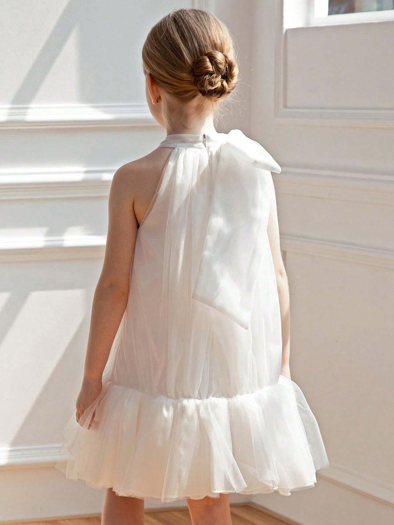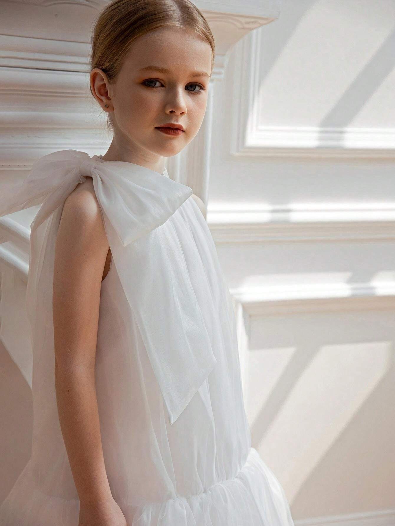 Young Girl Bow-Knot Tulle Easter Dress Elegant Princess Party Gown Suitable For Girls Birthday Gift