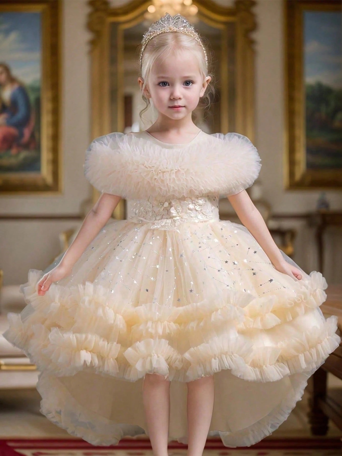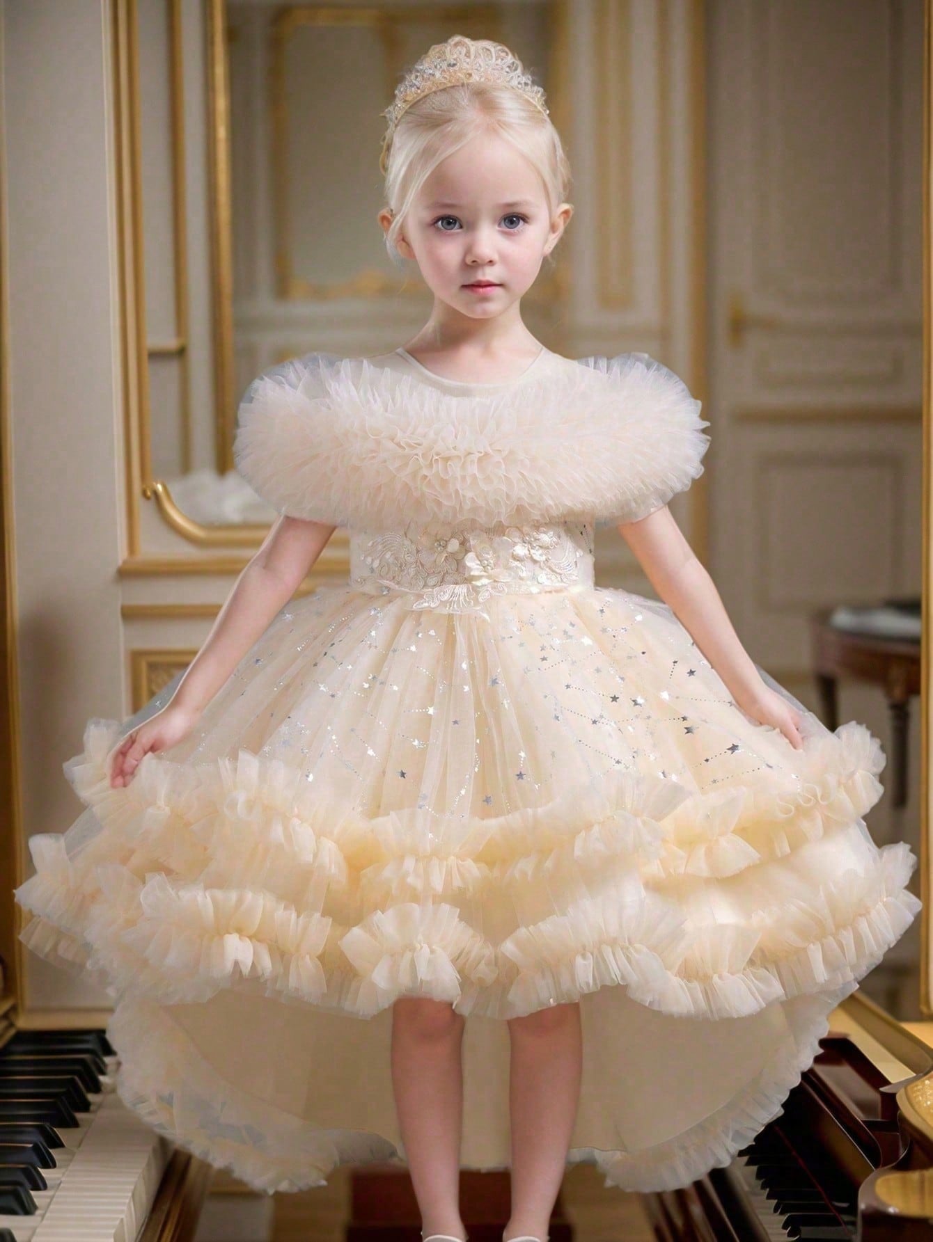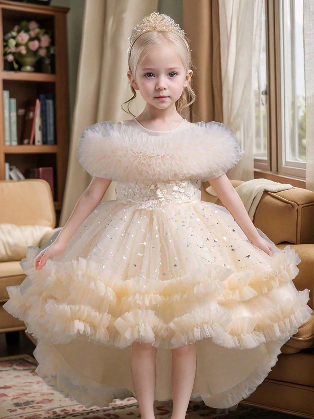 Girls' Elegant High-Low Princess Dress With Front Short Back Long Design Suitable For Birthday Party