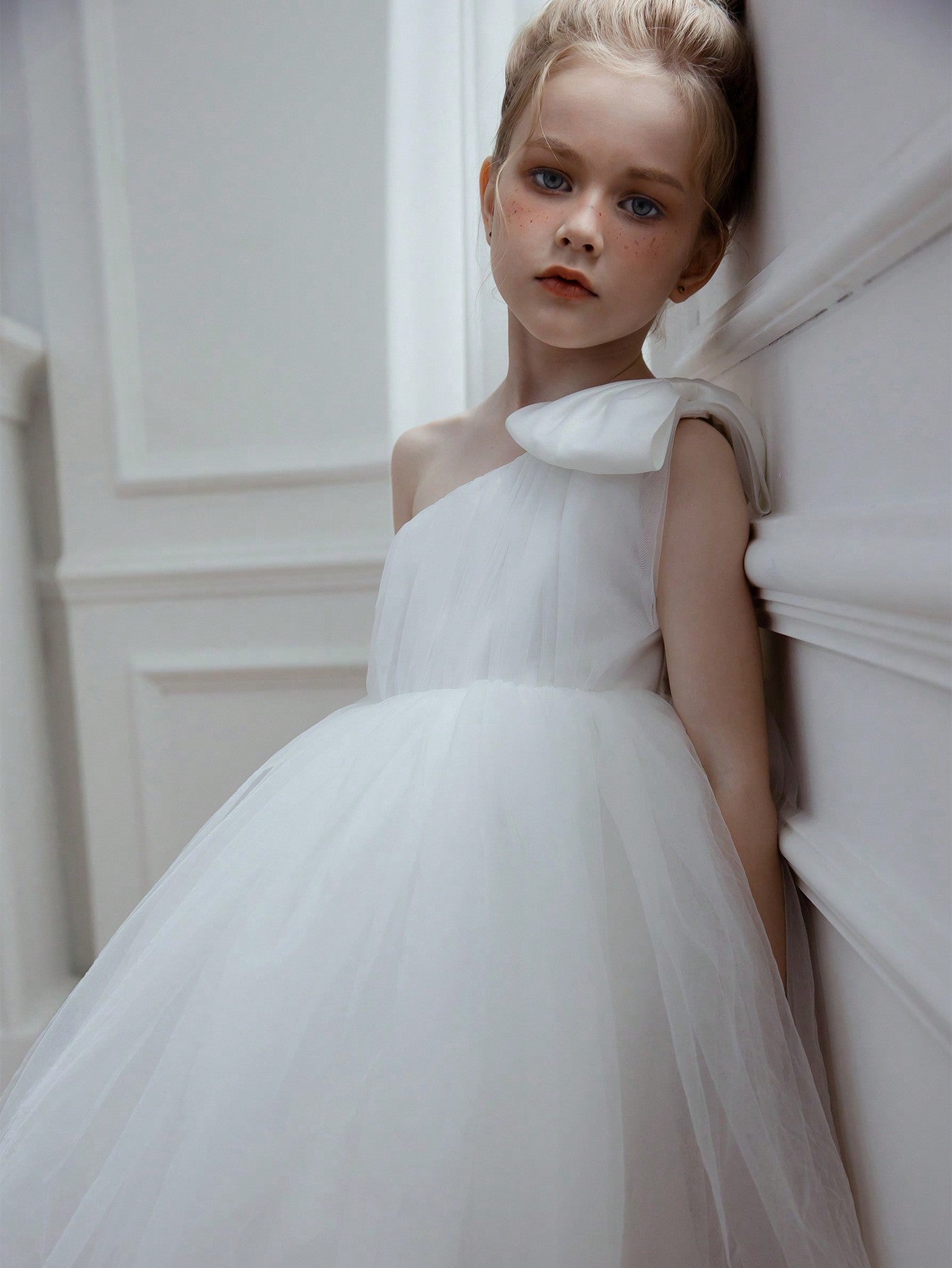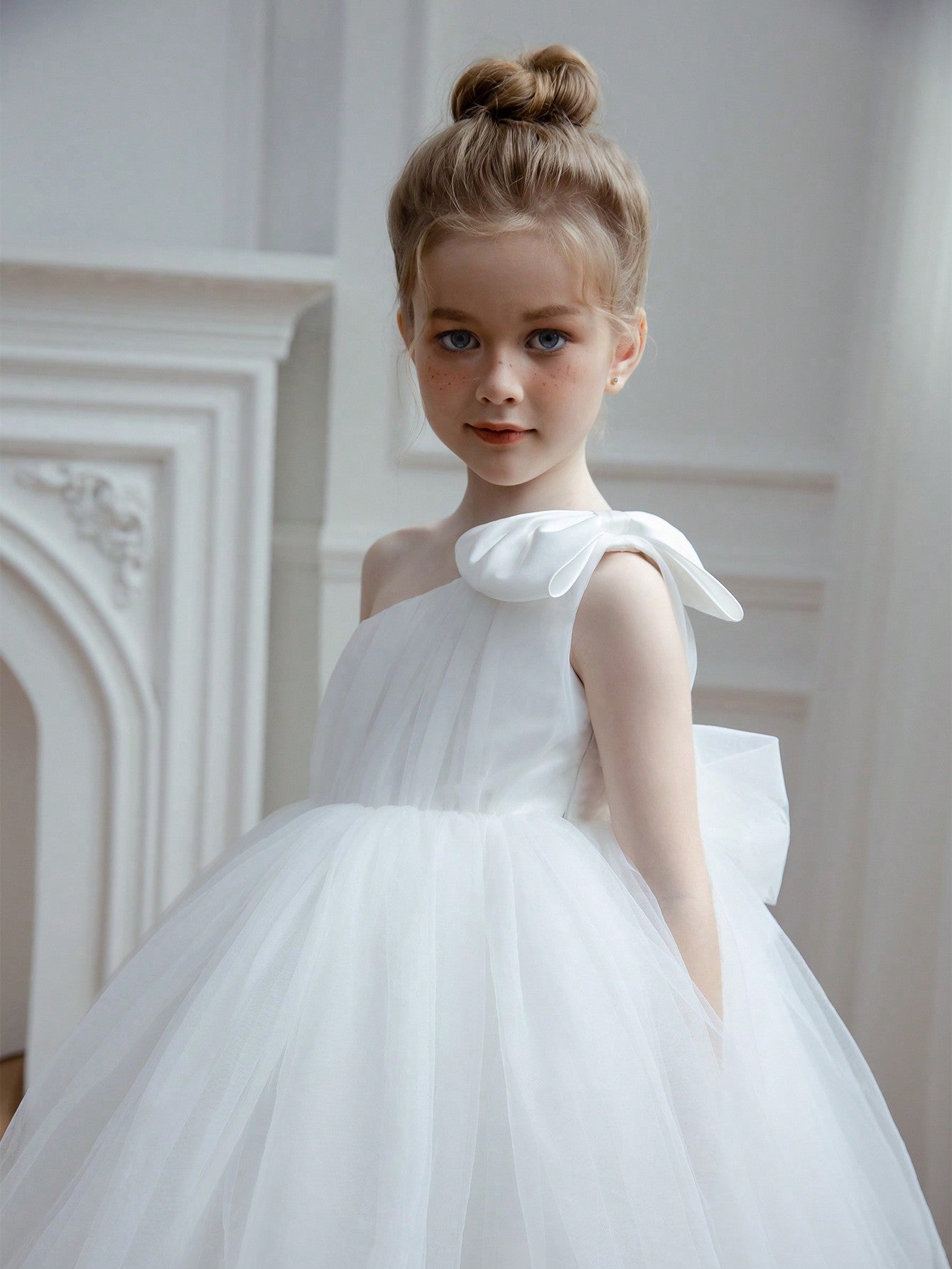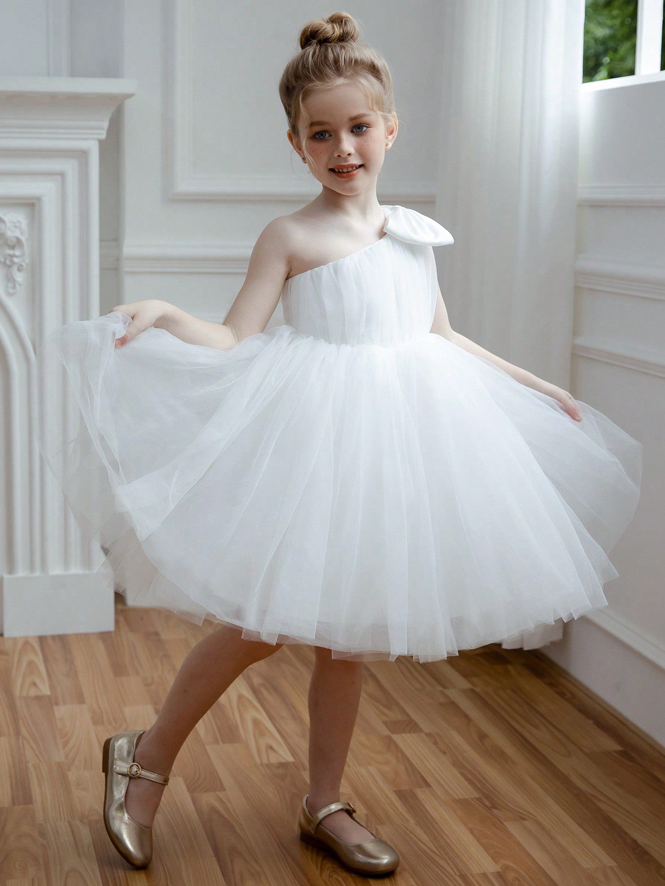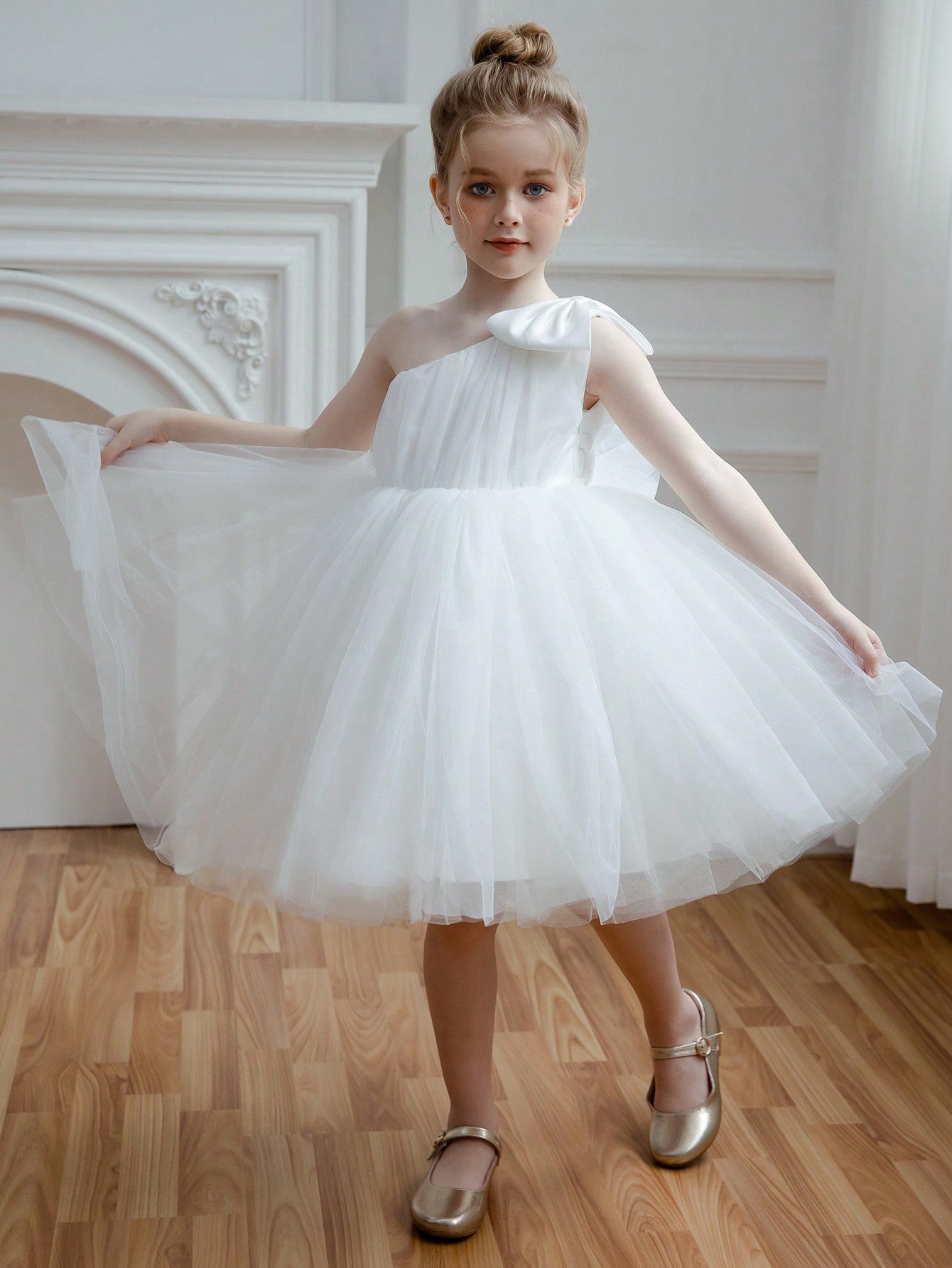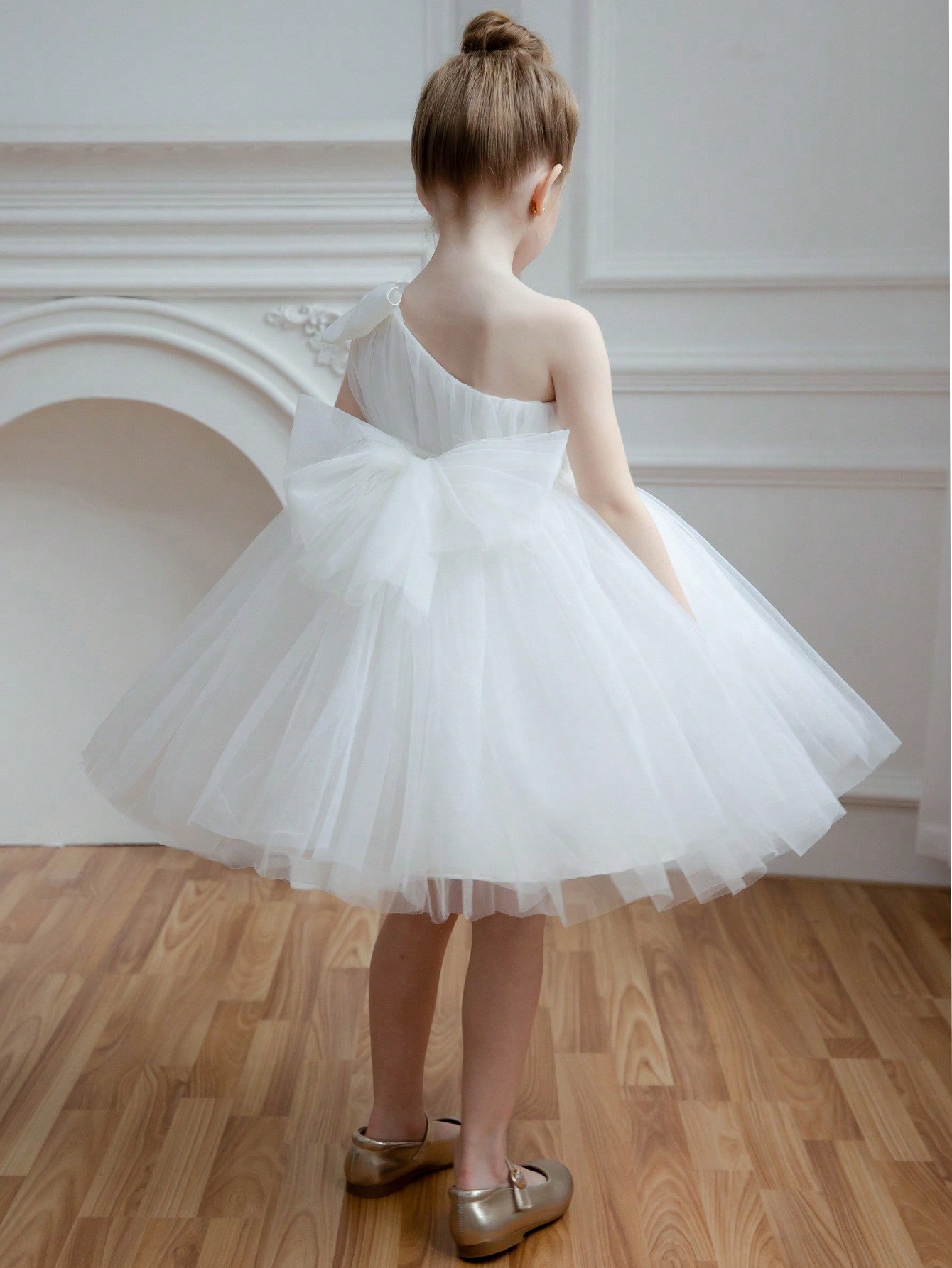 Young Girl Tulle Bow Party Dress Princess Style Suitable For Birthday Valentine's Day Wedding Pageant