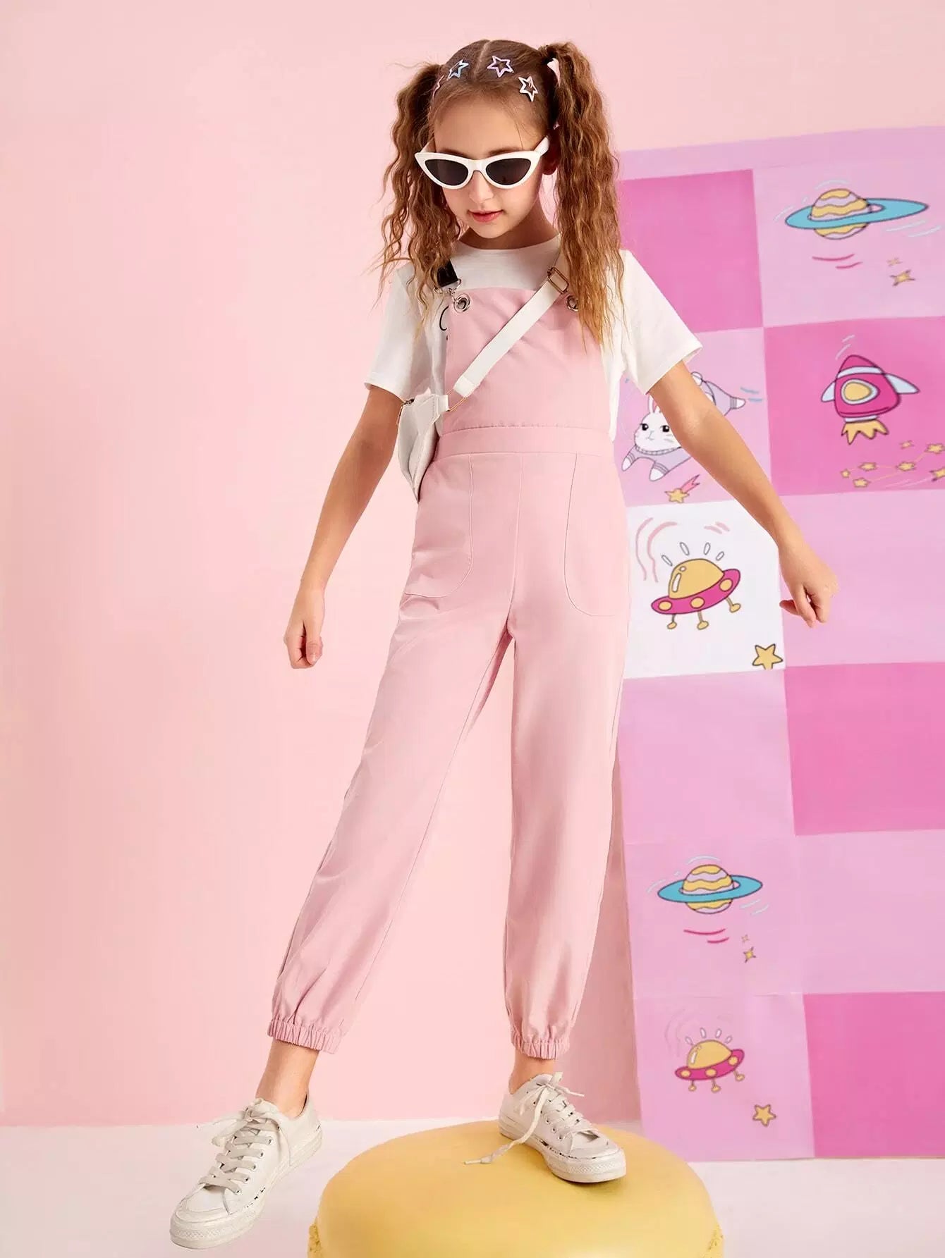 Girls Criss Cross Back Grommet Eyelet Jumpsuit