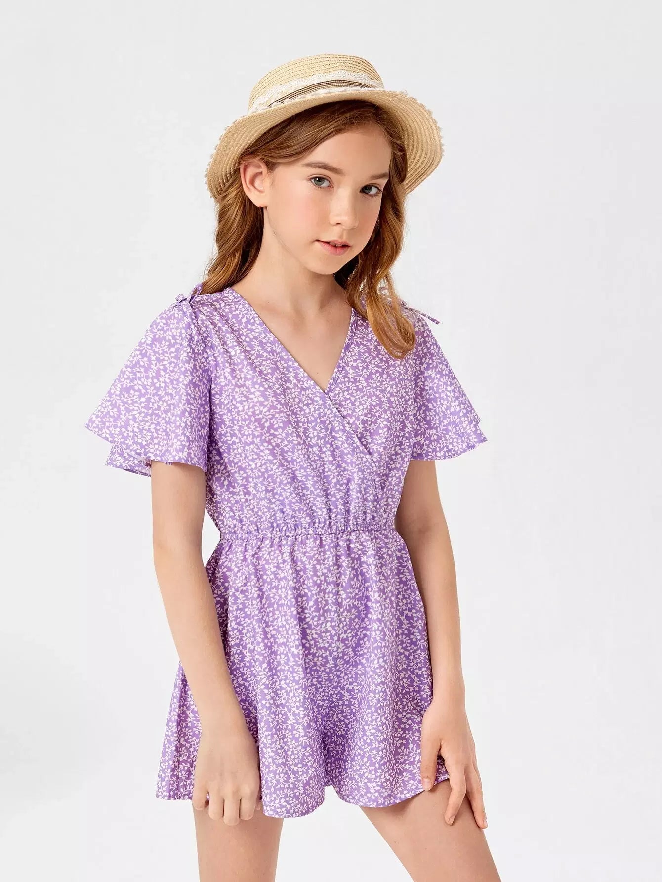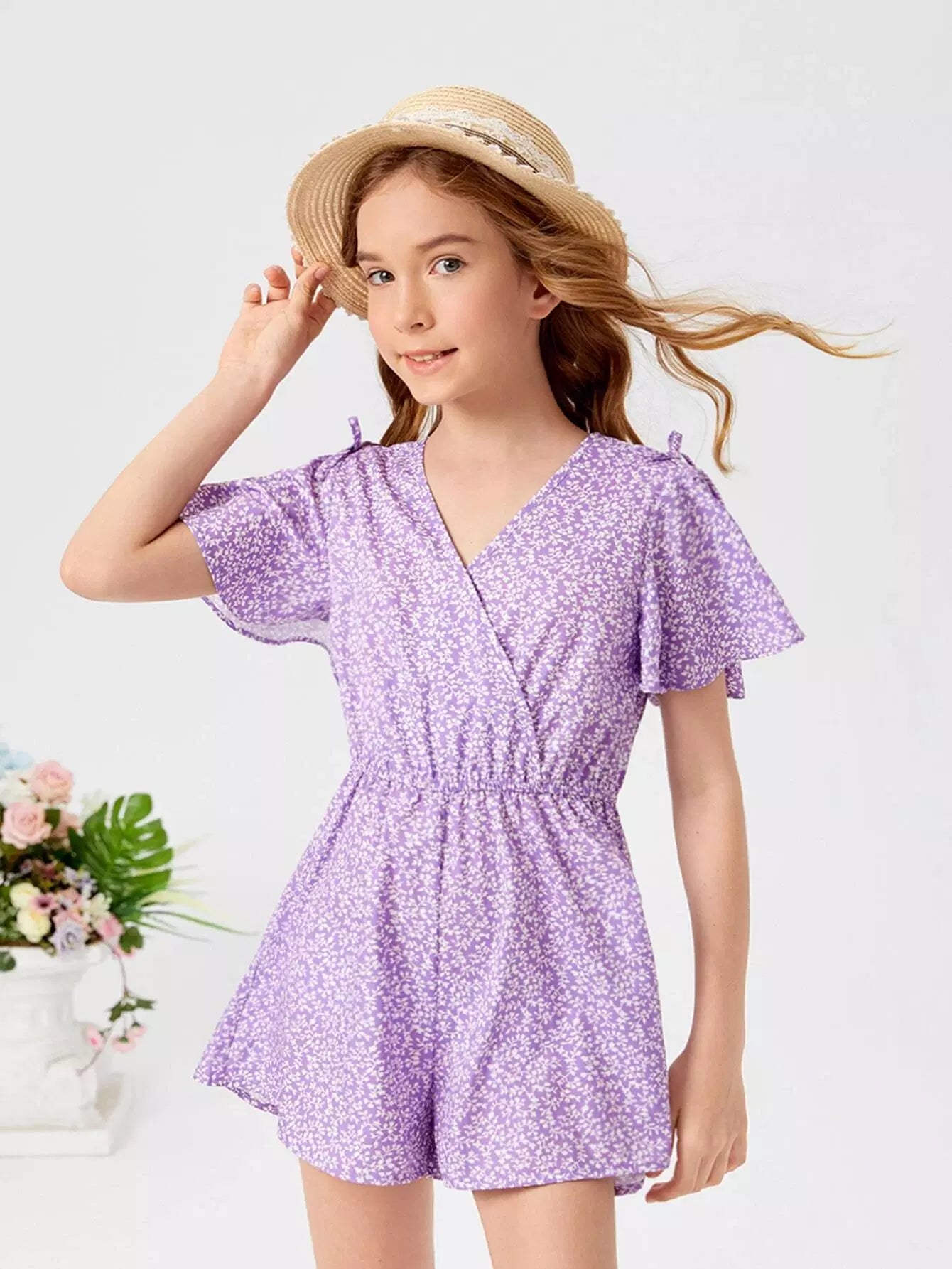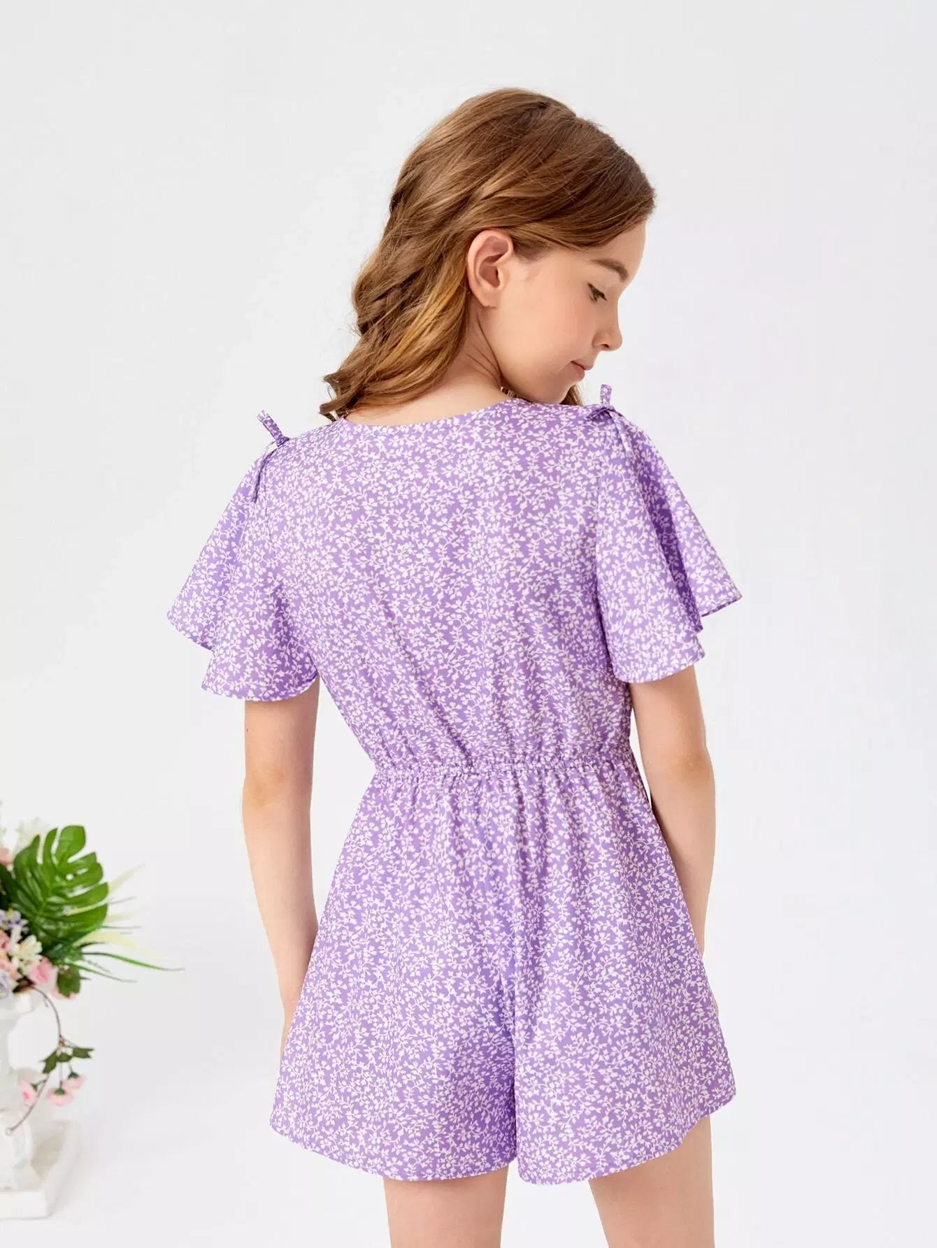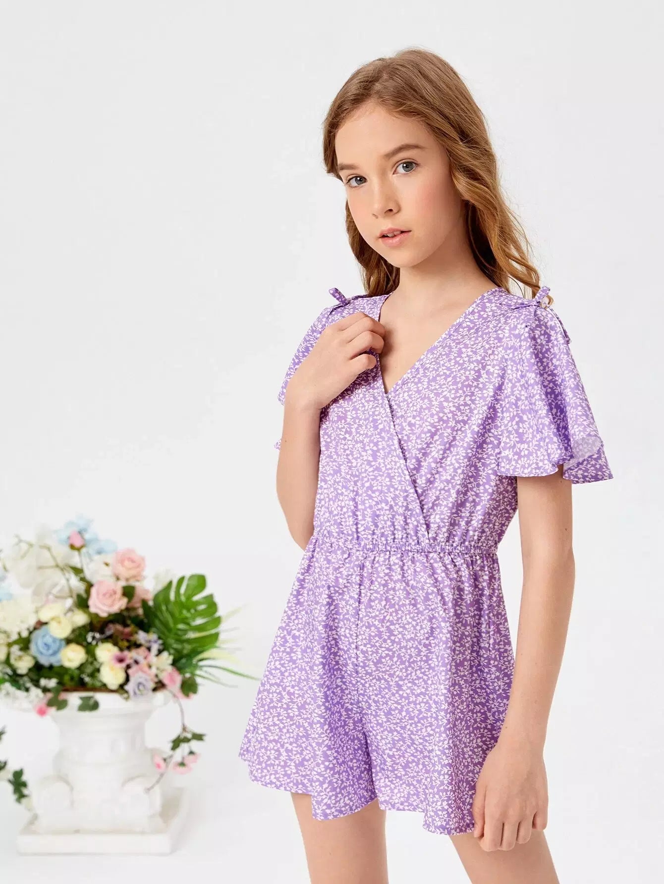 Girls Ditsy Floral Surplice Neck Romper