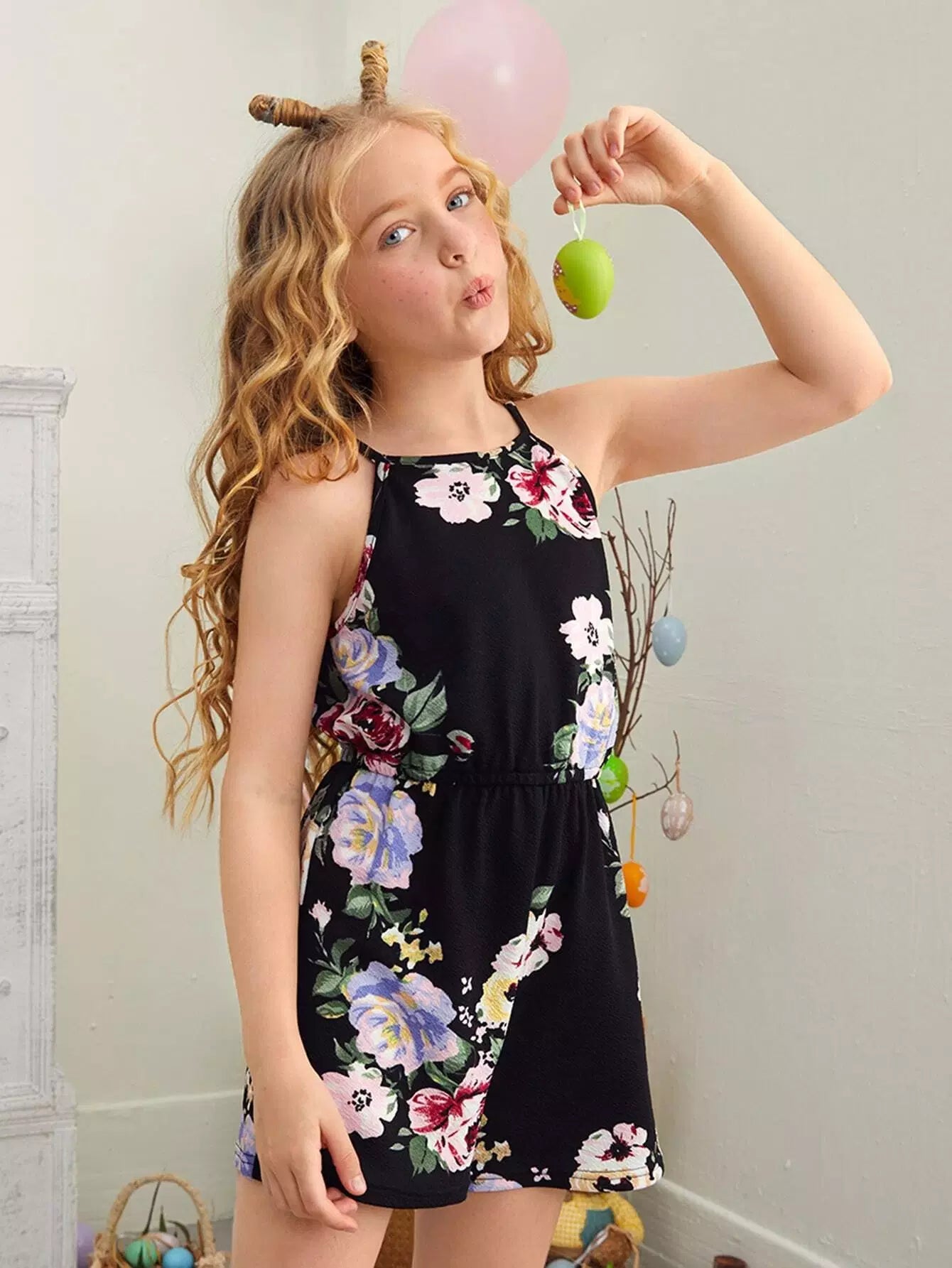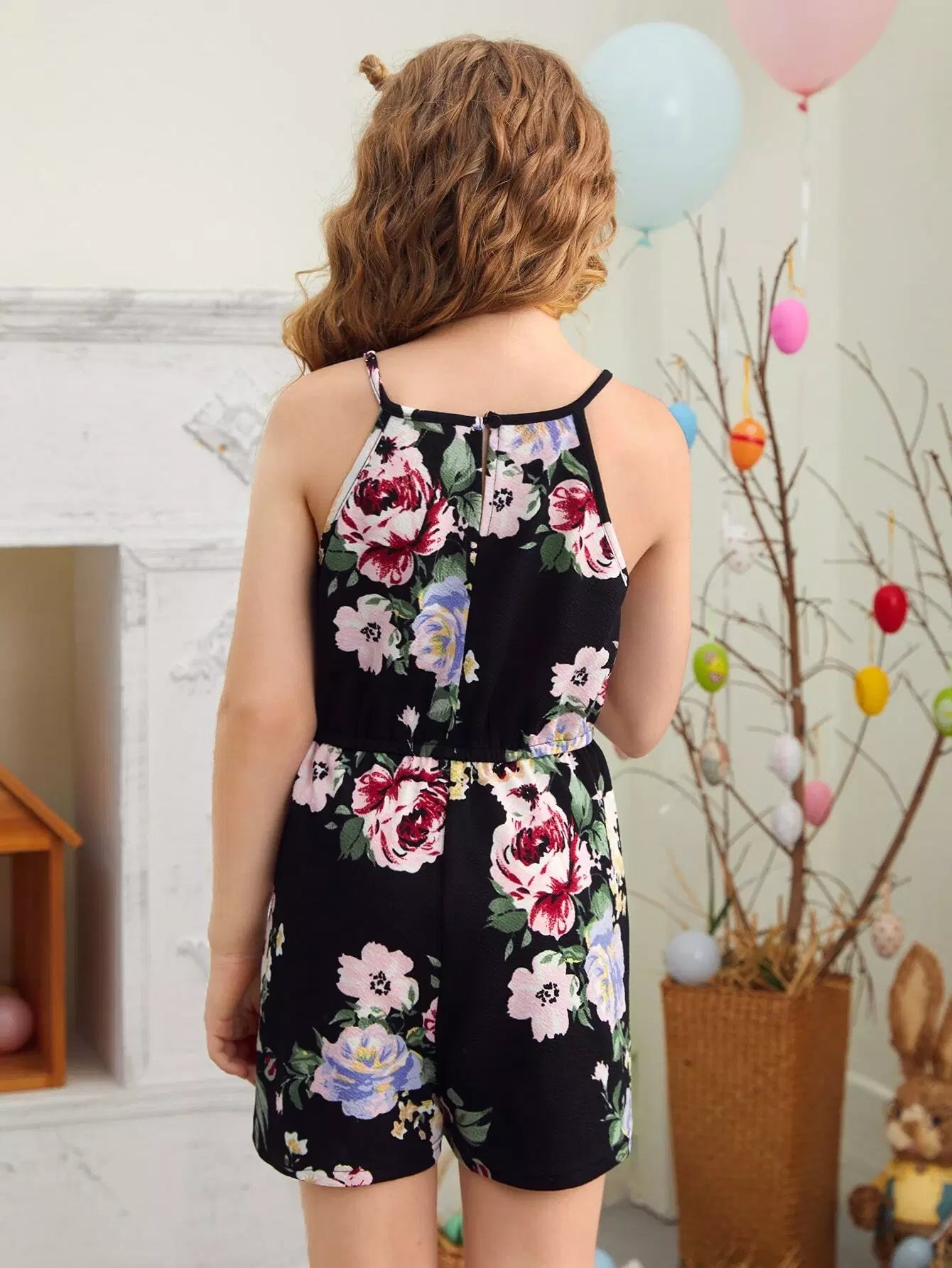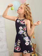 Girls Floral Keyhole Back Romper