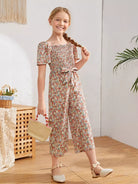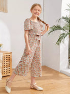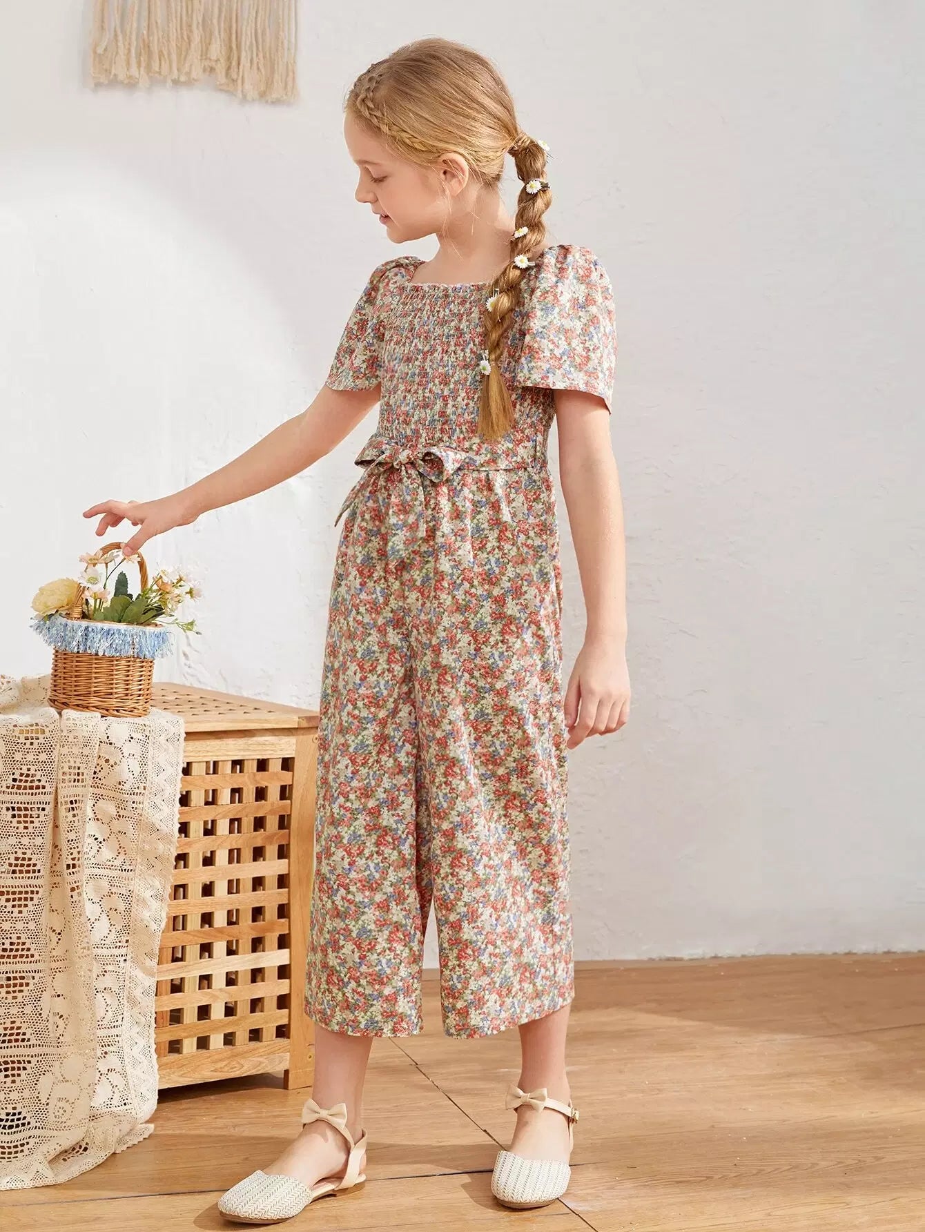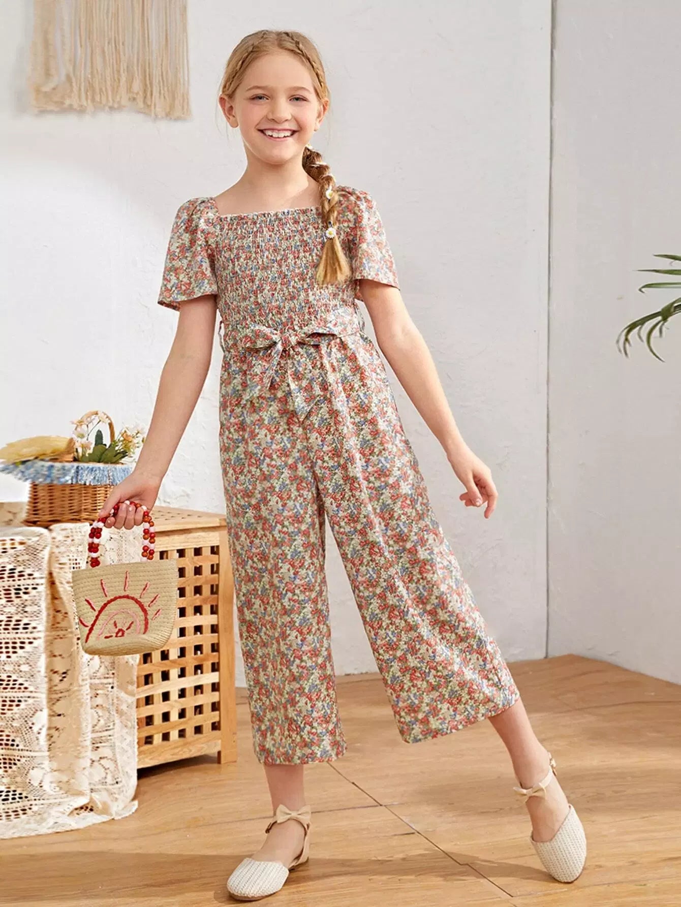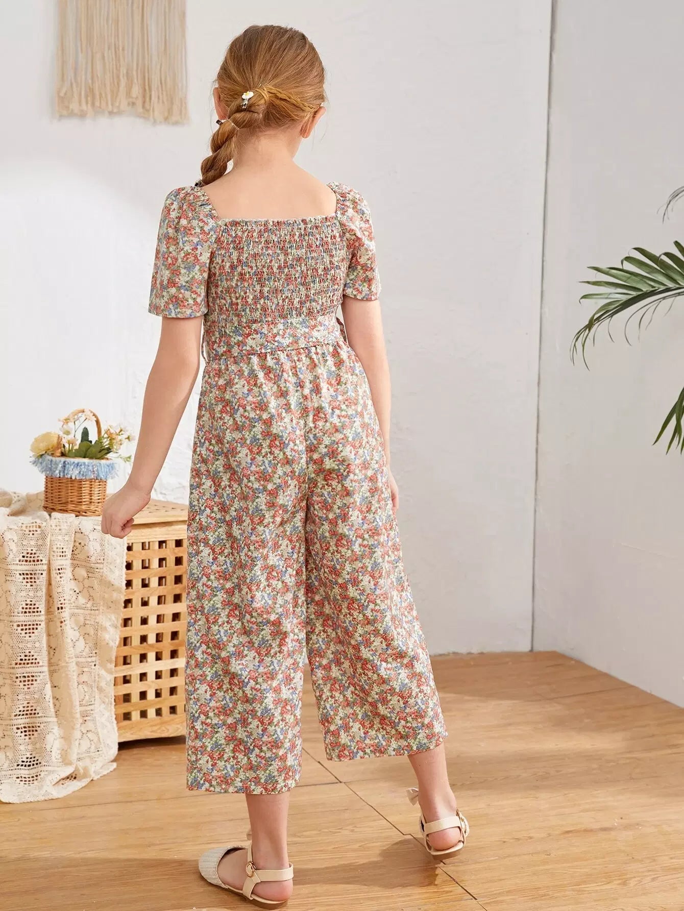 Girls Floral Shirred Detail Jumpsuit Without Belt