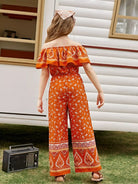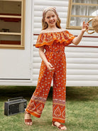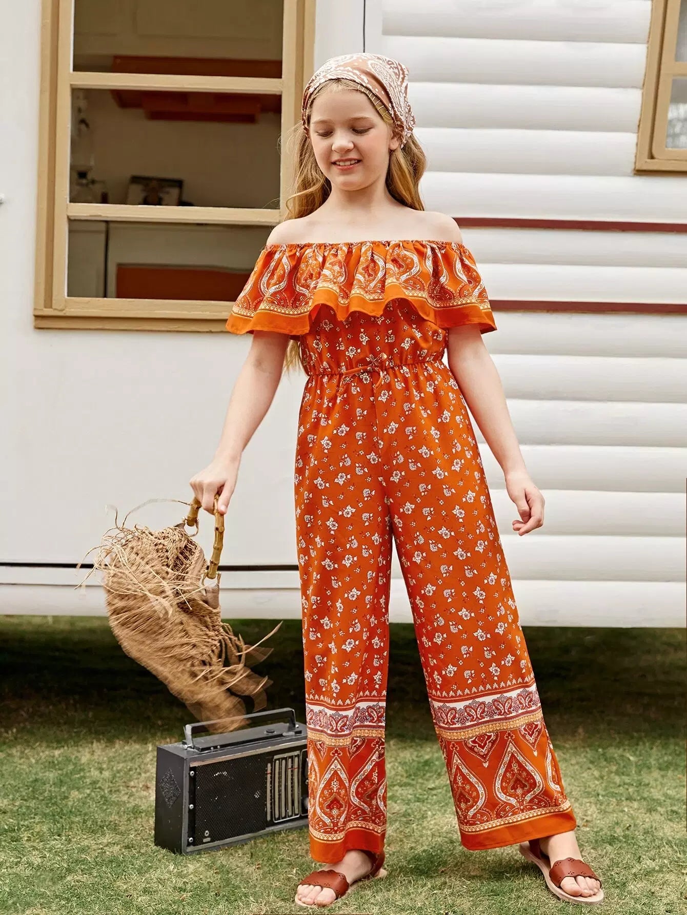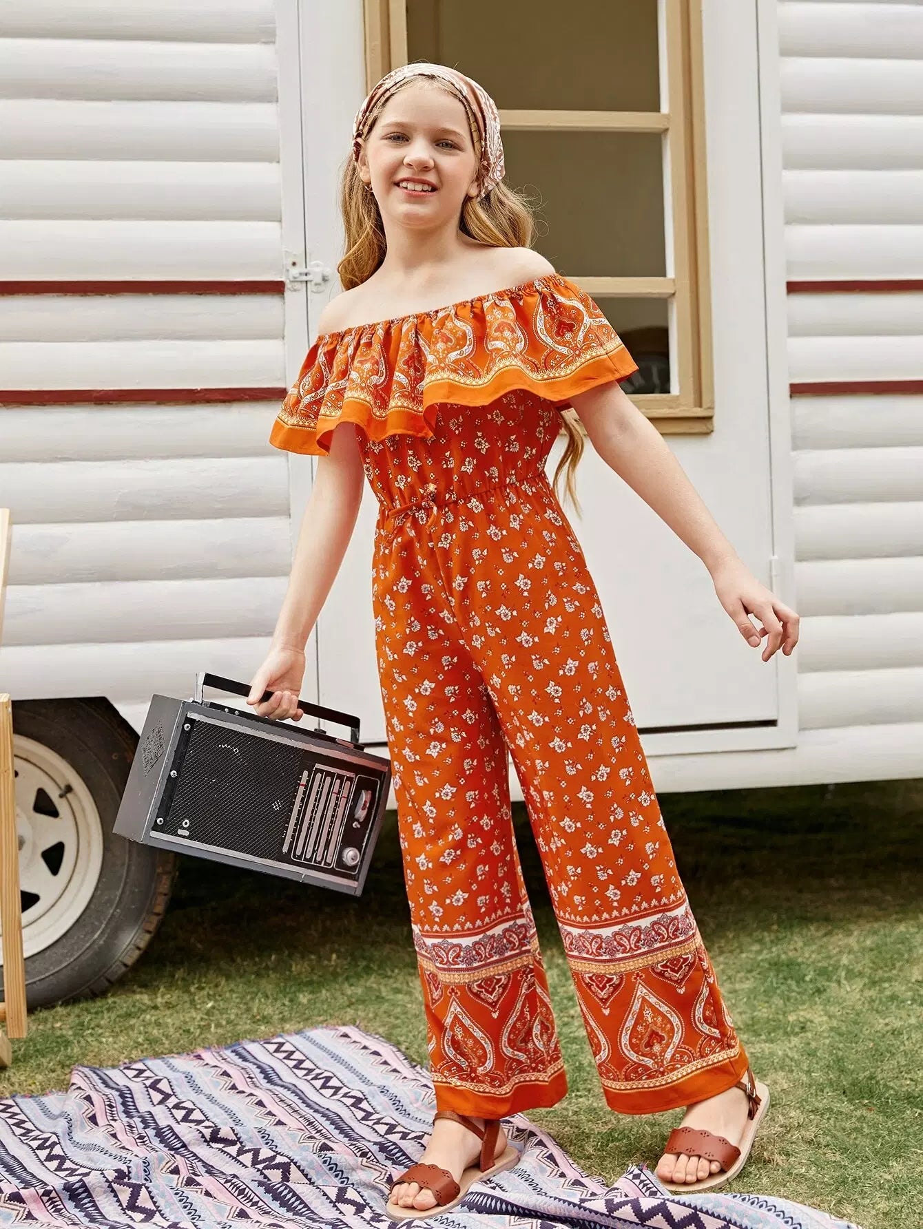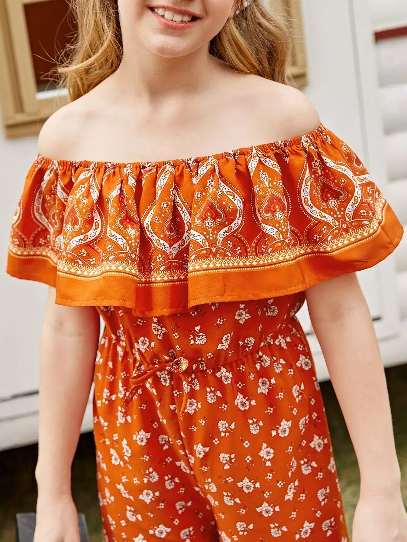 Girls Fold Off Shoulder Ditsy Floral Jumpsuit