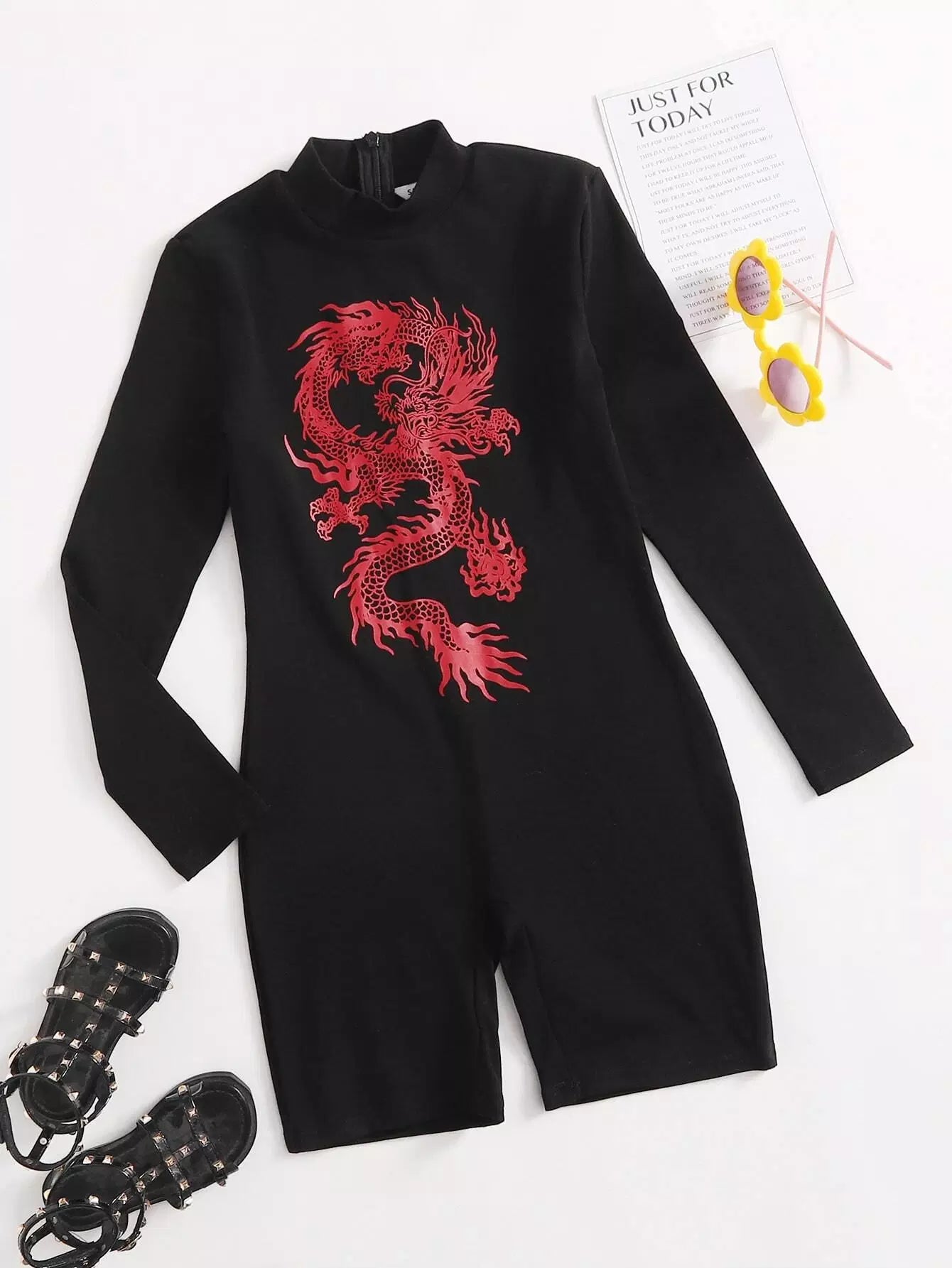 Girls Mock-Neck Chinese Dragon Print Romper