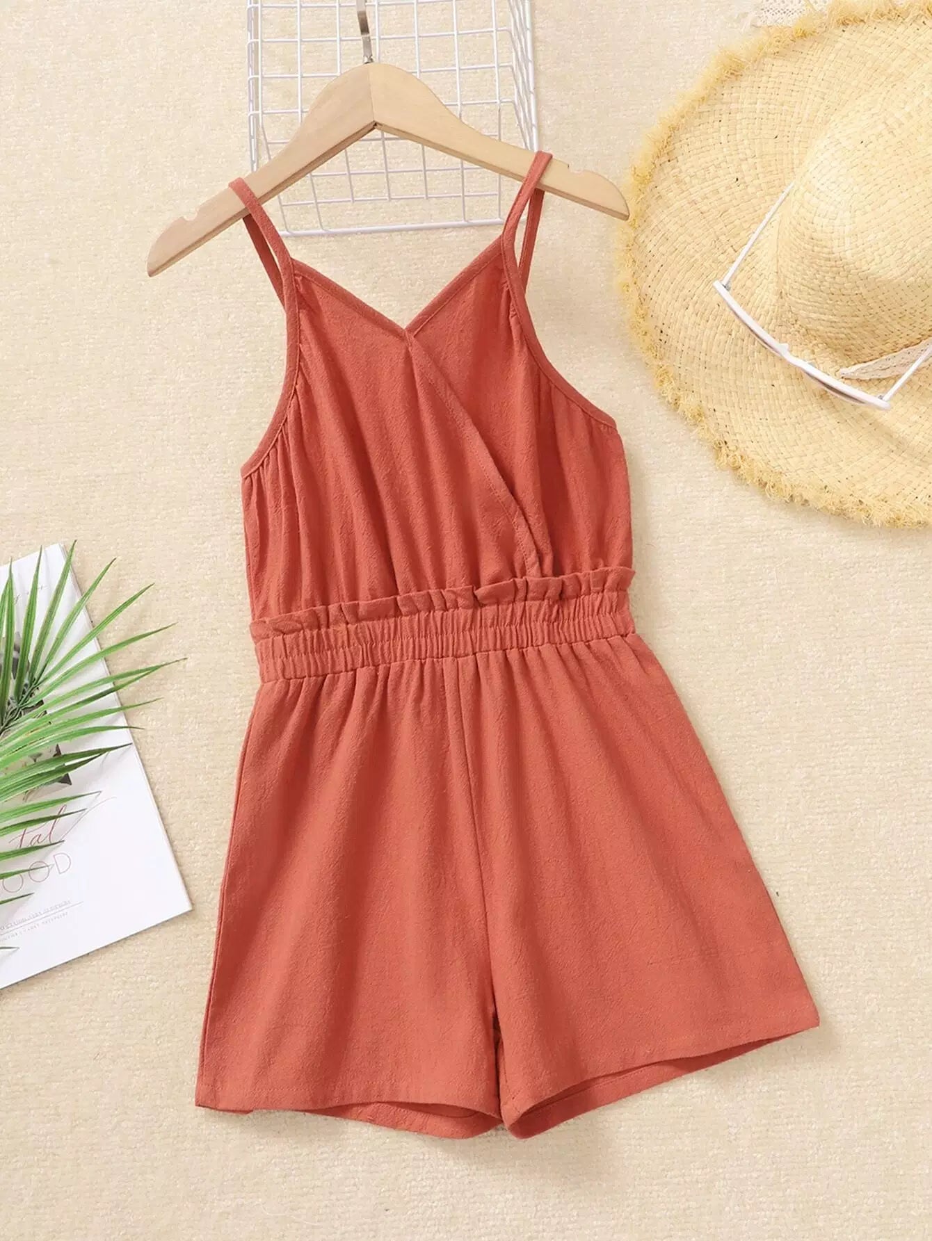Girls Overlap Collar Cami Romper