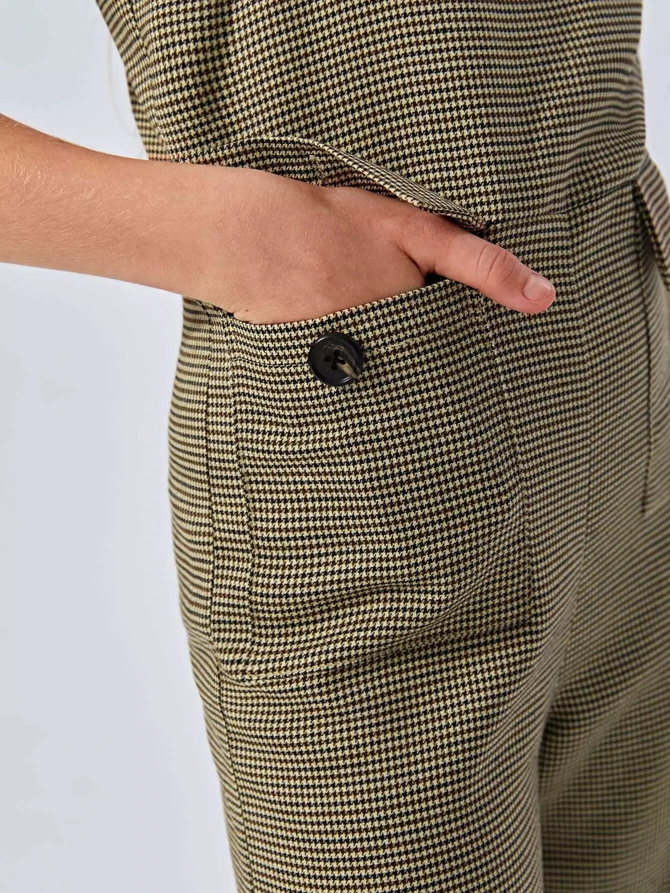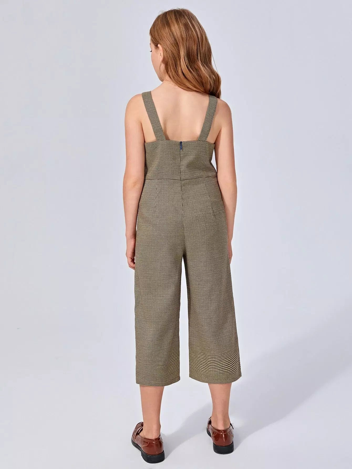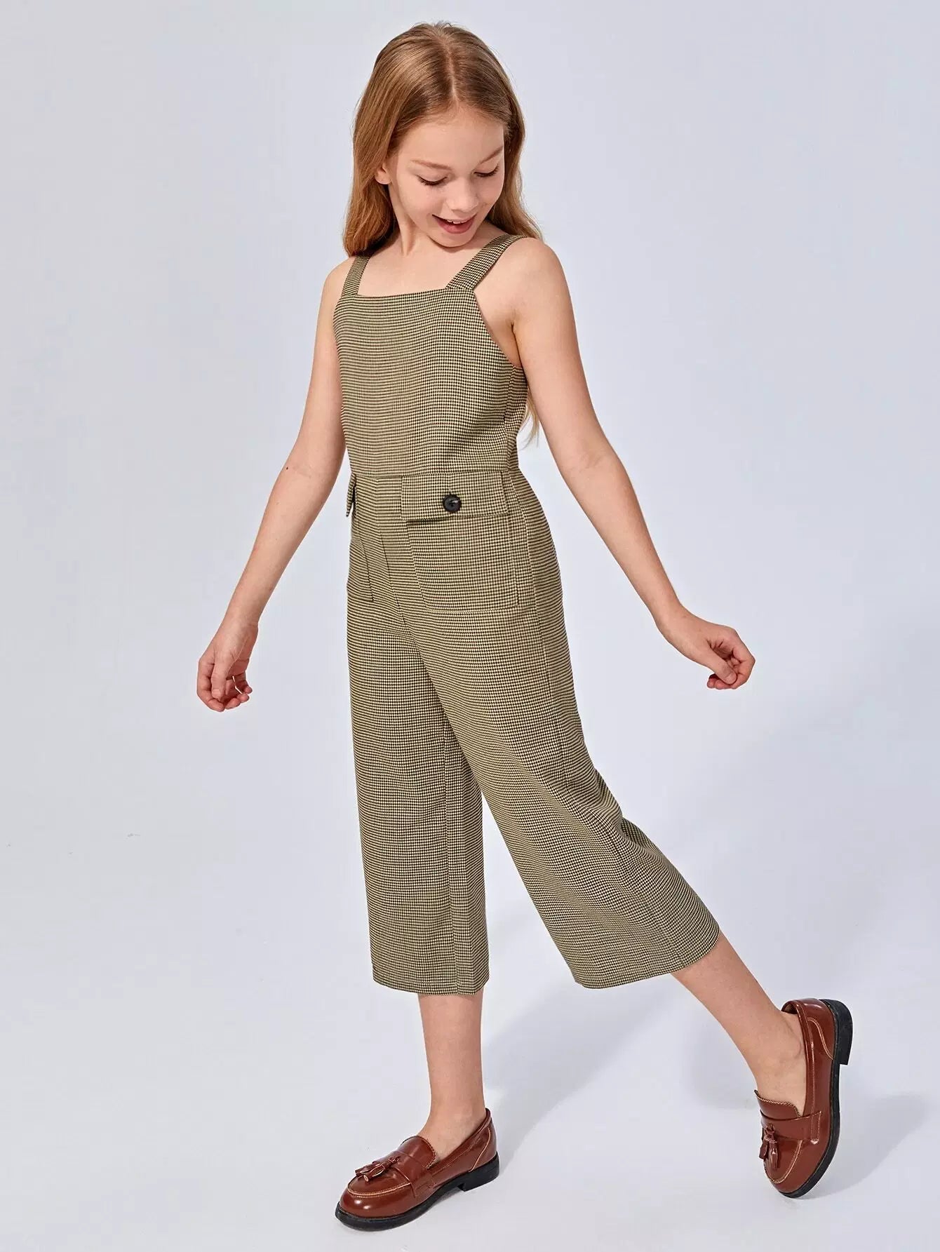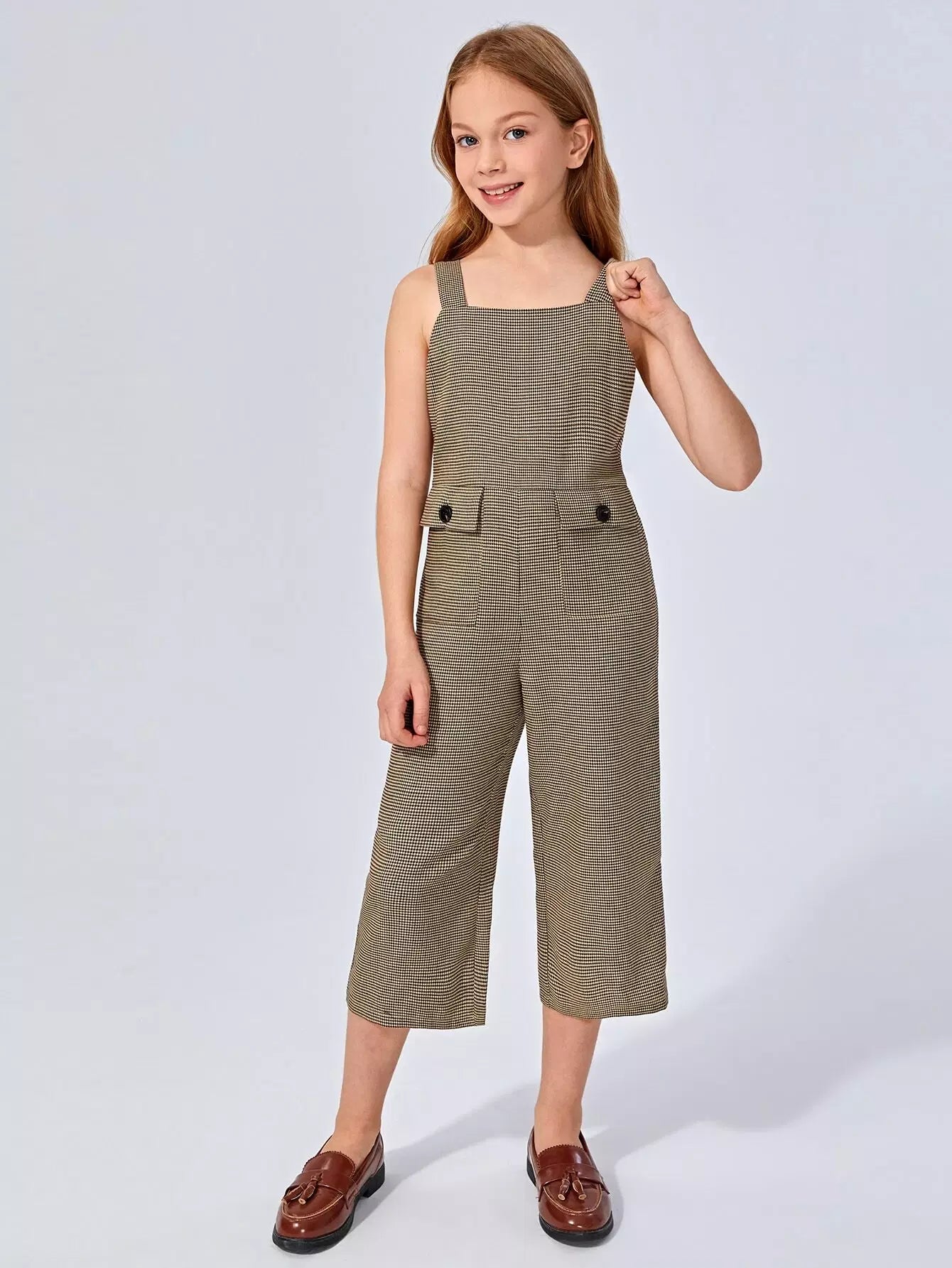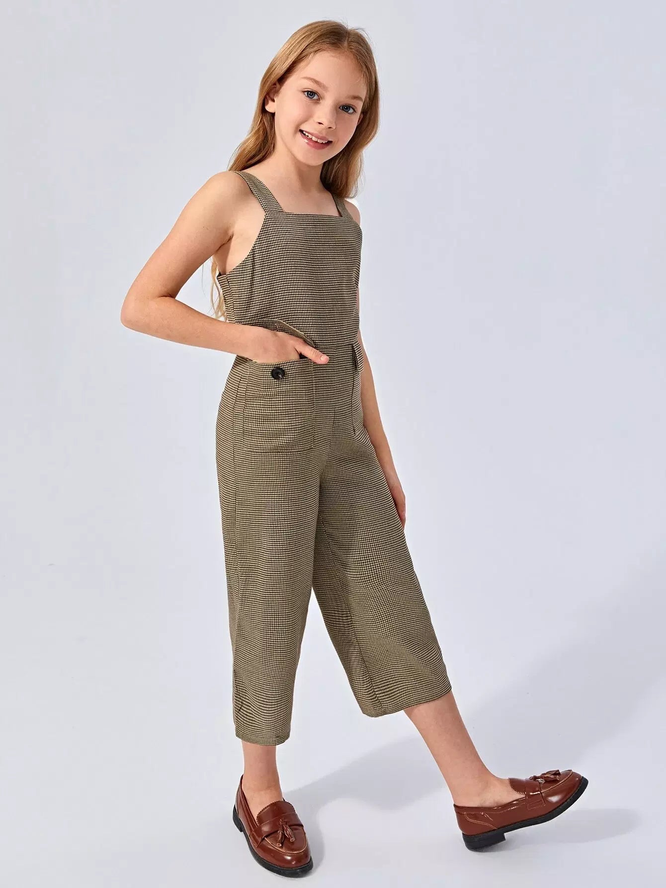 Girls Pocket Front Houndstooth Overall Jumpsuit