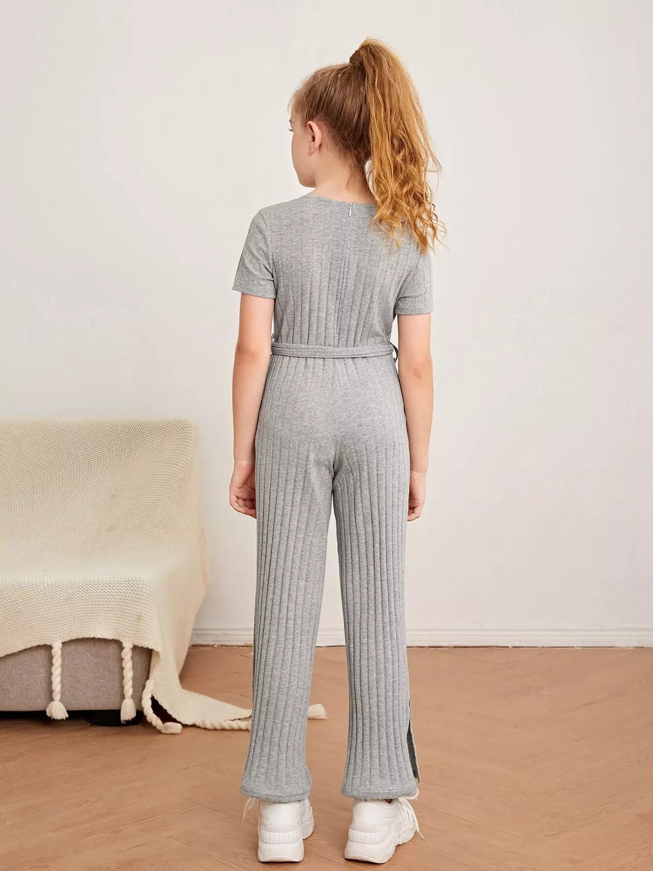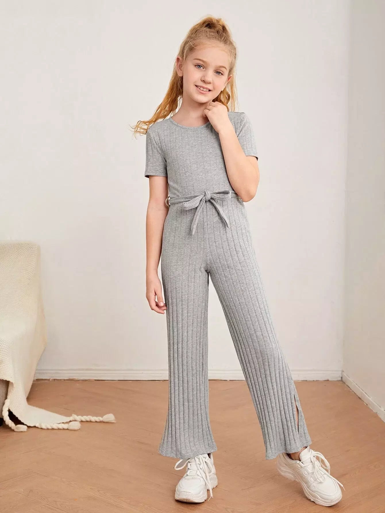 Girls Solid Rib-knit Split Hem Jumpsuit Without Belt