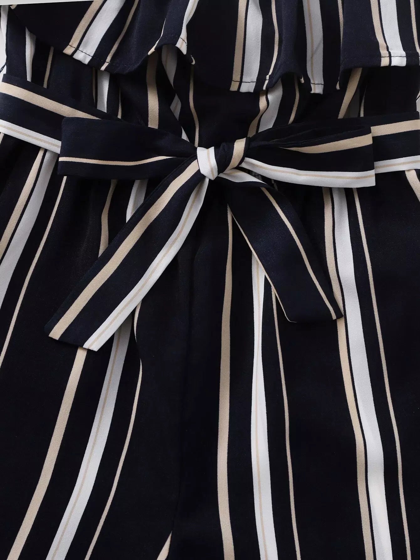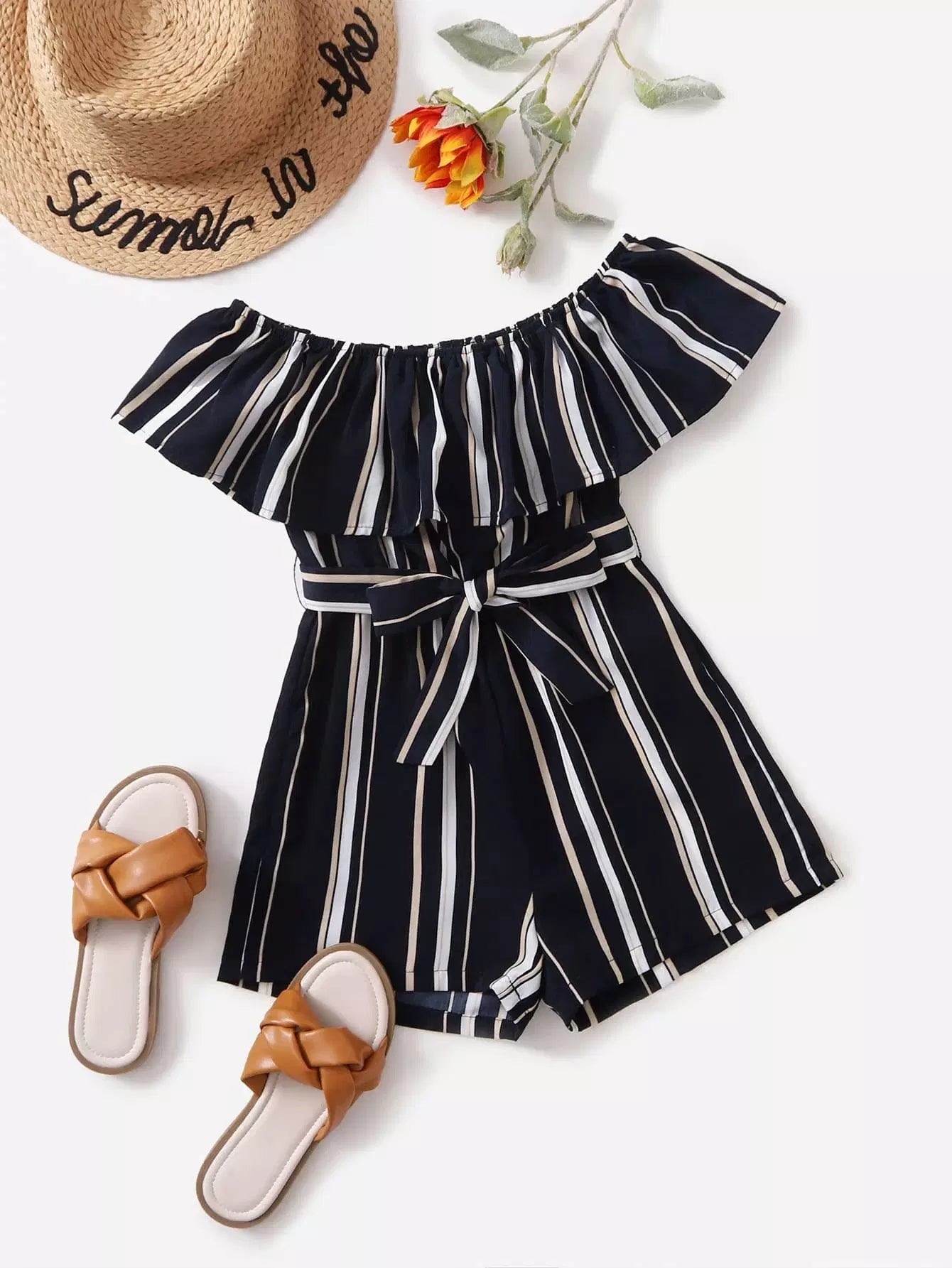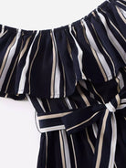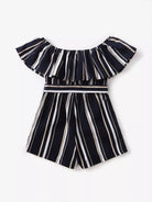 Girls Stripe Print Ruffle Trim Romper Without Belt
