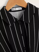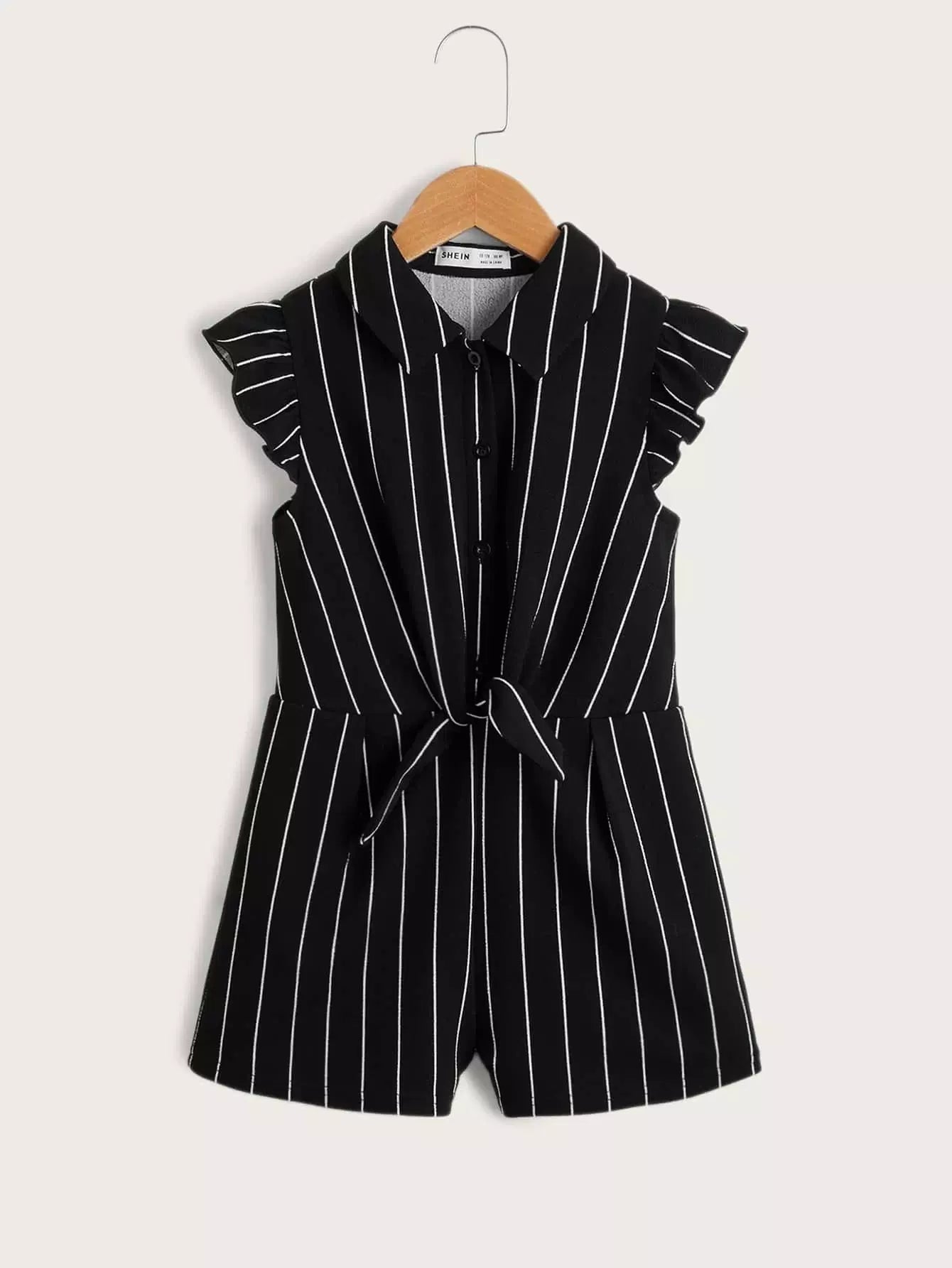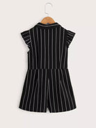 Girls Striped Half Button Ruffle Trim Tie Front Romper