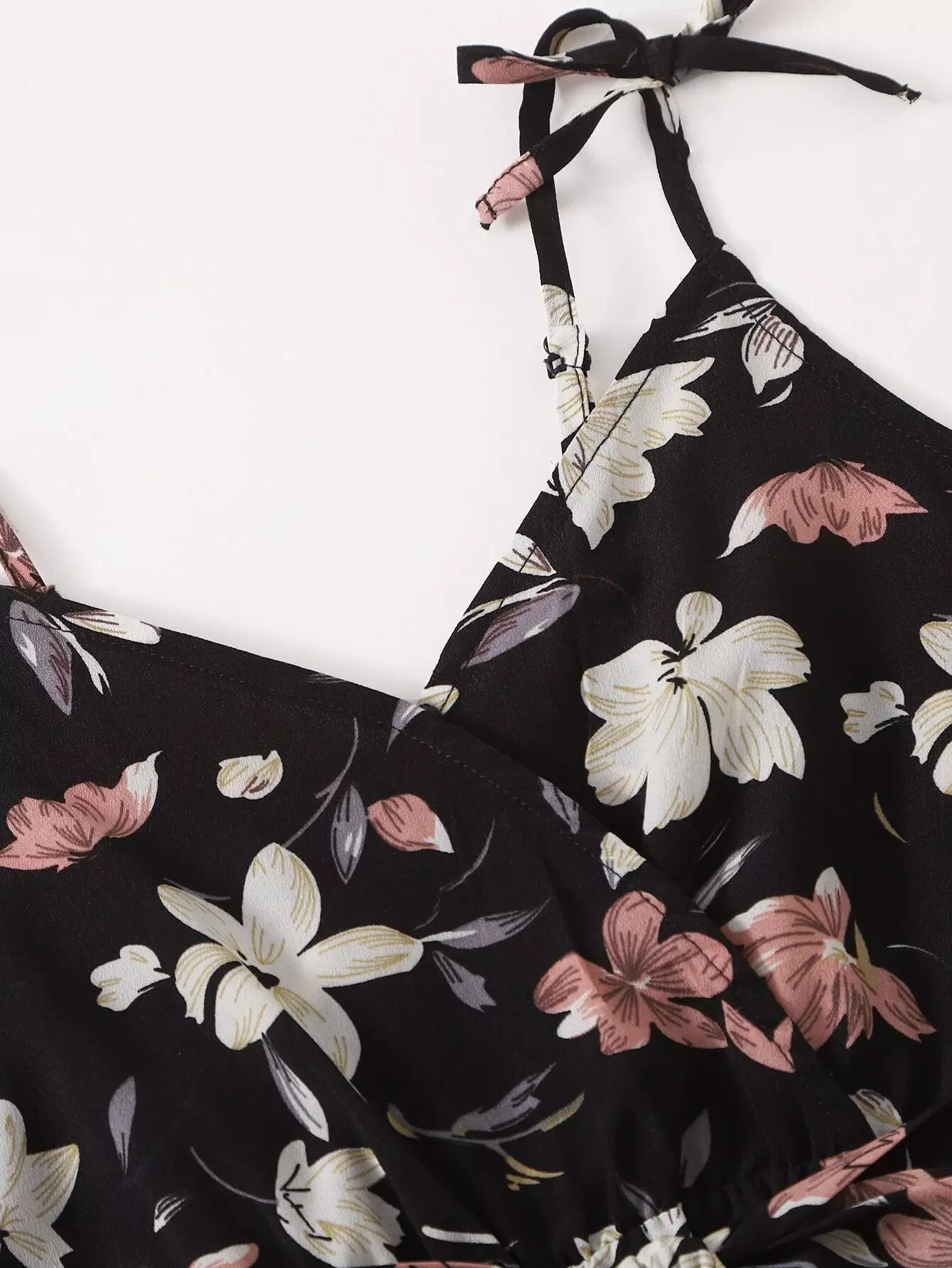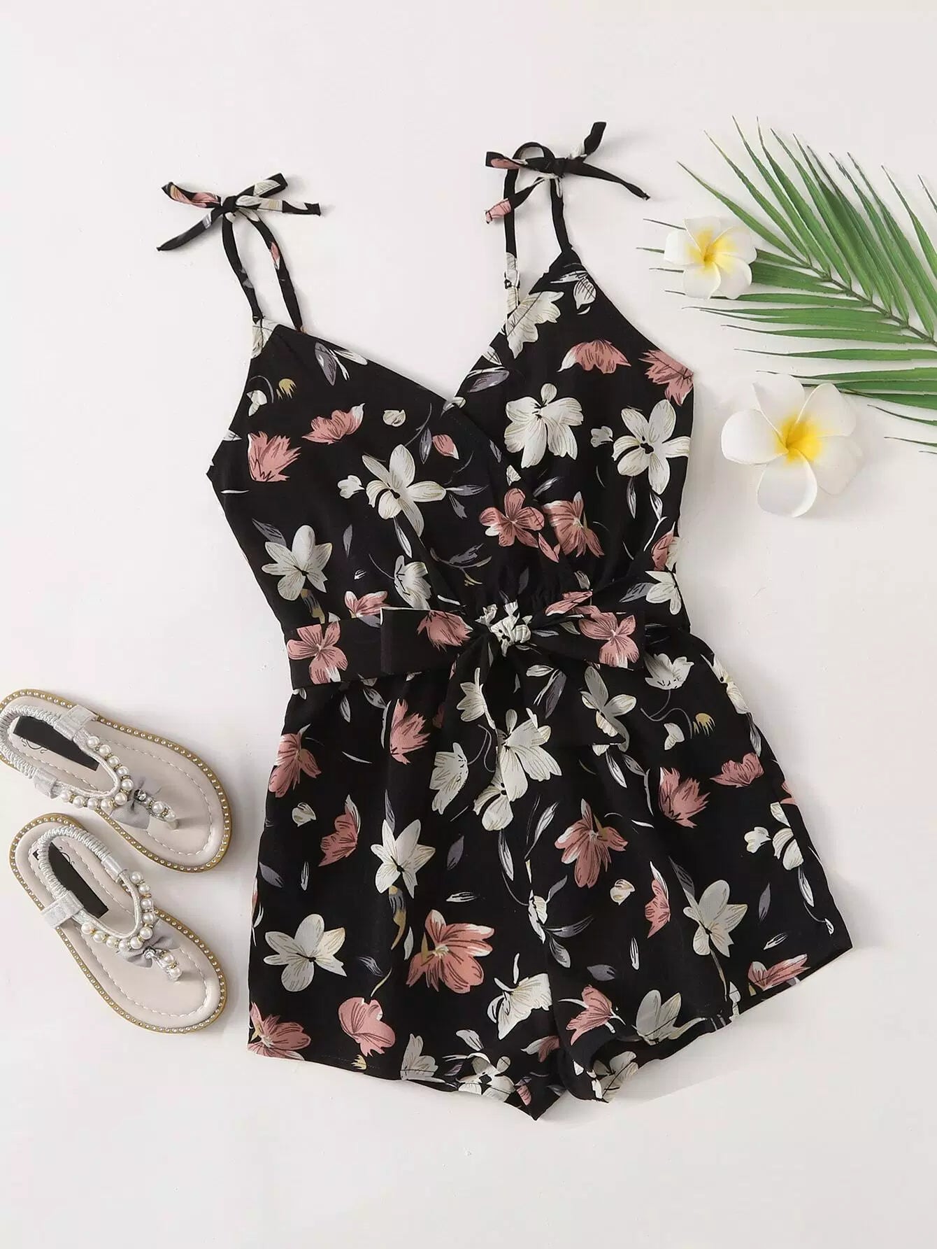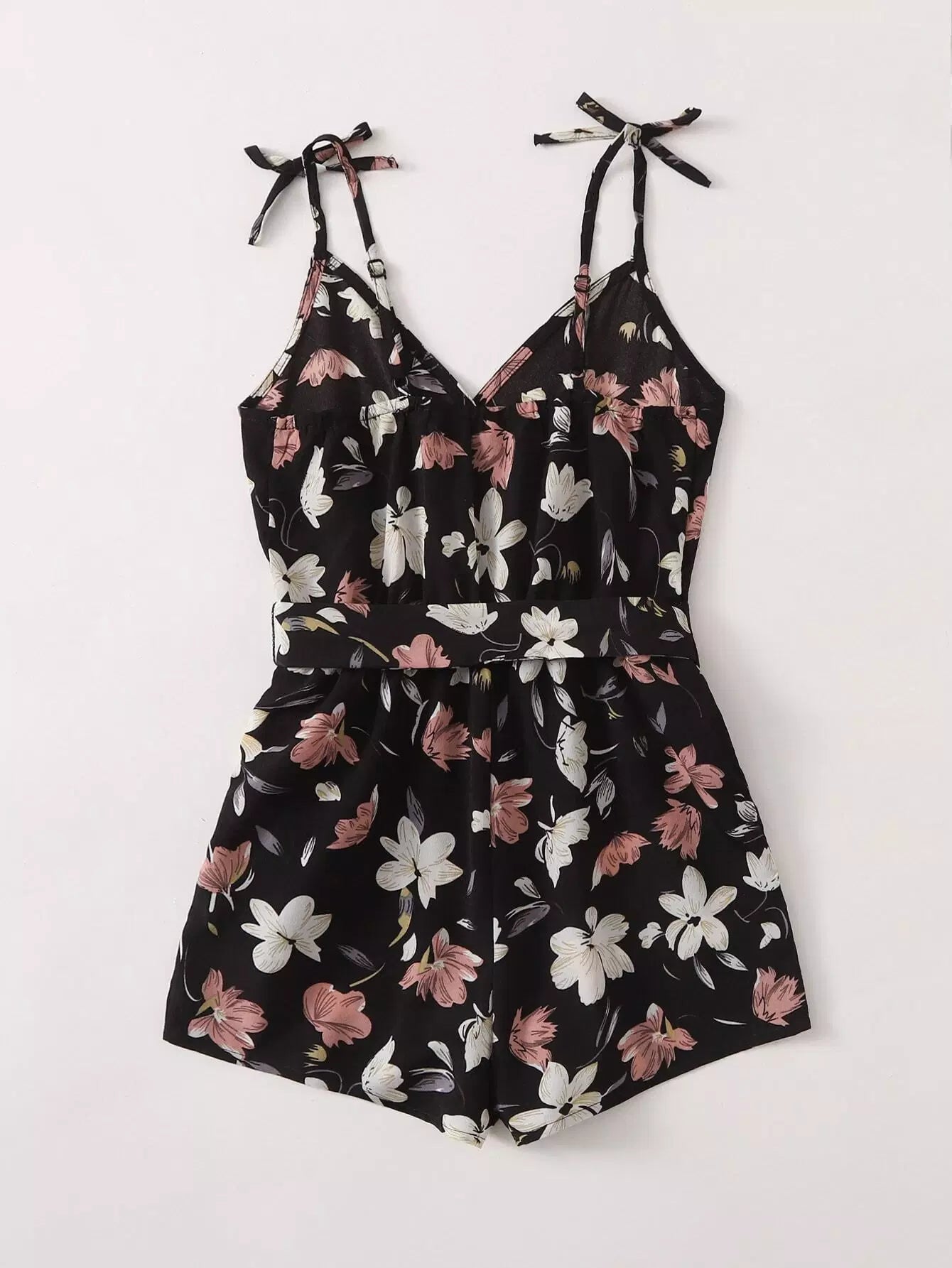 Girls Tied Shoulder Floral Cami Romper Without Belt