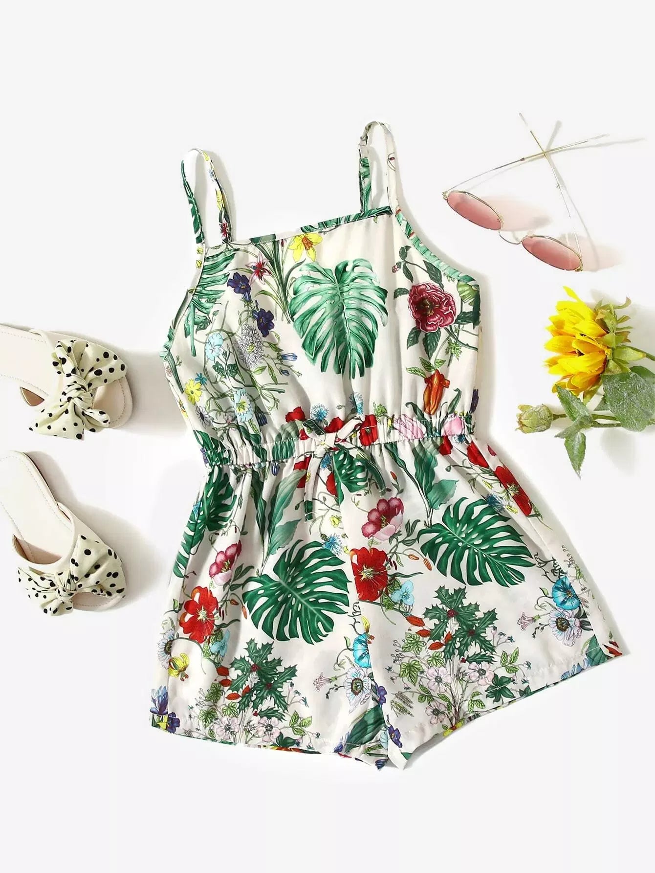 Girls Tropical & Floral Cami Romper