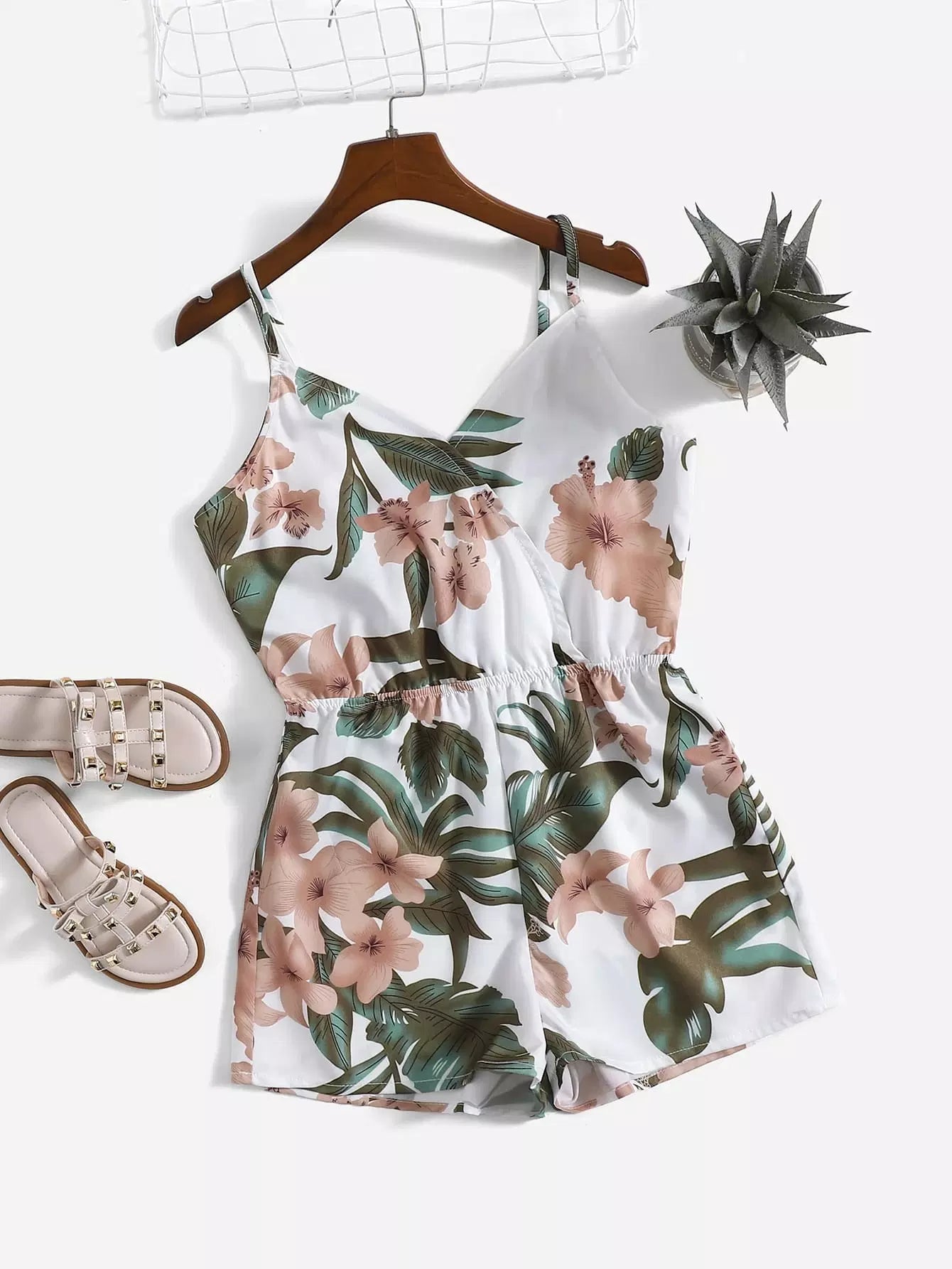 Girls Tropical Print Cami Romper