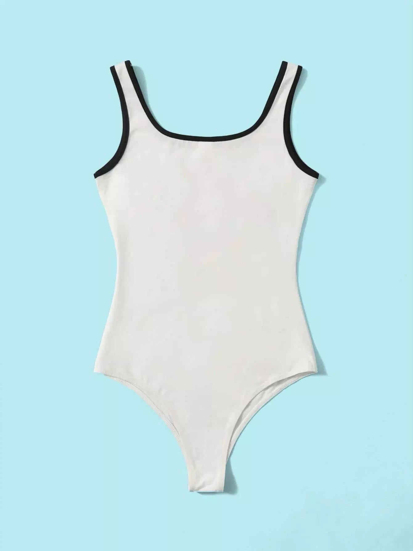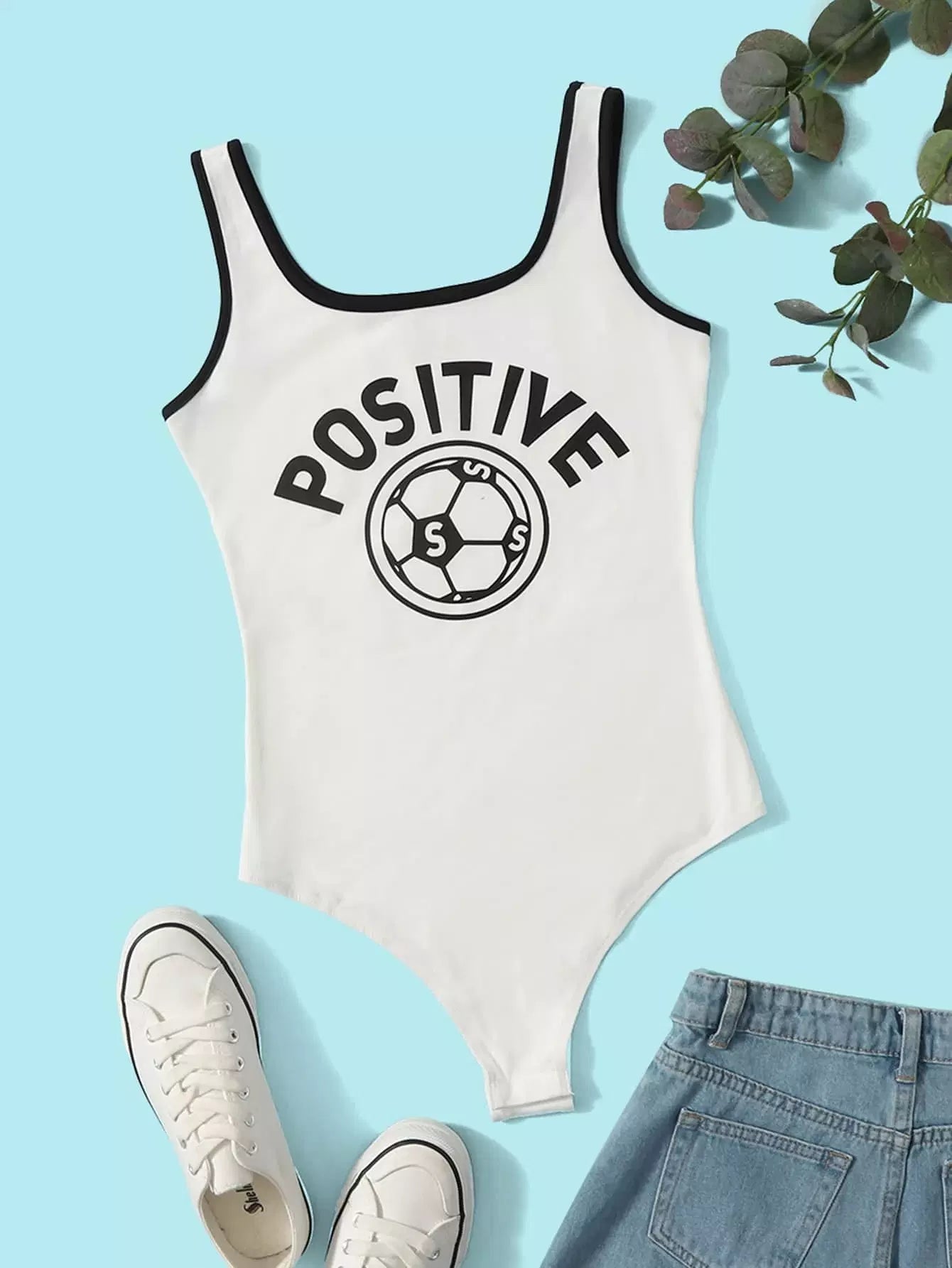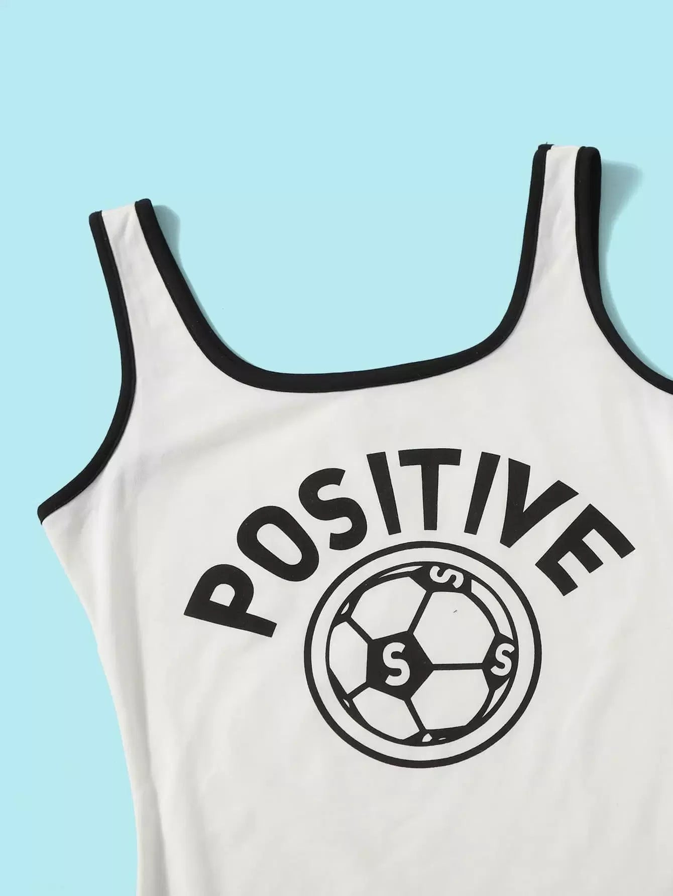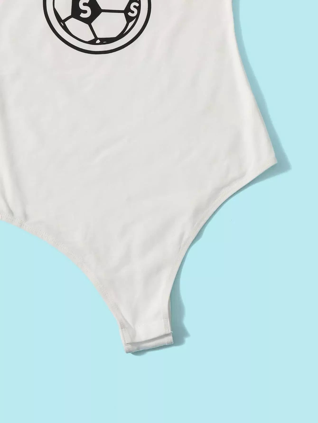 Teen Girls Letter & Soccer Print Contrast Binding Bodysuit