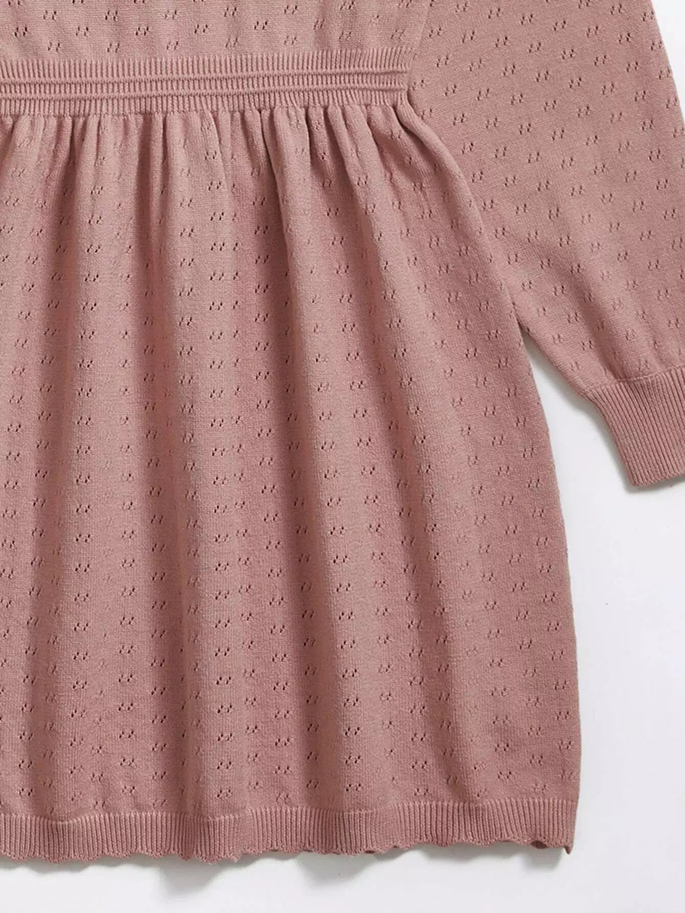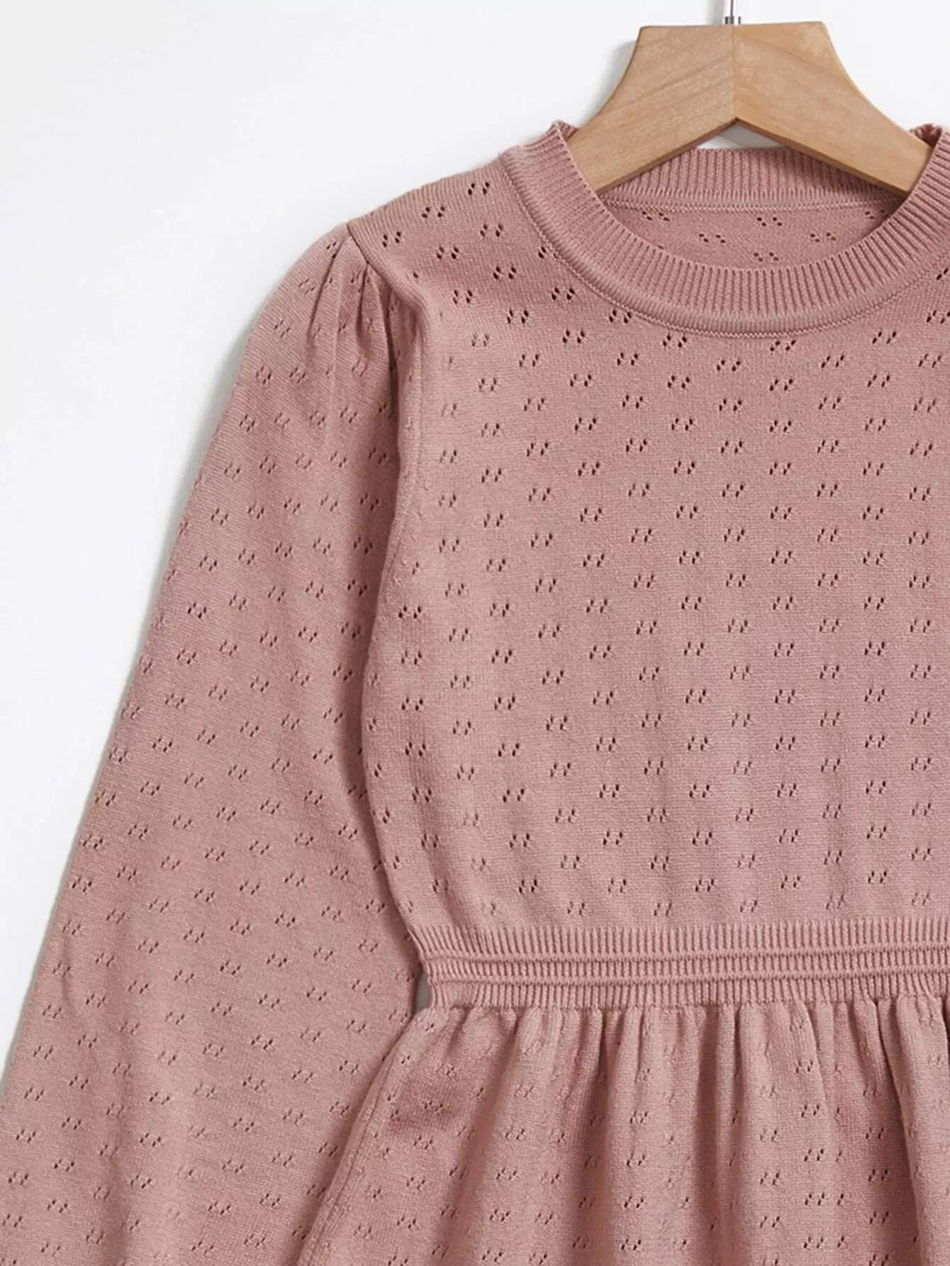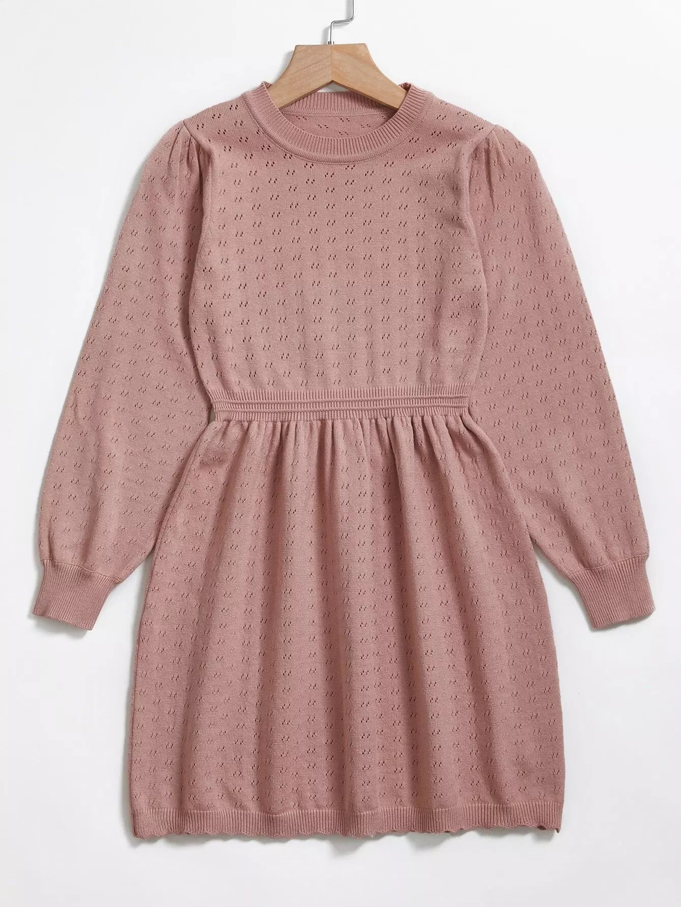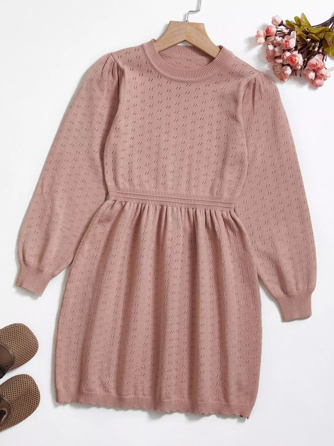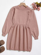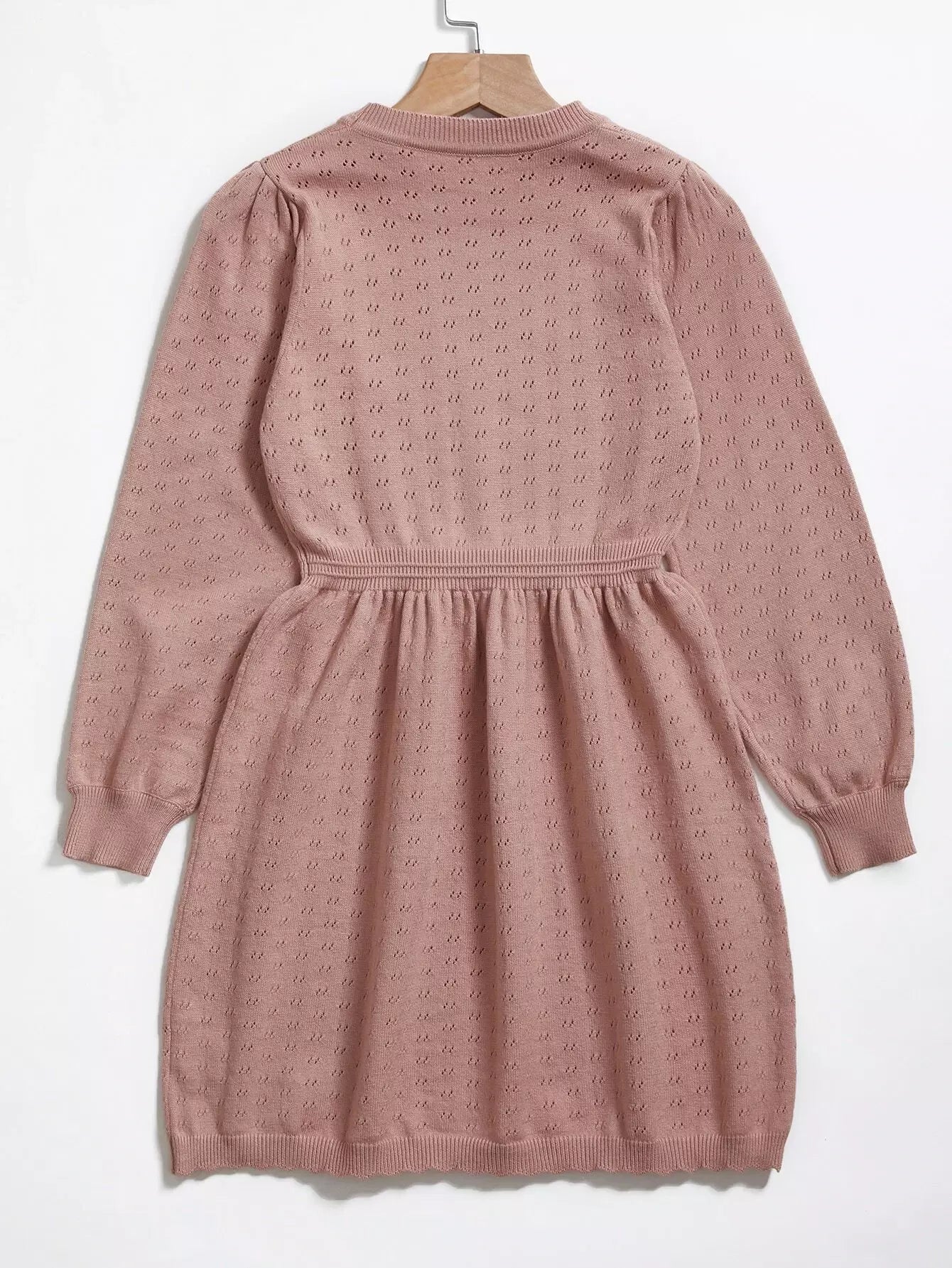 Girls Bishop Sleeve Pointelle Knit Sweater Dress
