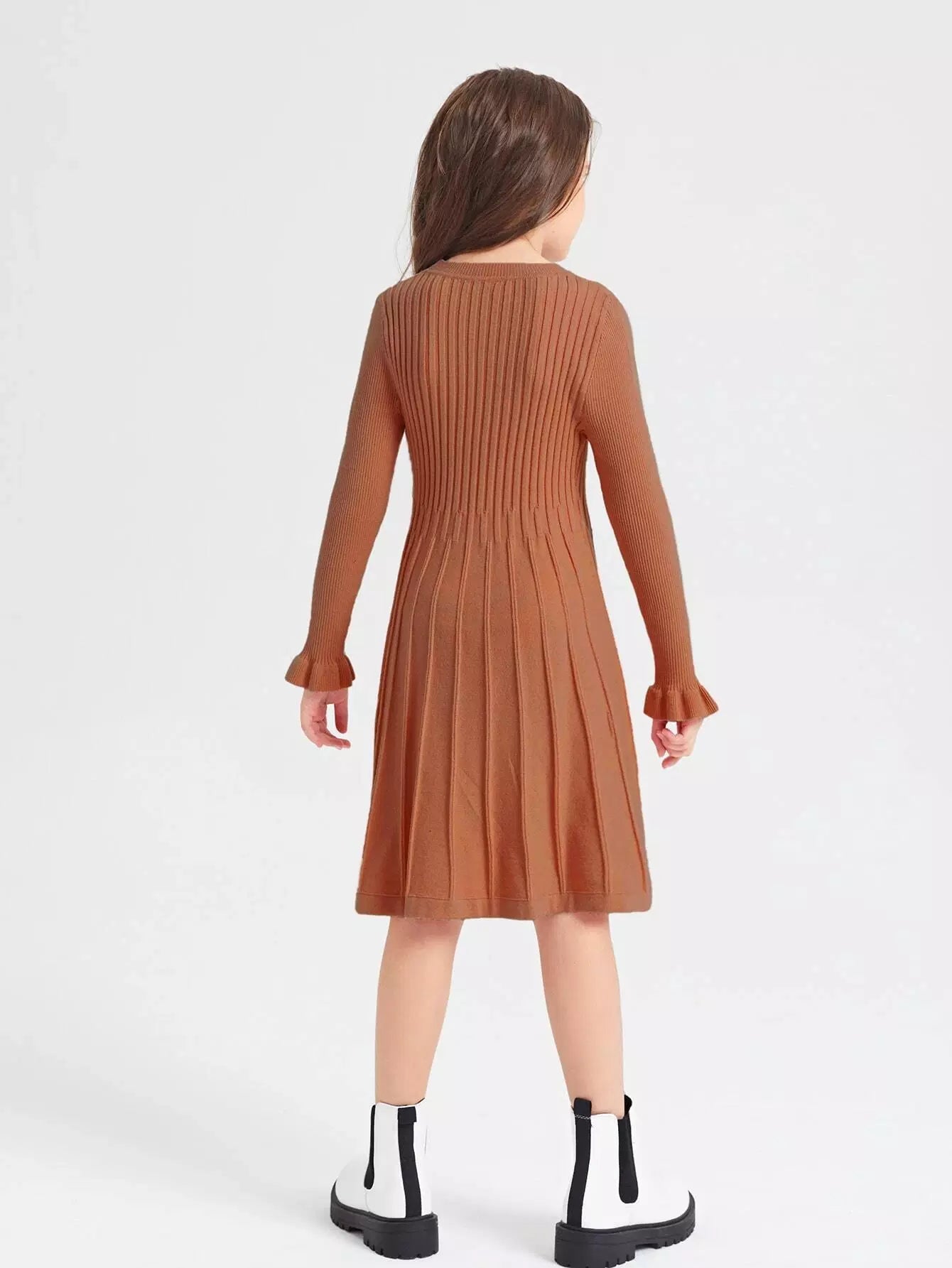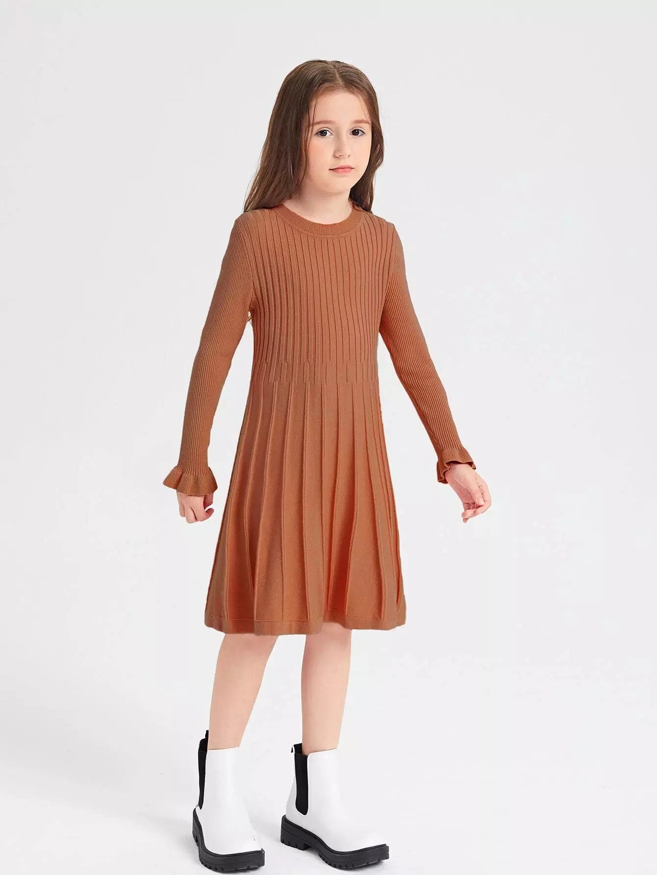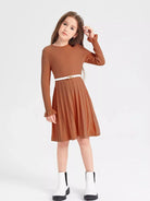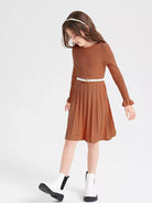 Girls Solid A-Line Pleated Hem Sweater Dress Without Belt