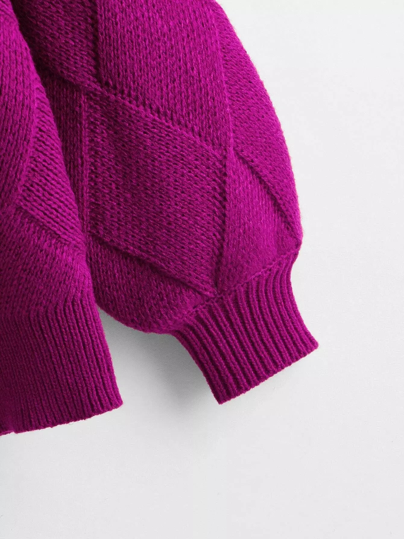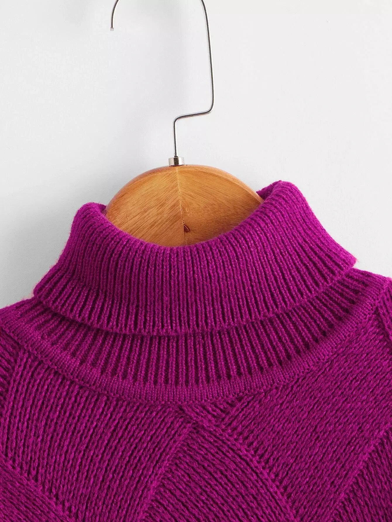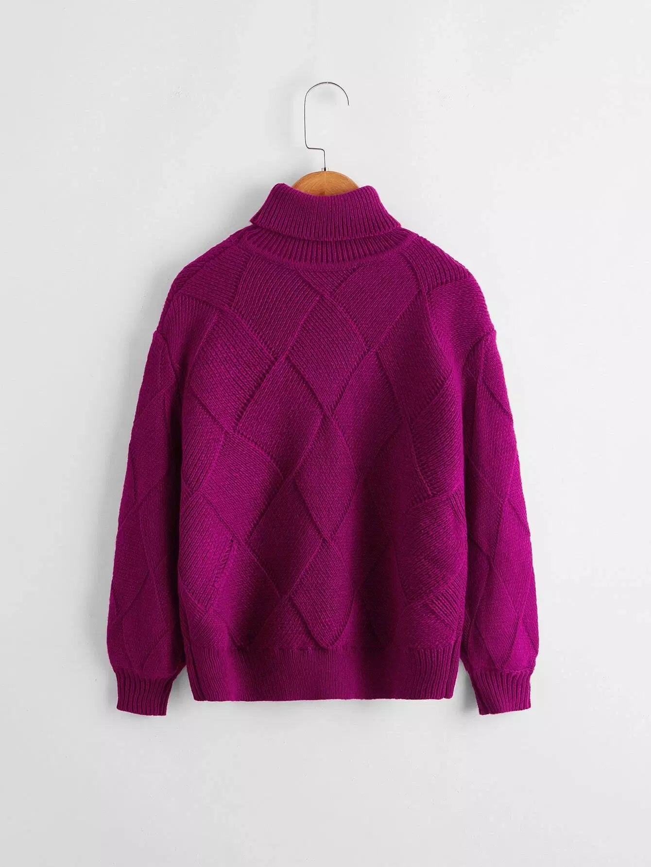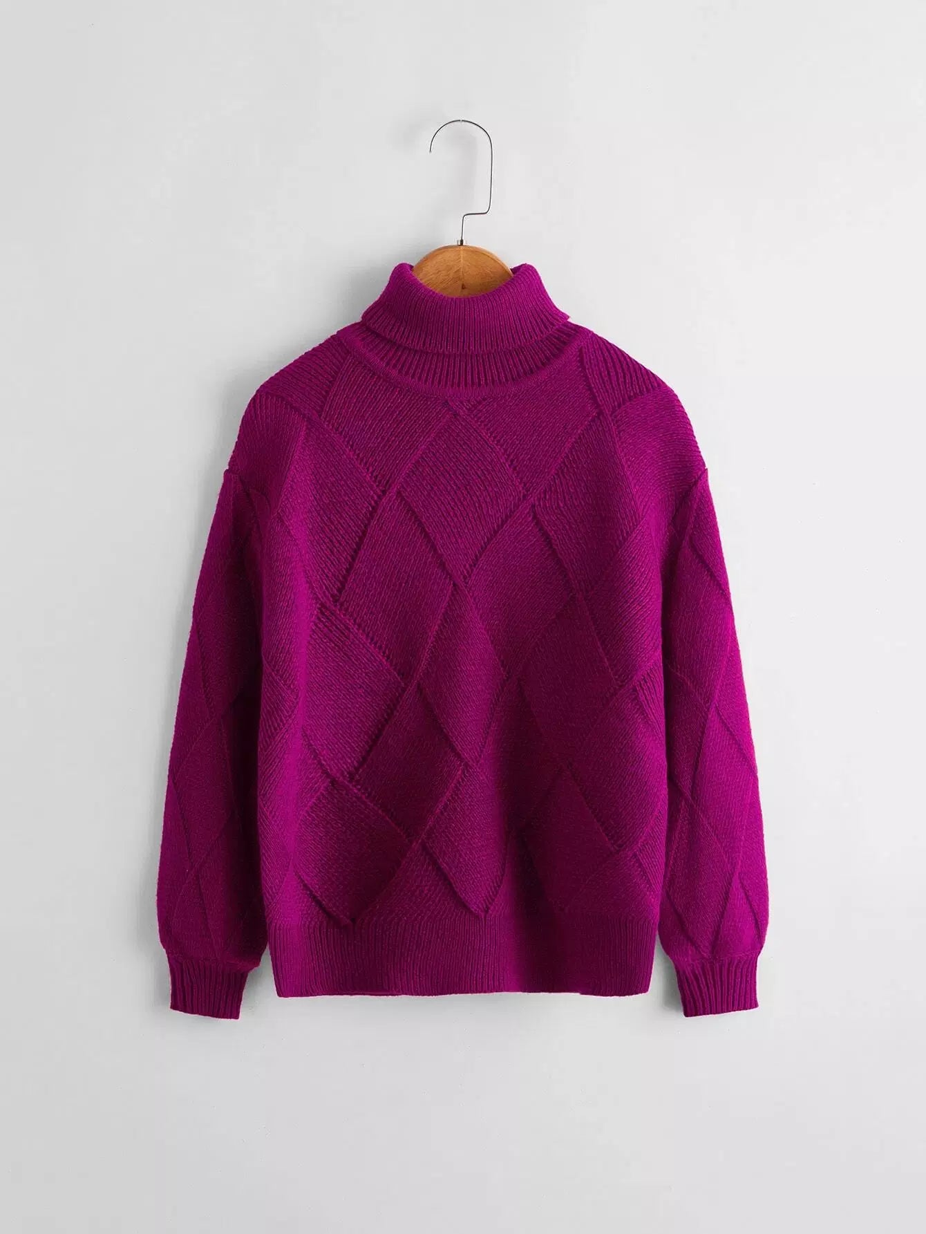 Girls Funnel Collar Drop Shoulder Textured Sweater