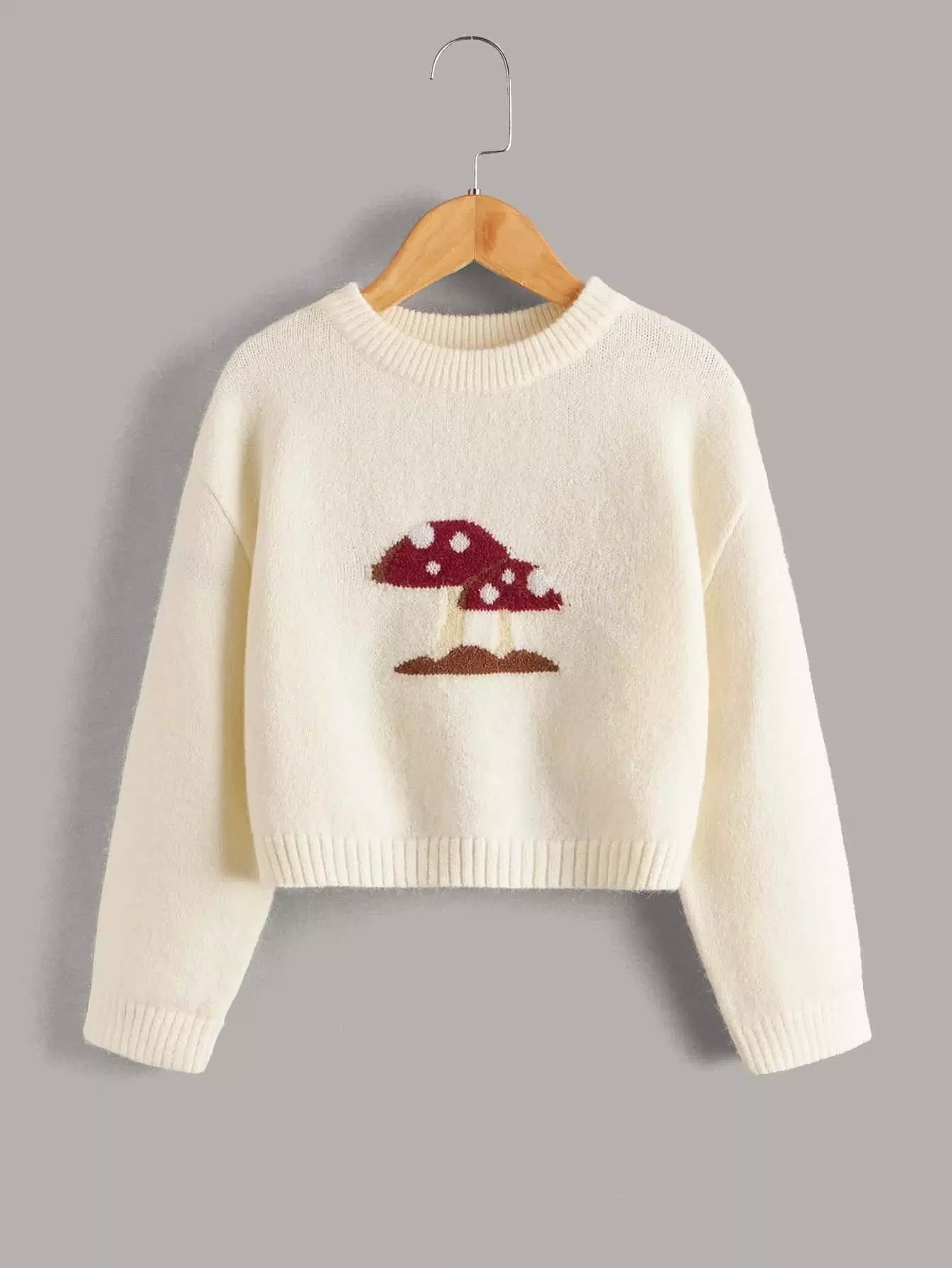 Girls Mushroom Pattern Drop Shoulder Sweater