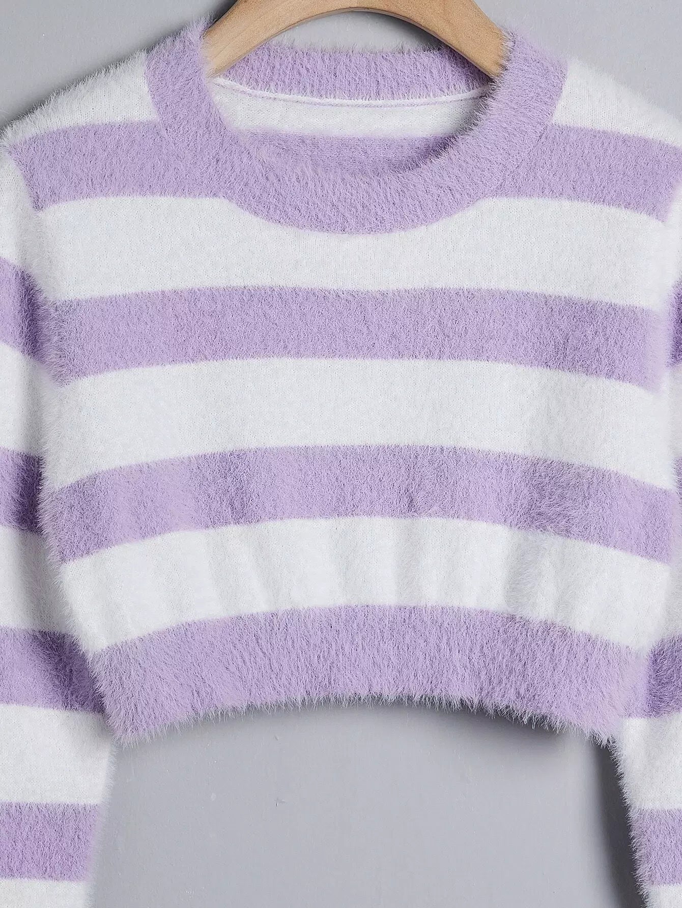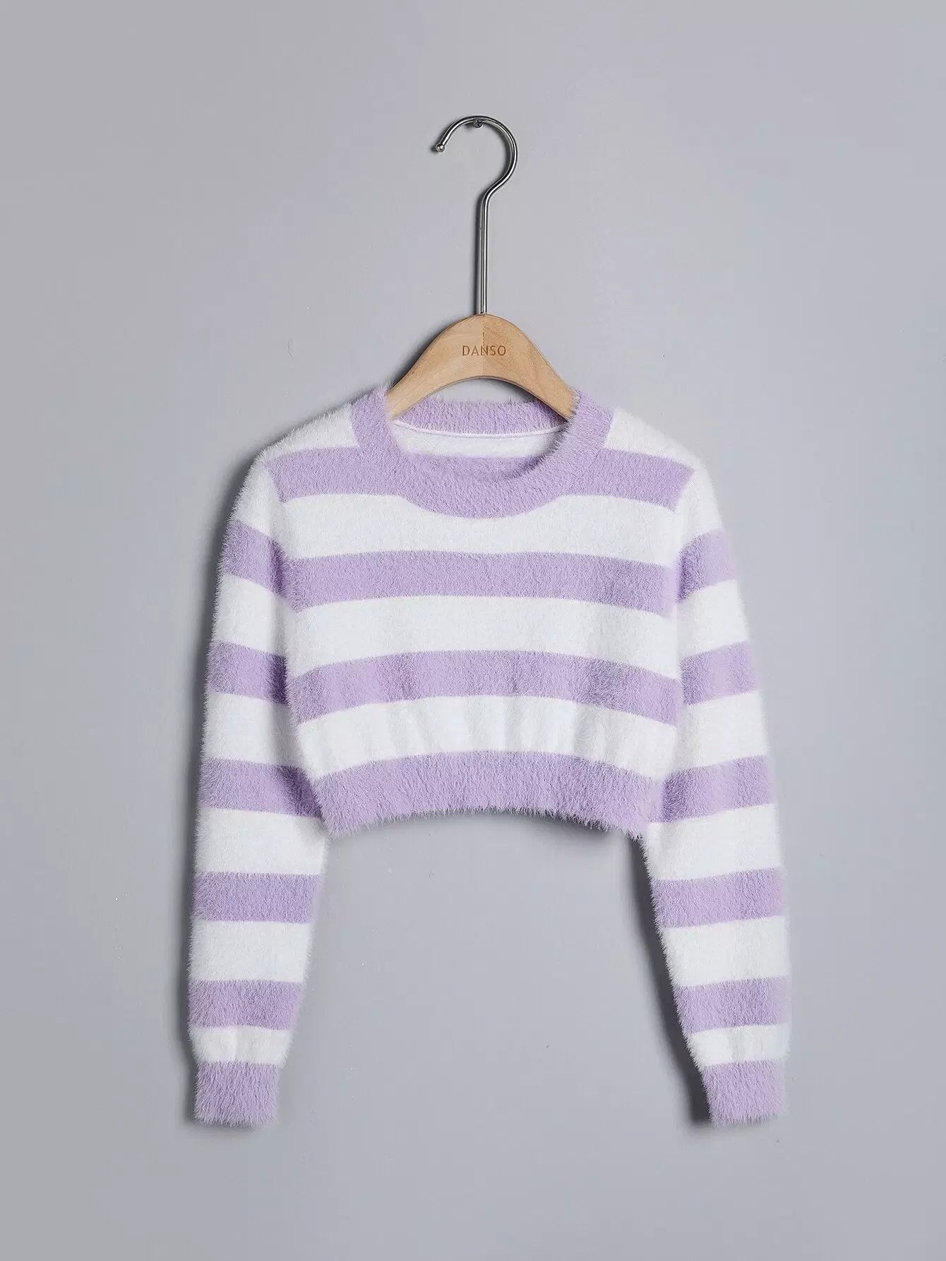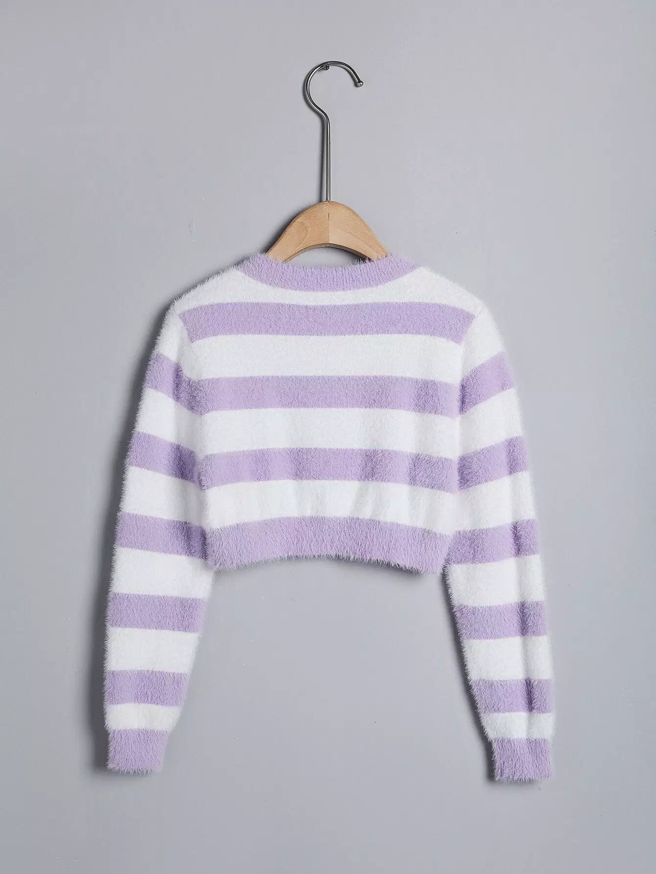 Girls Stripe Pattern Fuzzy Crop Sweater